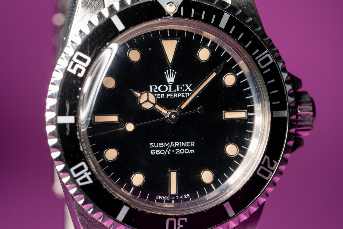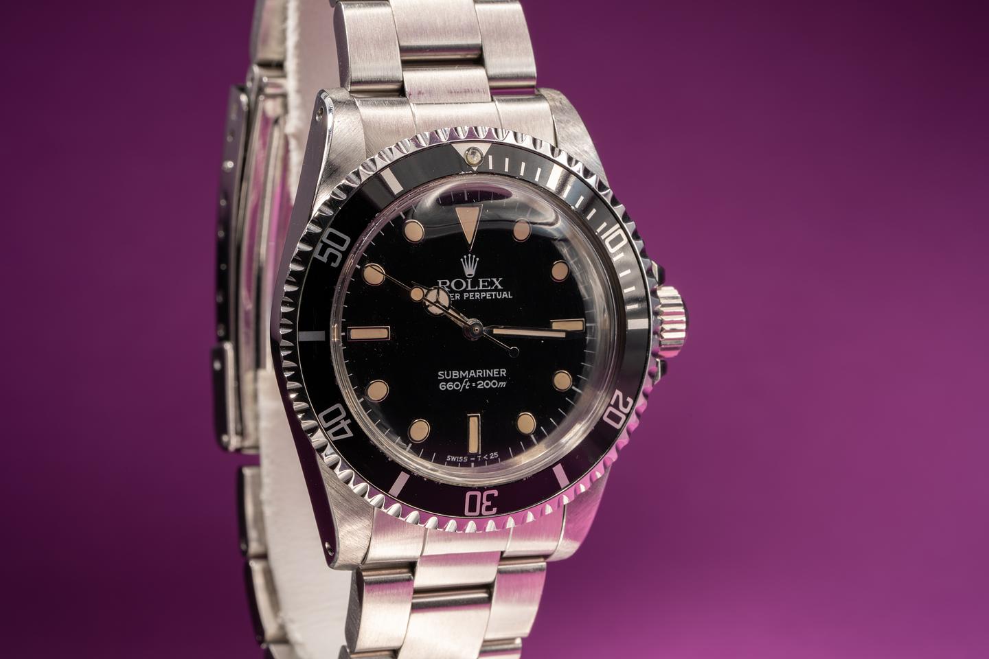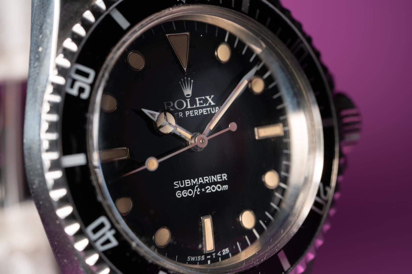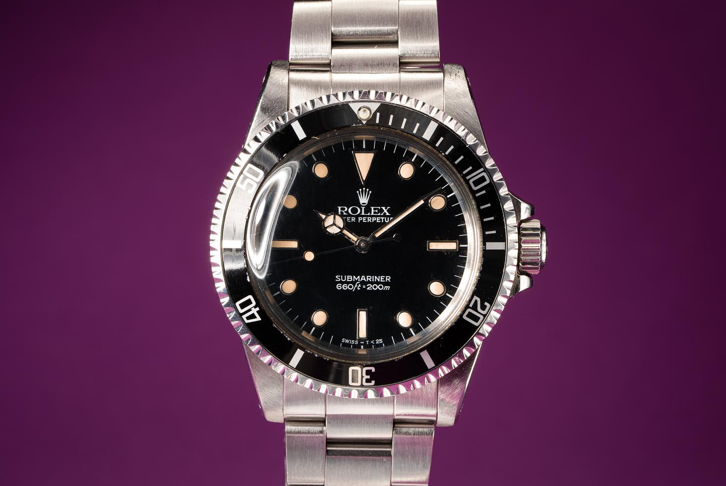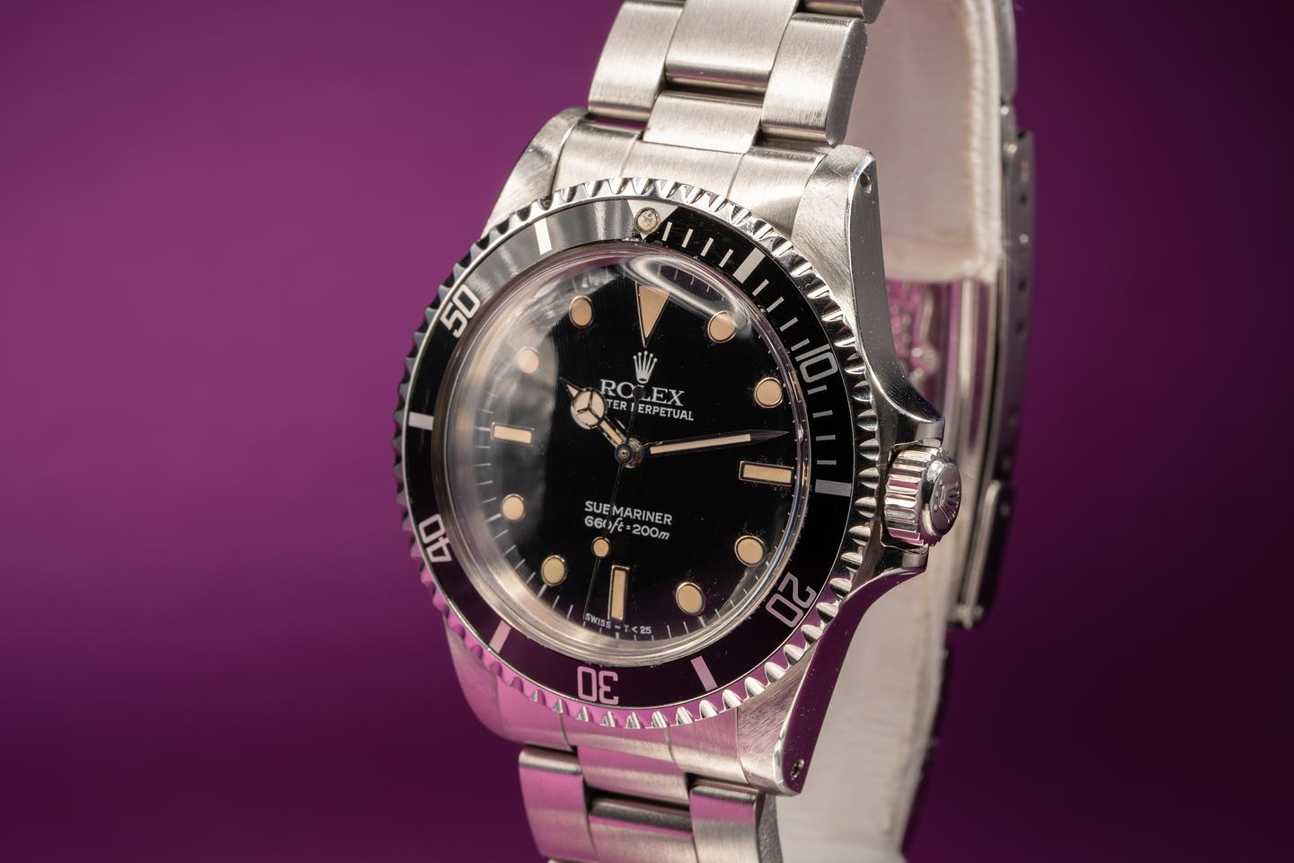 Case: Very good case that has been polished in the past. The black bezel insert is excellent condition and shows light wear.