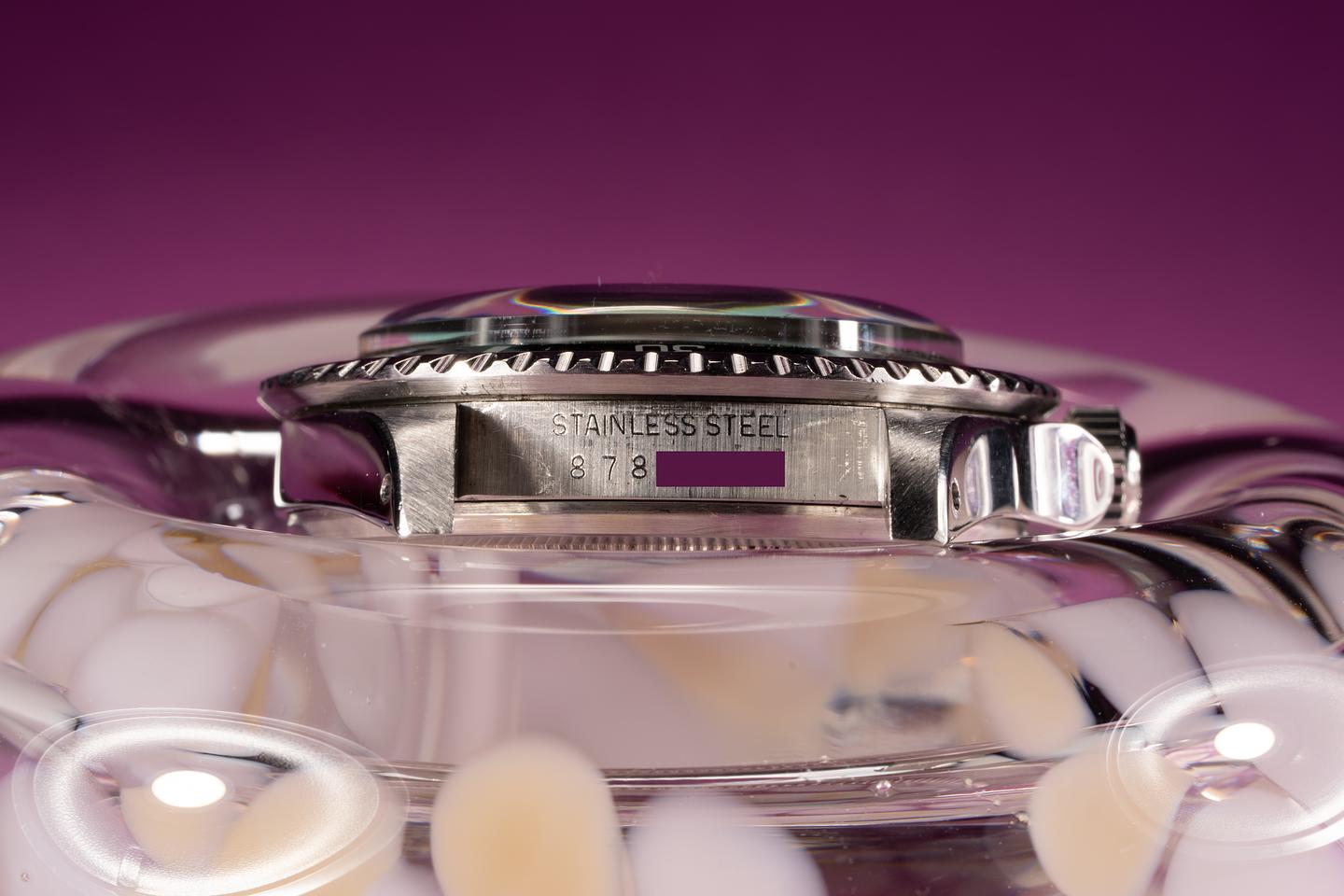 Bracelet: The 12 link oyster bracelet shows very light stretch for its age. The clasp is stamped with a 1986 date code.