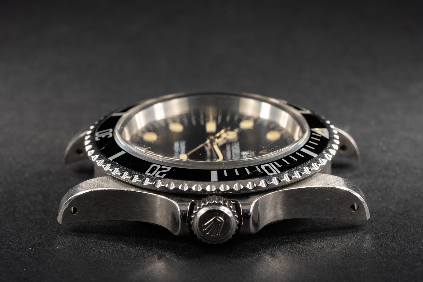 Case: The thick and even case has been polished in the past and shows sharp and prominent bevels. The case shows light wear from use. The black bezel insert is excellent and showing light wear from use.