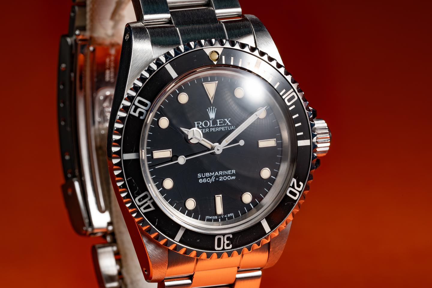 Case: The previously polished case is excellent showing sharp prominent bevels and only light wear from use. The black bezel insert is also in excellent condition showing only light wear from use.