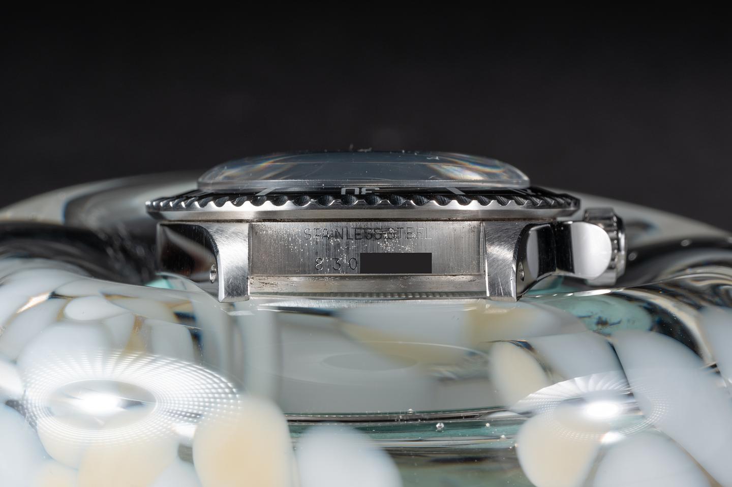 Case: The recently polished case is excellent showing sharp prominent bevels and only very light wear. The black bezel insert is also in excellent condition showing only very light wear from use.