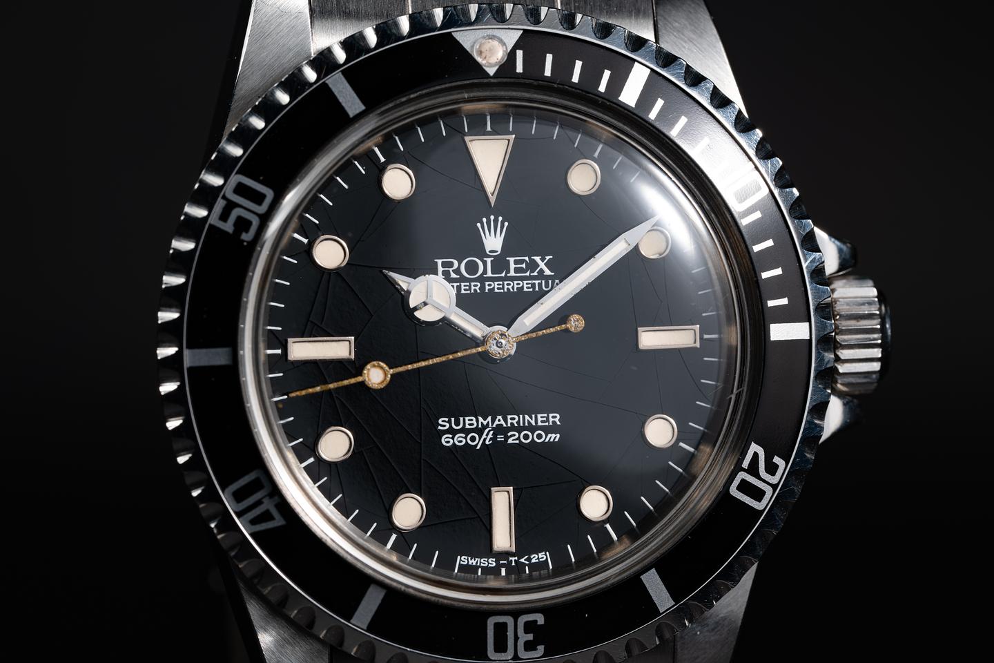 Dial: The glossy black dial has an extensive and even pattern of spider cracking across its surface. The lume has aged to a warm creamy hue and the hands match perfectly.