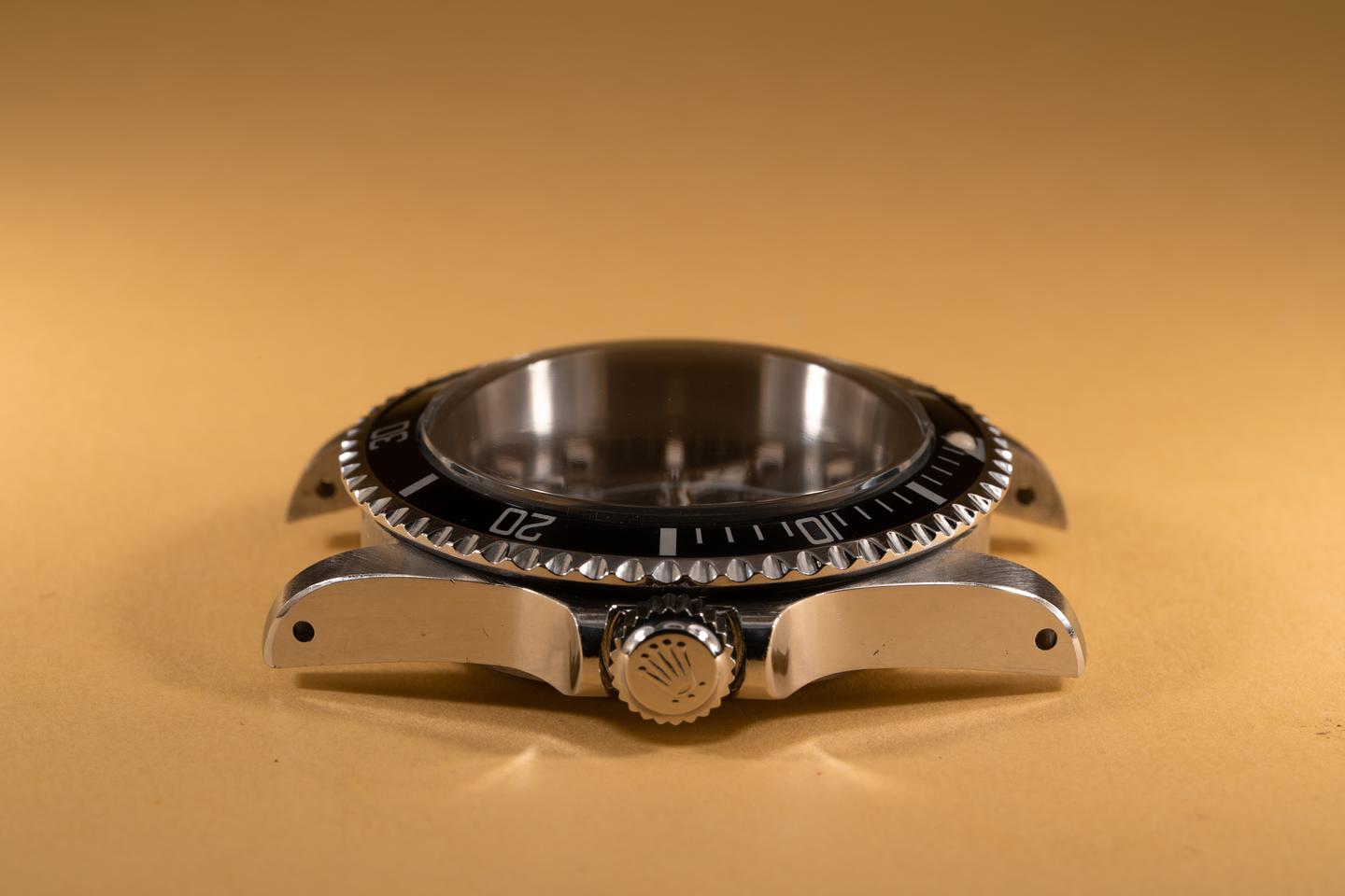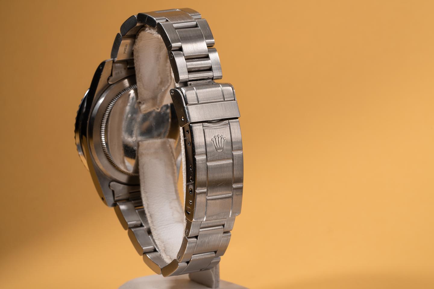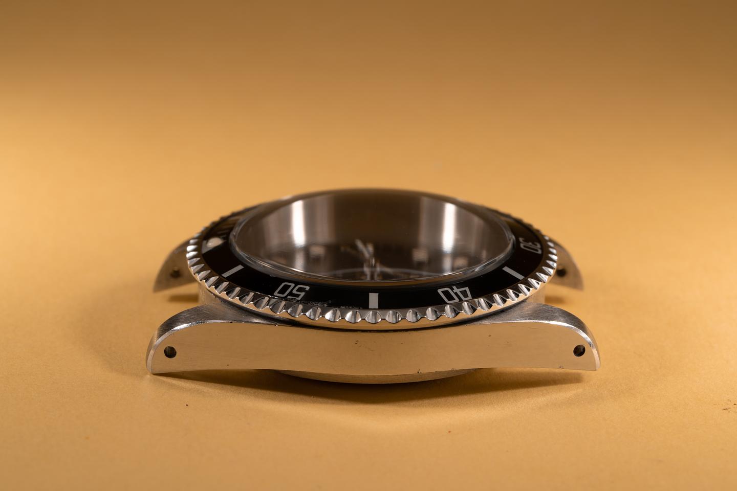 Case: The thick and even case has been polished in the past showing sharp prominent bevels and only light wear from use. The black bezel insert is also in excellent condition showing some light wear from use.