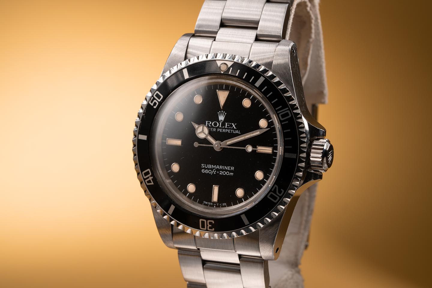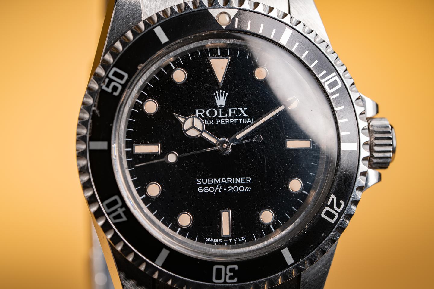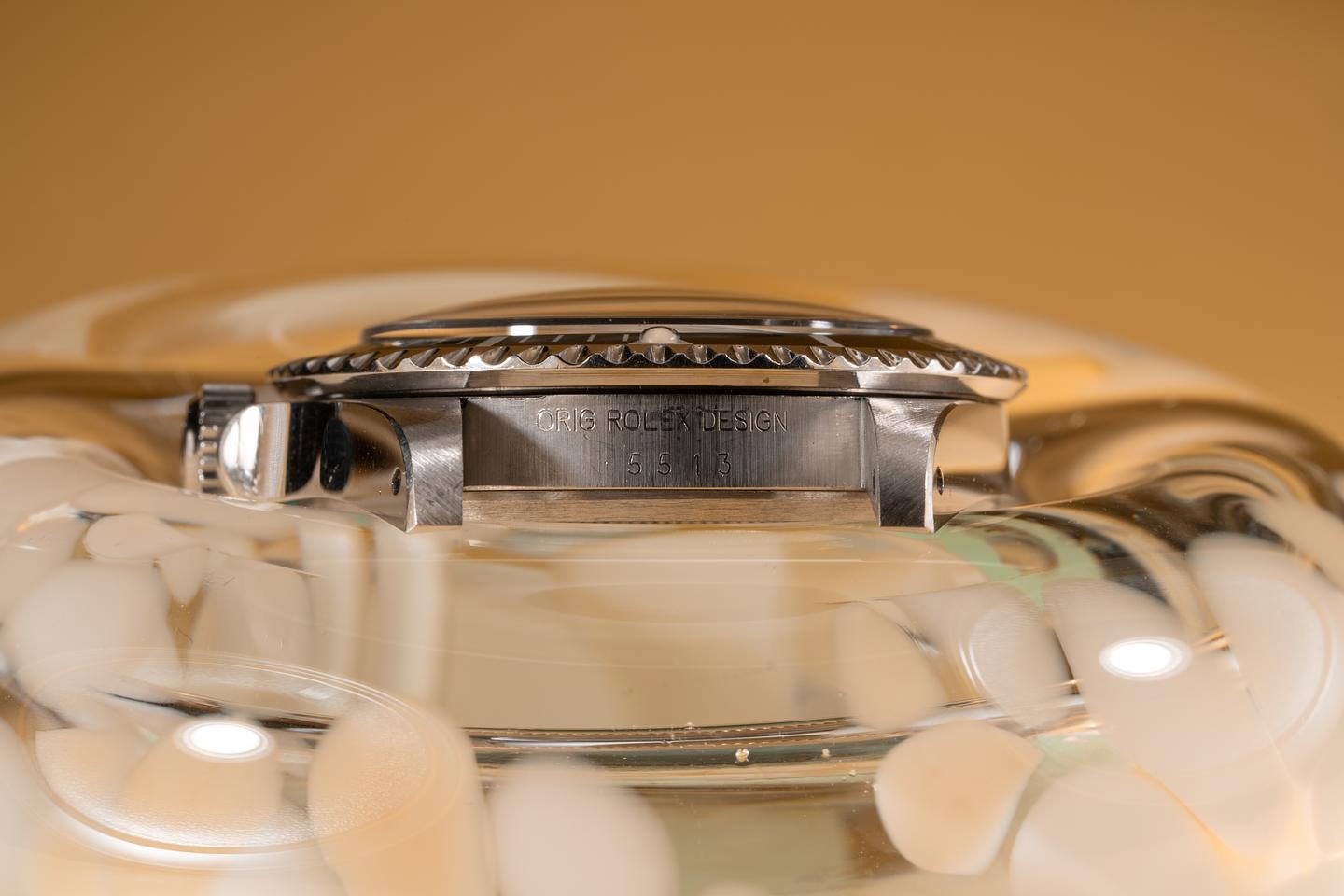 Case: The thick and even case has been polished in the past showing sharp prominent bevels and only light wear from use. The black bezel insert is also in excellent condition showing some light wear from use.