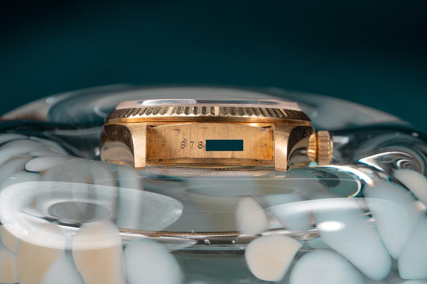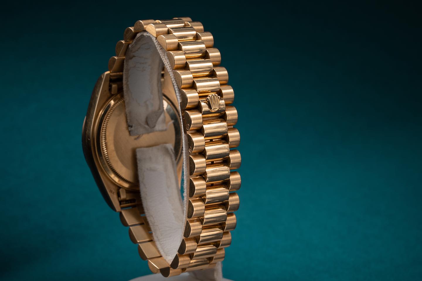 Bracelet: The 22 link 18k yg President bracelet is excellent showing only very light stretch for its age. The clasp is stamped with a 1984 date code.