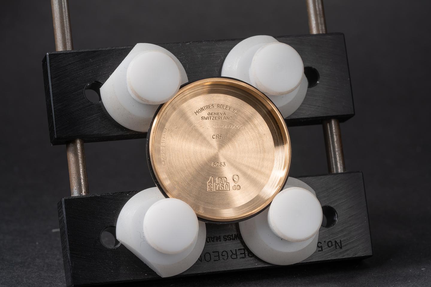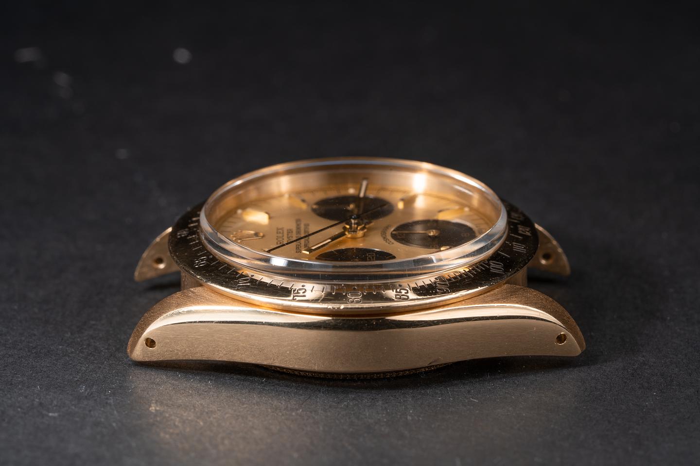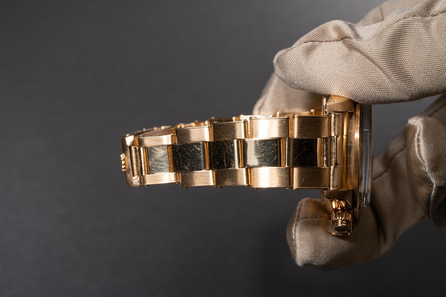 Case: The 18k yellow gold case is excellent showing a warm rosy patina on the crown side of the case and only light wear from use. The 18k yellow gold bezel is also in excellent condition showing only light wear from use.