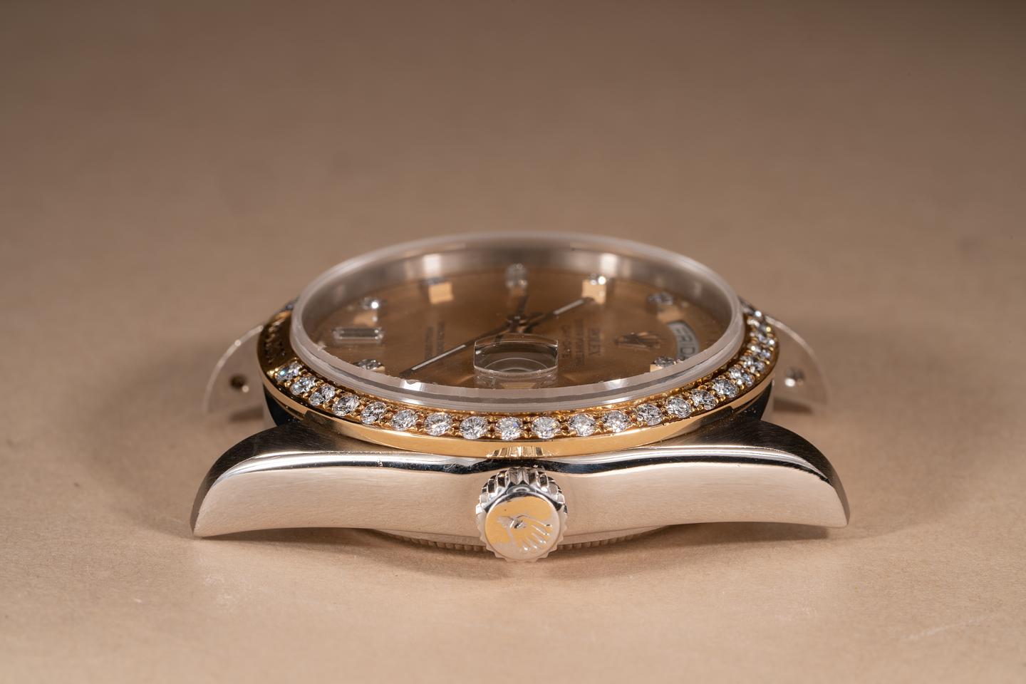 Dial: The champagne diamond dial is excellent showing no visible wear. The lume has aged to a warm creamy hue and the hands match perfectly.