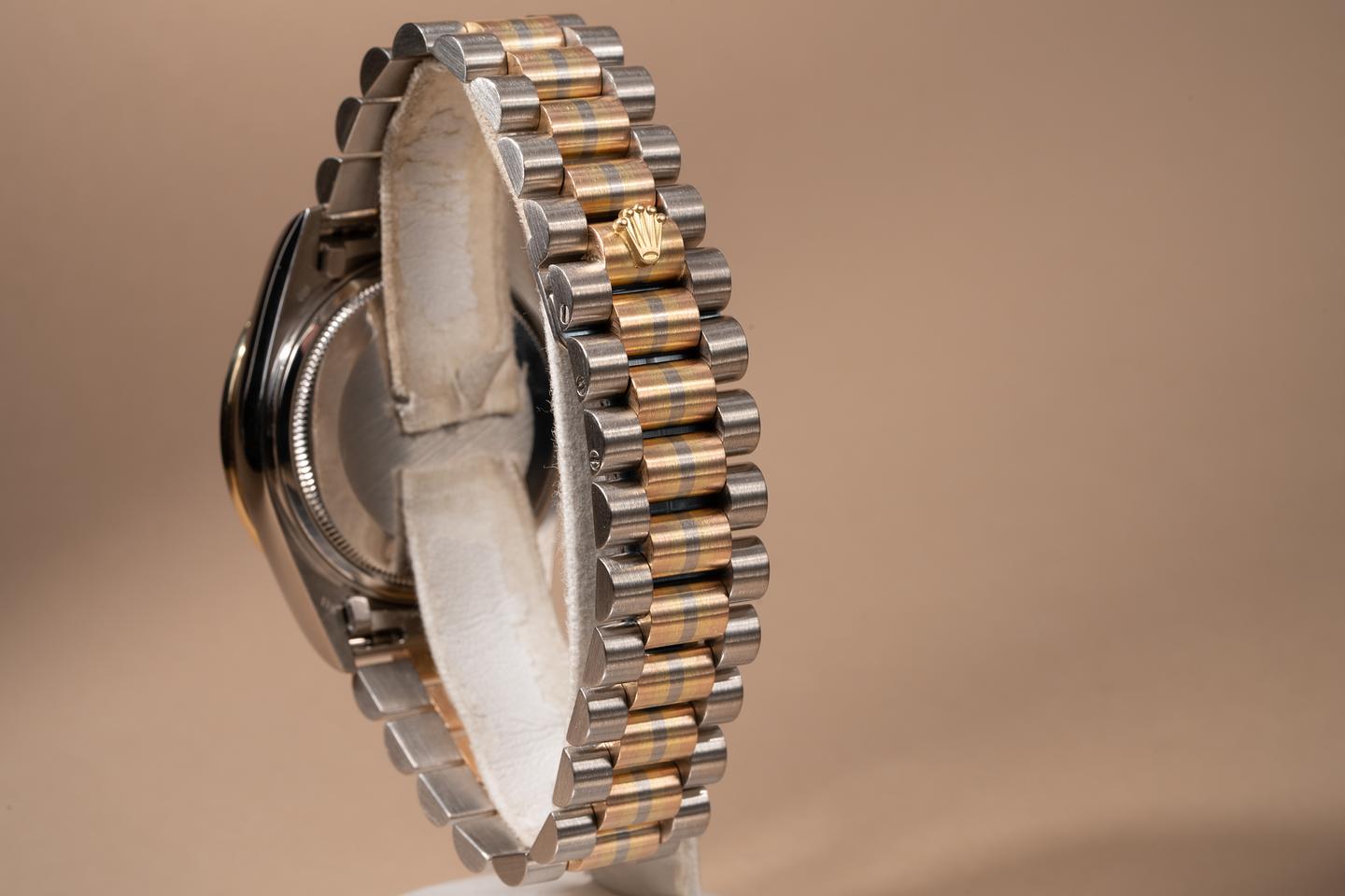 Bracelet: The 22 link Tridor white, yellow, and rose gold bracelet is excellent showing only light stretch for its age
