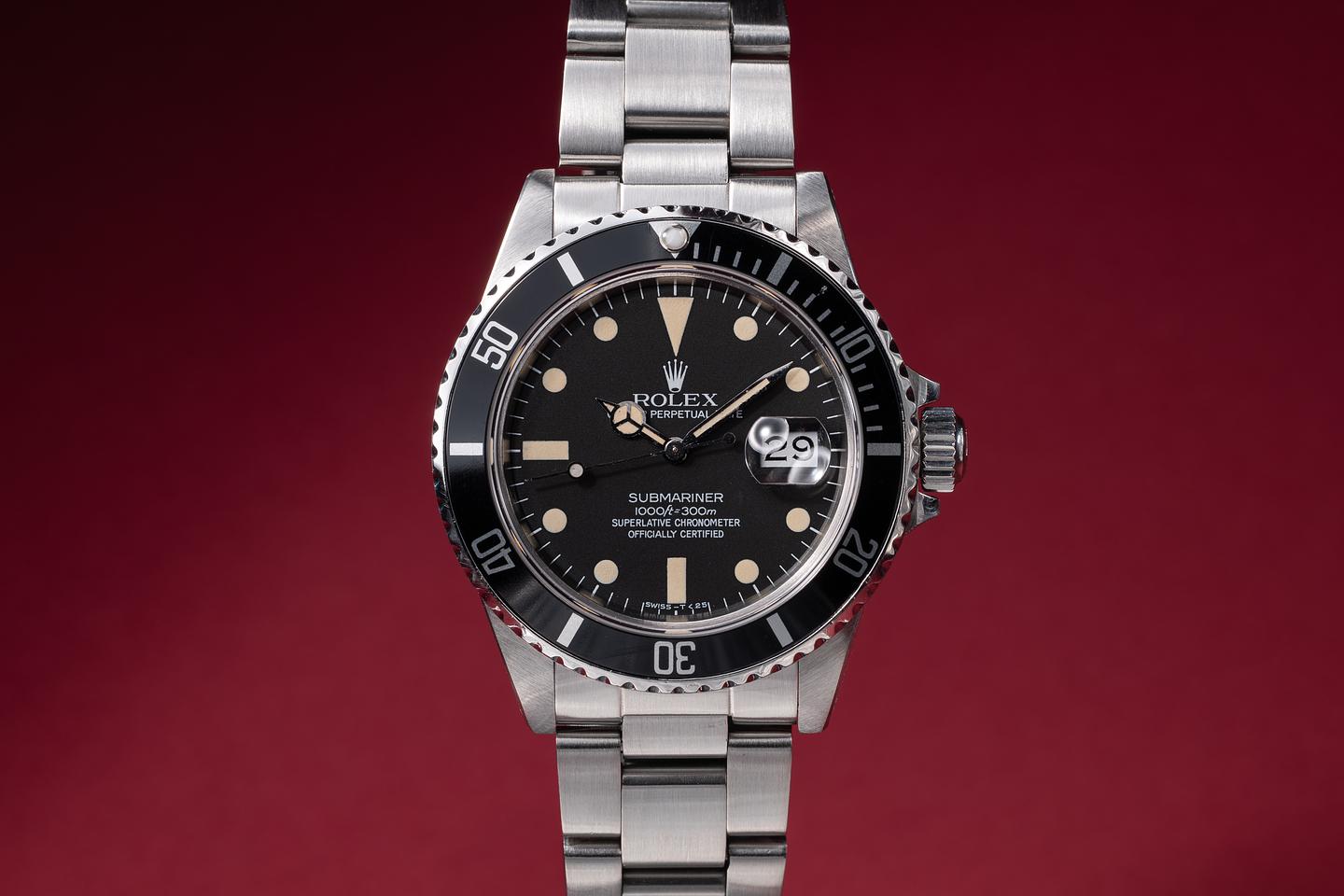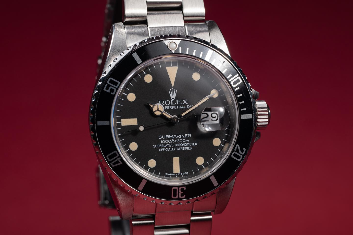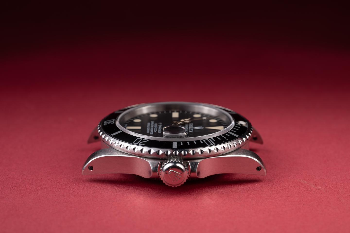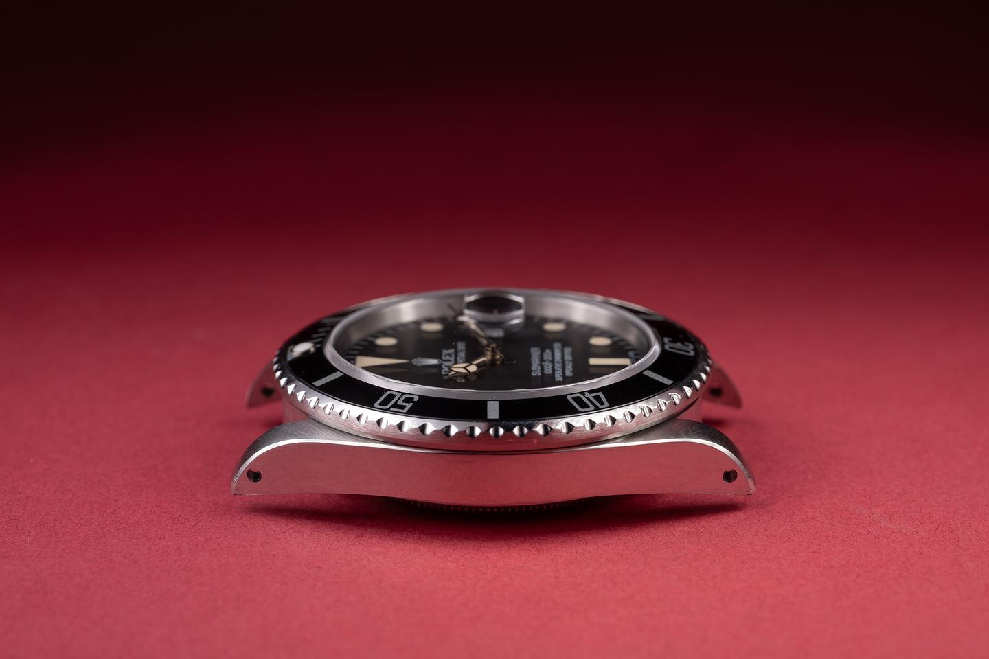 Case: The previously polished case is very good, showing sharp bevels and only very light wear from use. The black bezel insert is in excellent condition, showing only light wear from use.