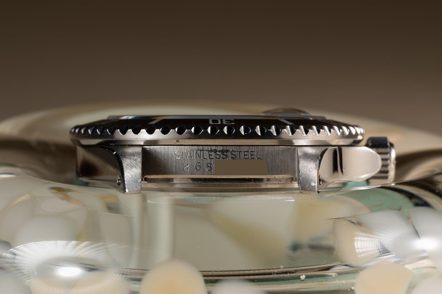 Case: The previously polished case is excellent showing some light wear from use. The black bezel insert is also in excellent condition showing some light wear from use.