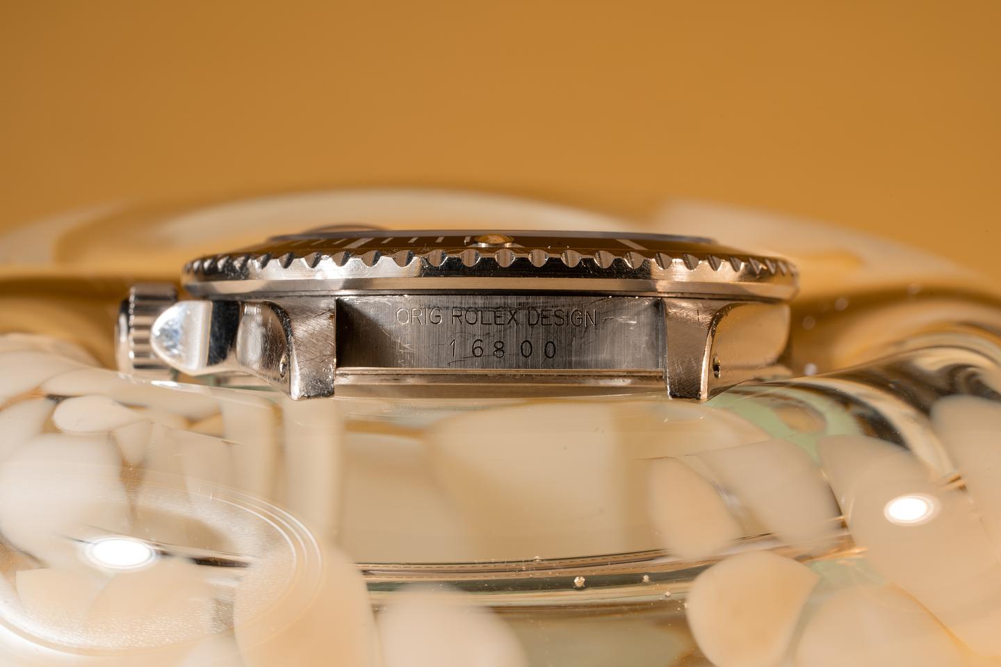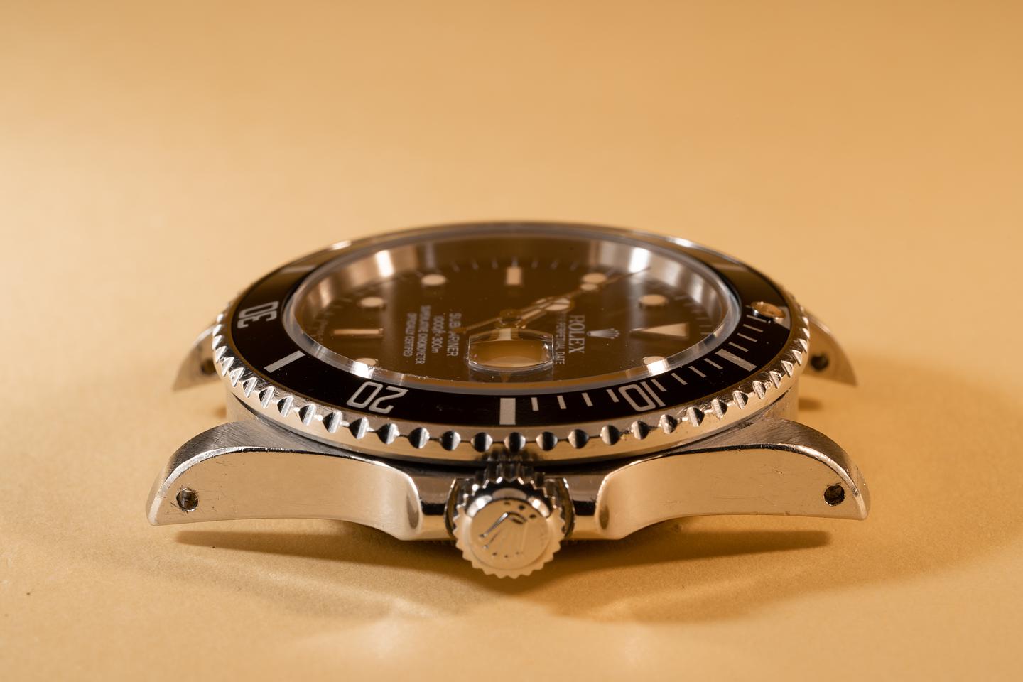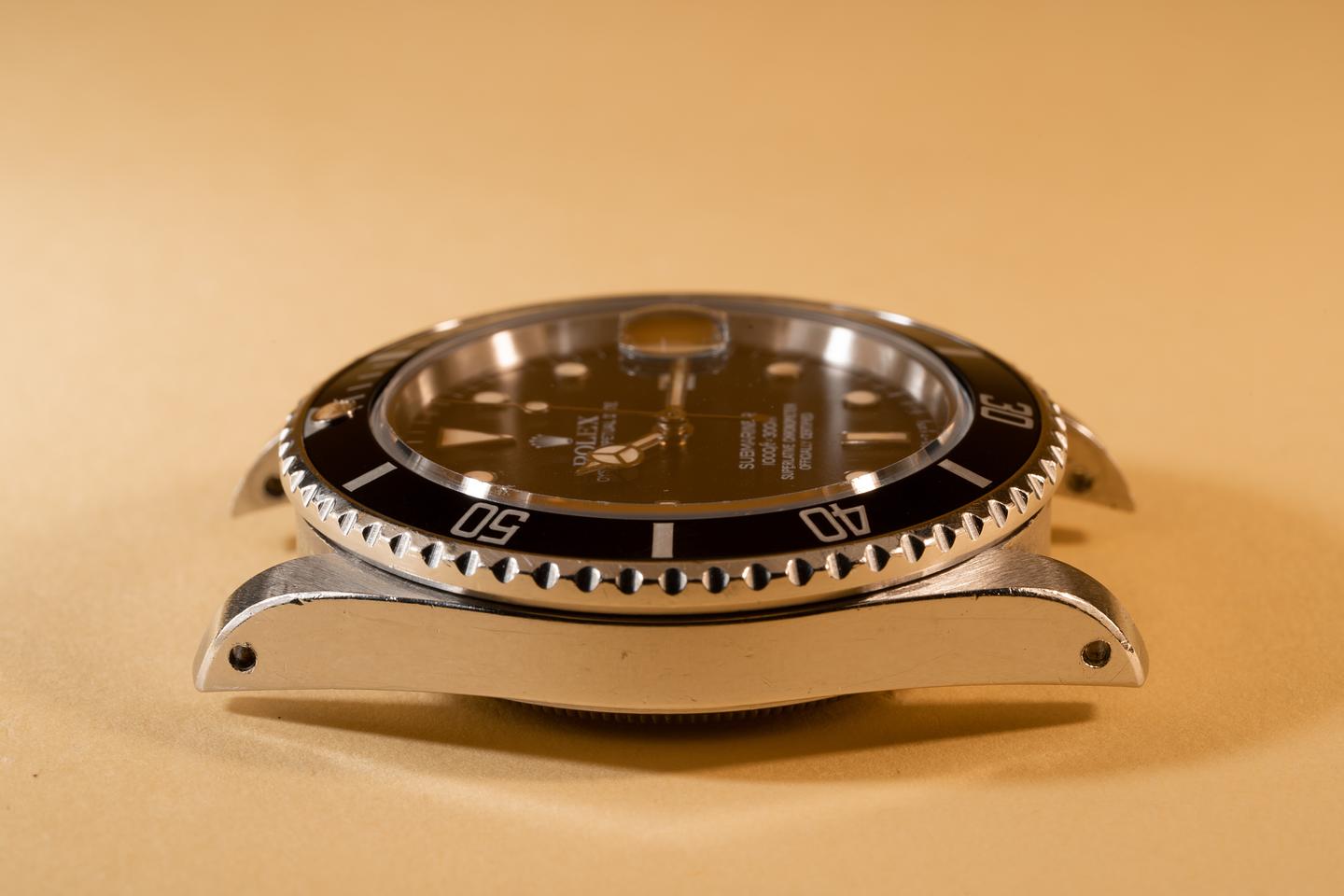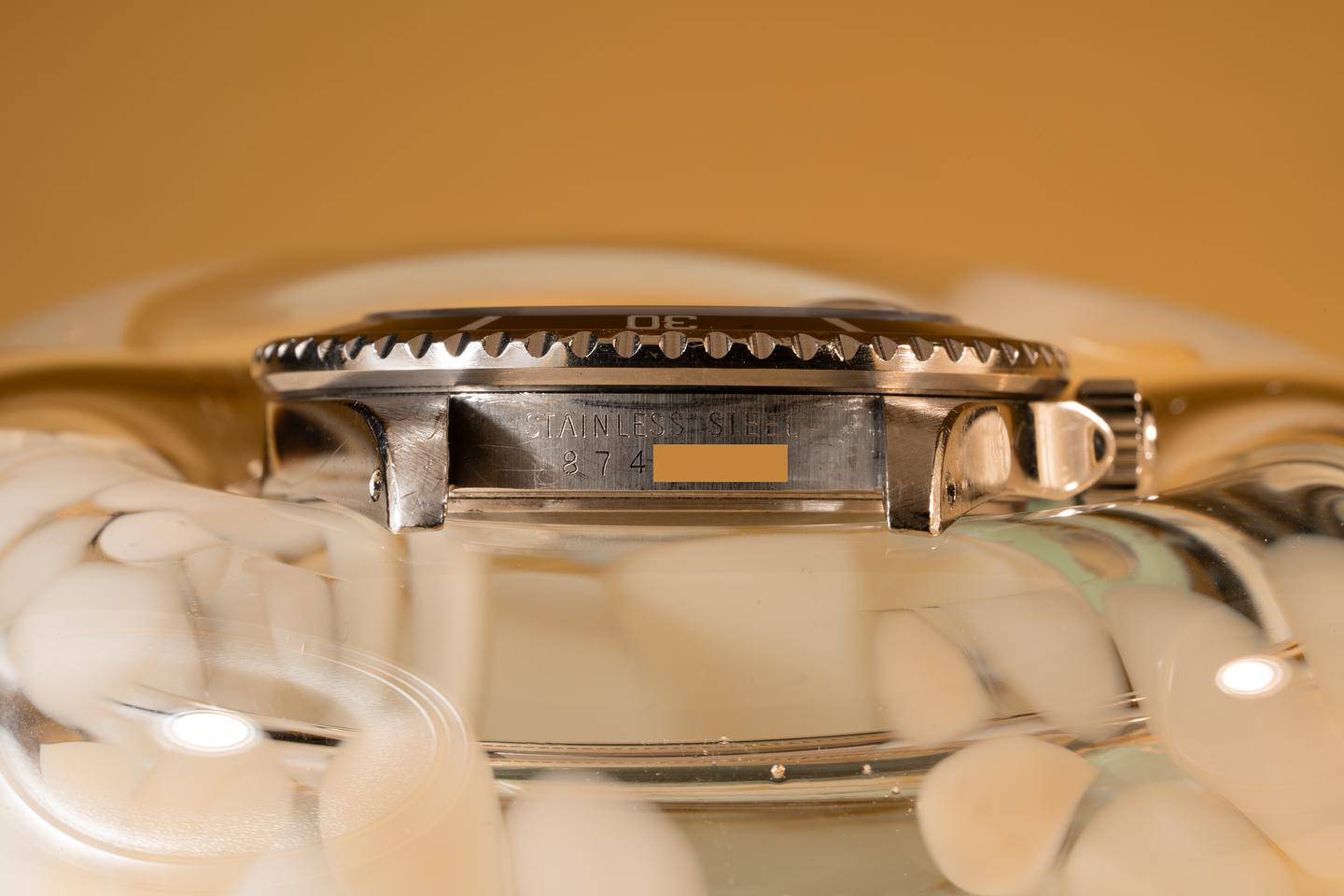 Case: The unpolished case is excellent with the factory bevels still intact and showing seom wear from use. The black bezel insert is also in excellent condition showing light wear from use.