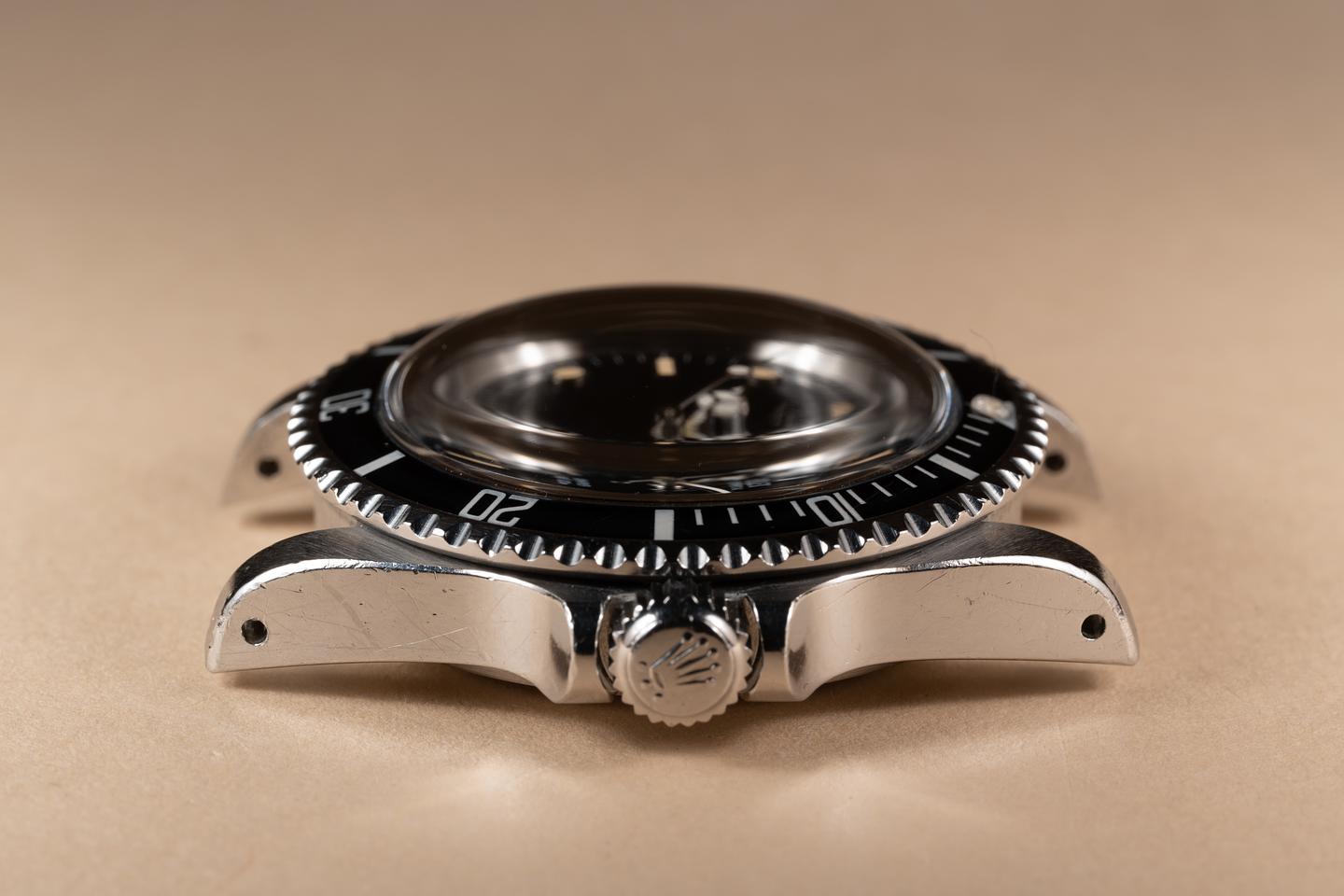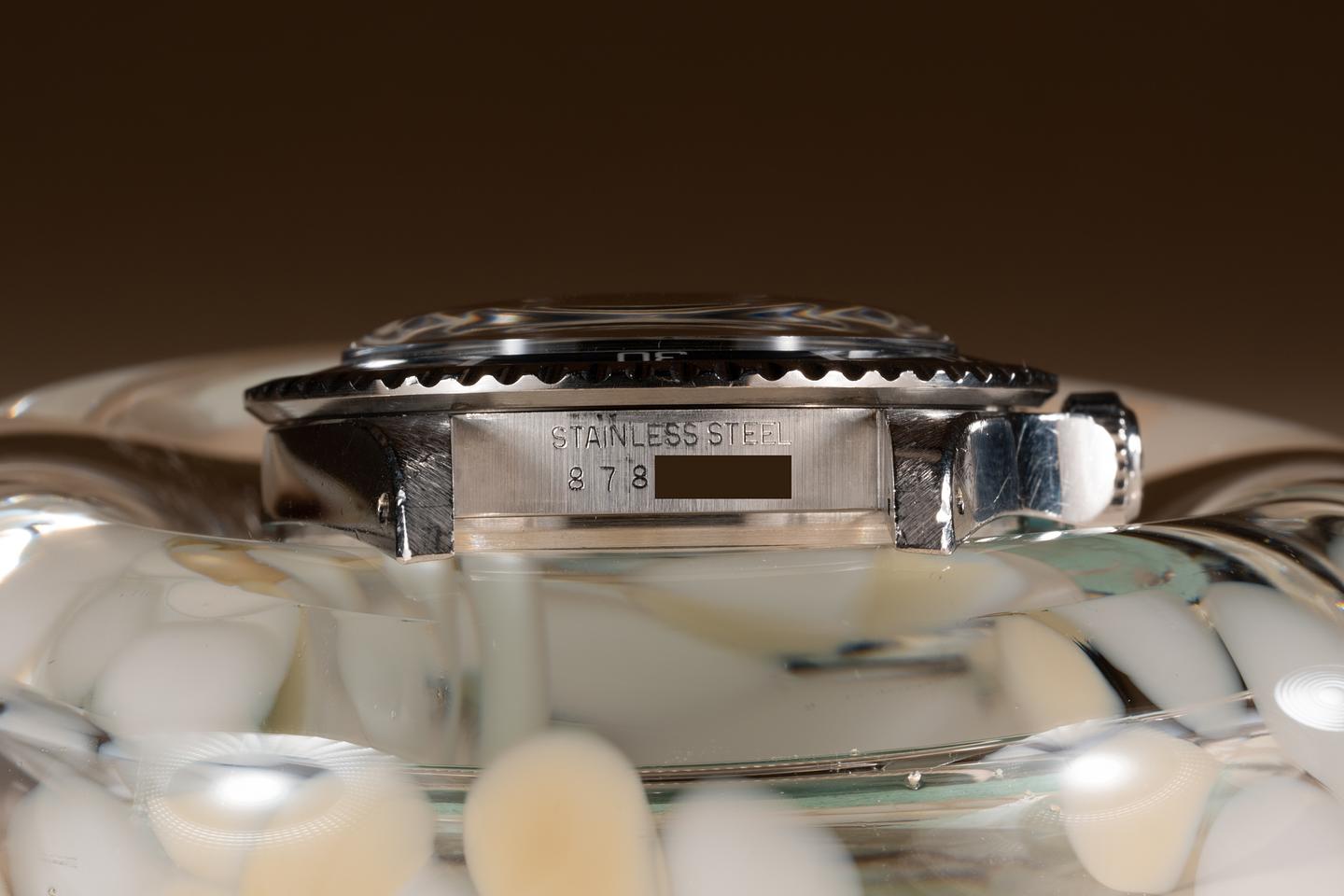 Case: The unpolished case is excellent showing sharp factory bevels and average wear from use. The black bezel insert is also in excellent condition showing only light wear from use.