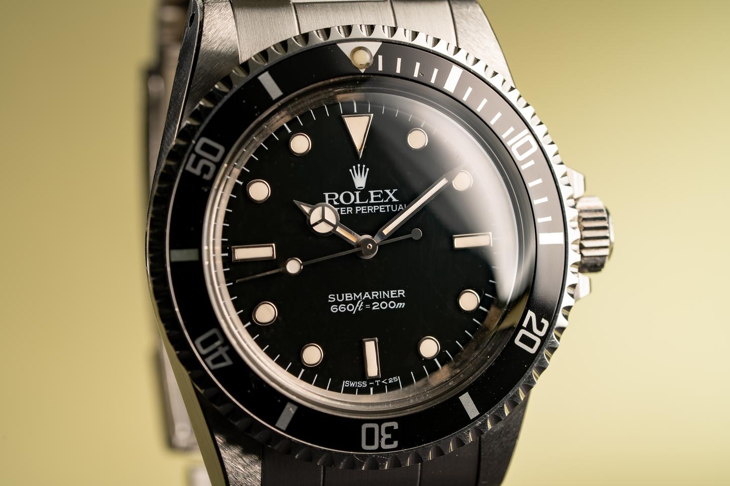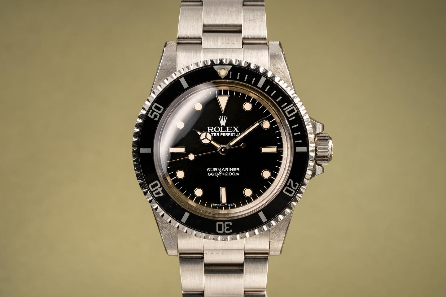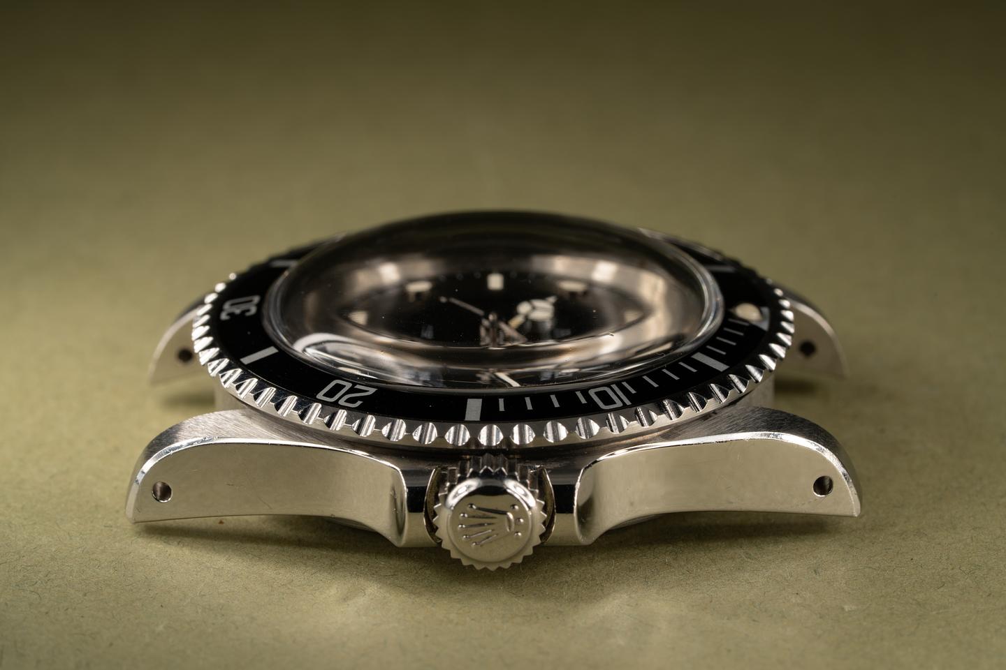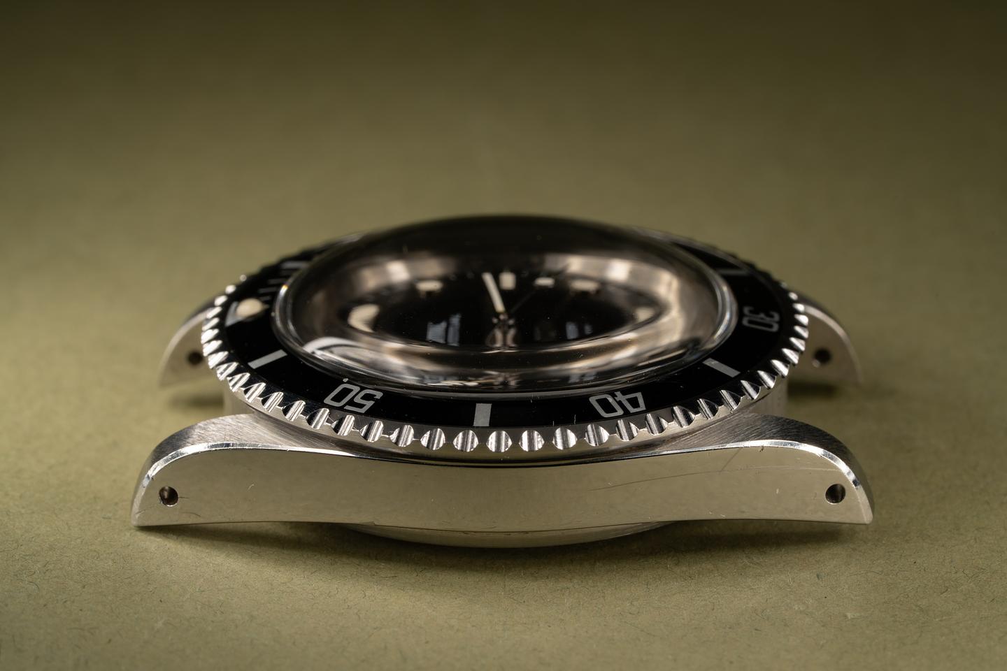 Case: The thick even case is unpolished with sharp and prominent factory bevels. The black bezel insert is also in excellent condition and shows only light wear from use.