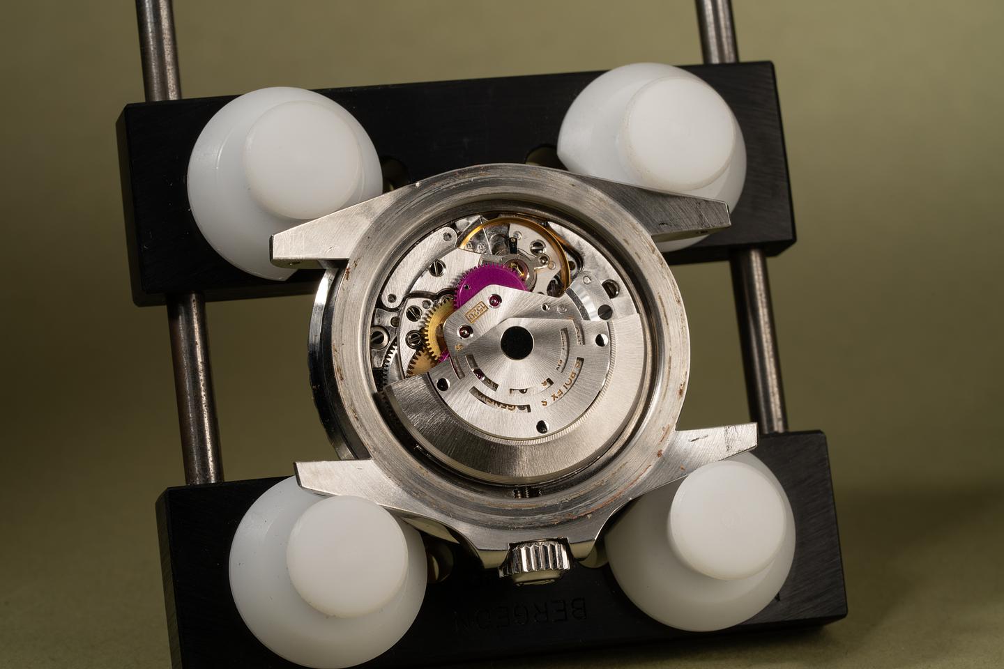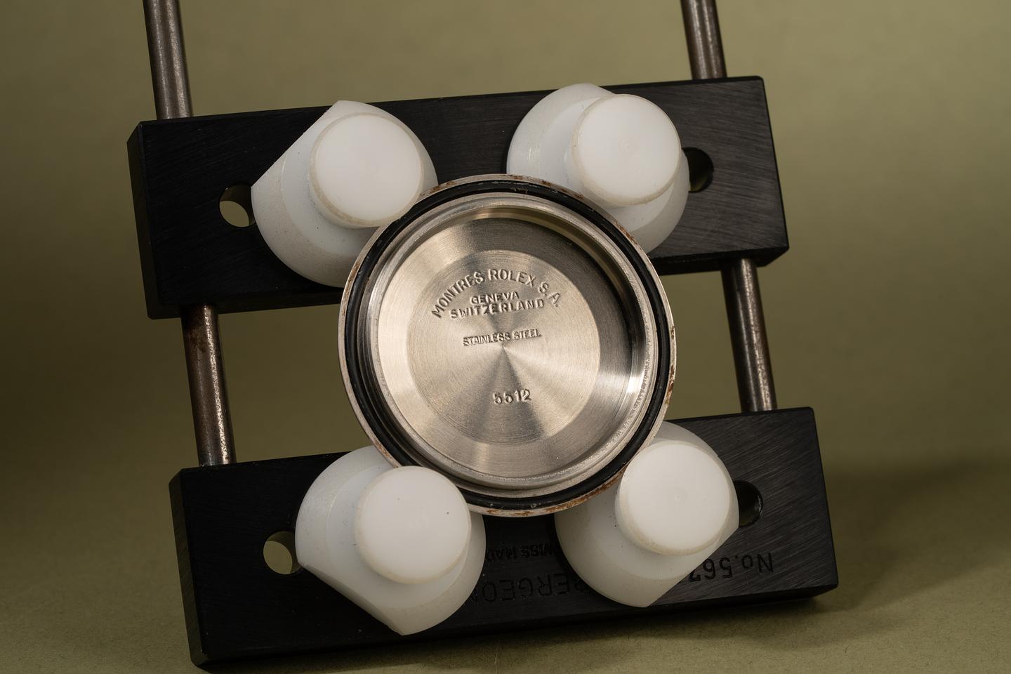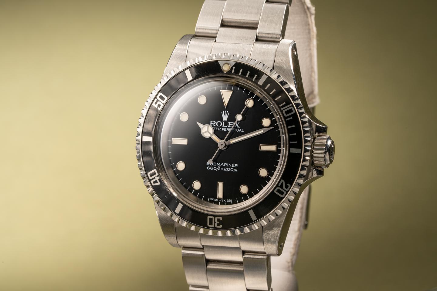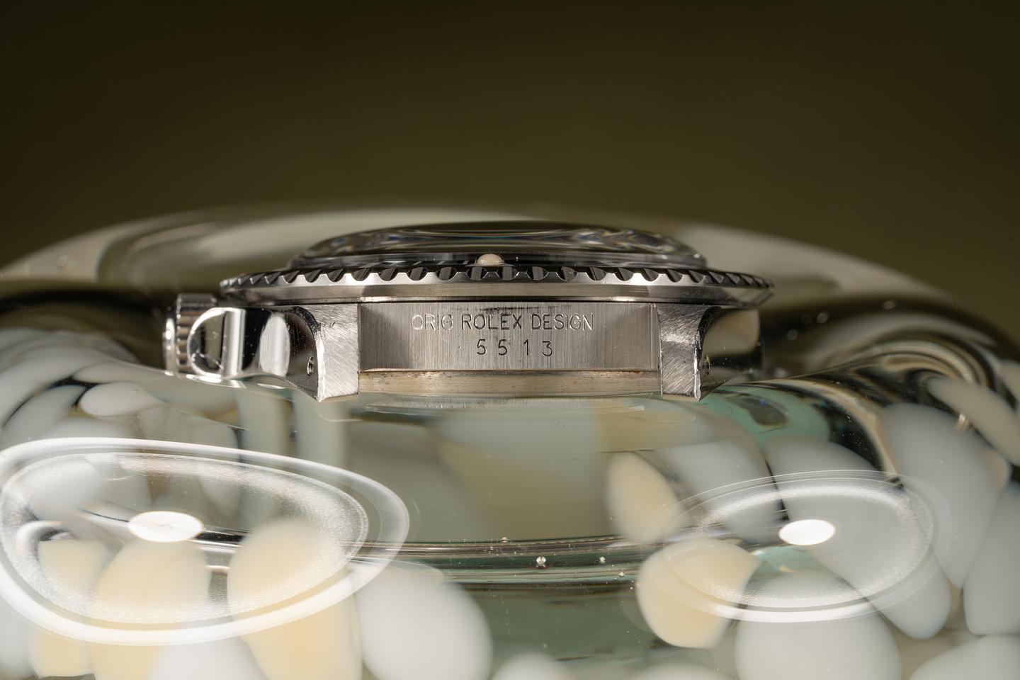 Case: The thick even case is unpolished with sharp and prominent factory bevels. The black bezel insert is also in excellent condition and shows only light wear from use.