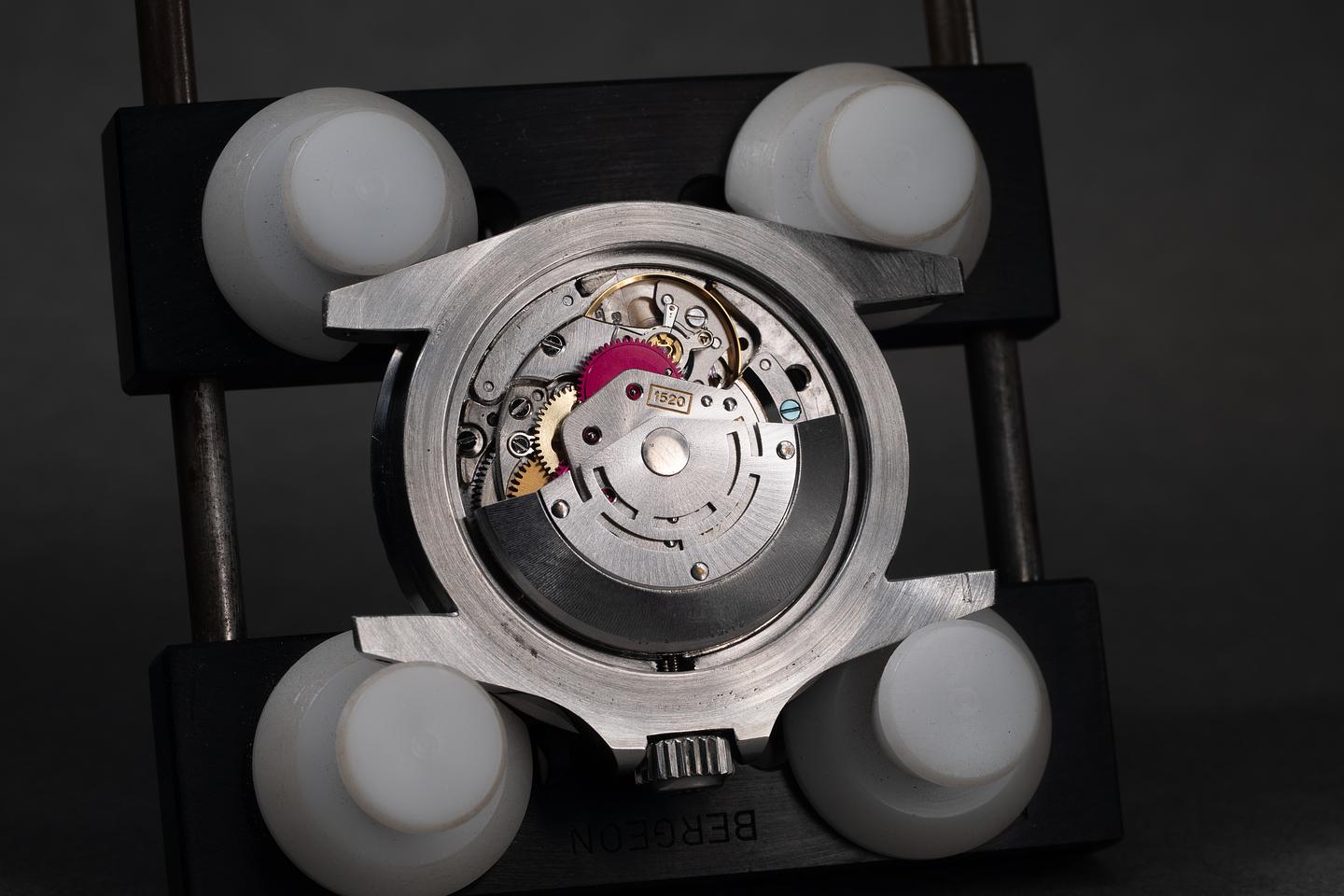 Dial: The glossy black White gold surround dial is very good showing an extensive and even speckling patina across its surface. The edge of the dial shows some light chipping. The lume has turned a light creamy hue and the hands have aged slightly lighter than the dial.