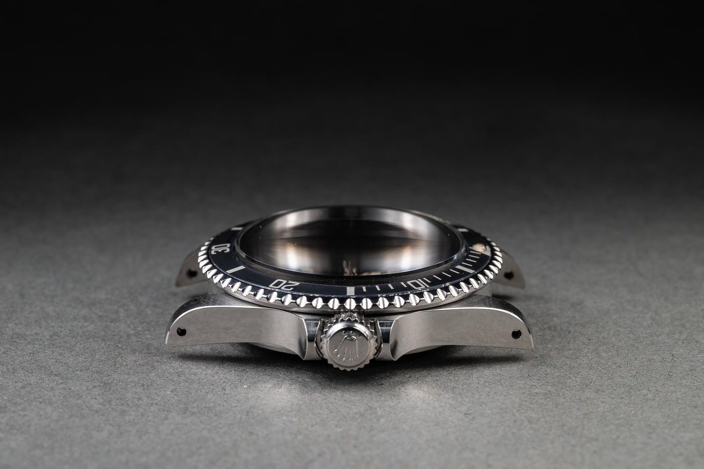 Case: The recently polished case is excellent, showing sharp prominent bevels and only very light wear.. The black bezel insert is also in excellent condition and shows very light fading.