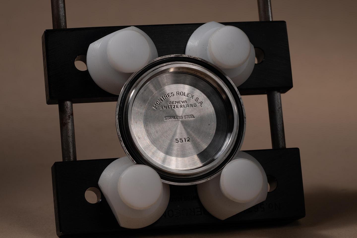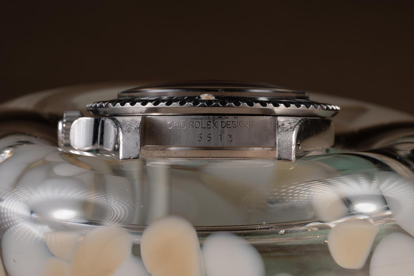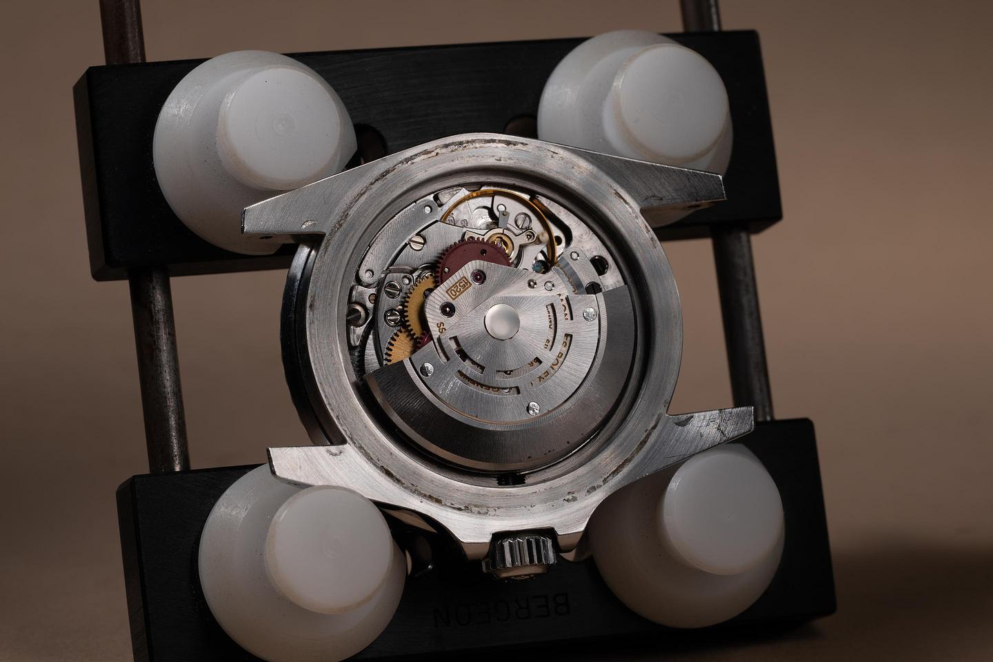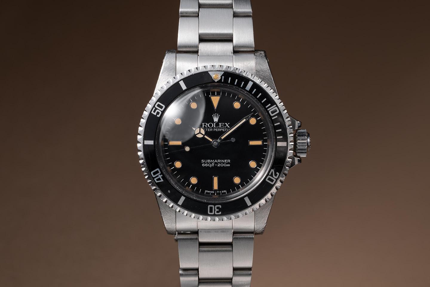 Case: The unpolished case is excellent, showing wide, sharp, prominent bevels, and light to average wear from use. The black bezel insert is also in excellent condition, showing only light wear from use.