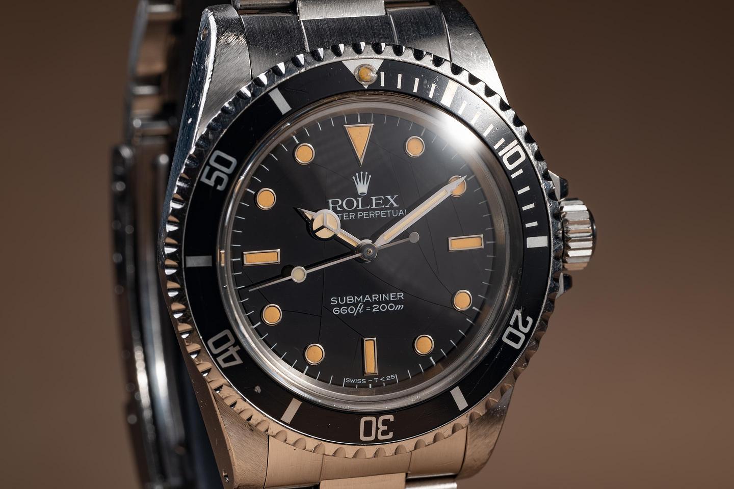 Dial: The glossy black, white gold surround dial is excellent, showing a spider cracking patina across its surface. The lume has aged to a warm, vibrant goldenrod hue, and the hands have aged several shades lighter than the dial.