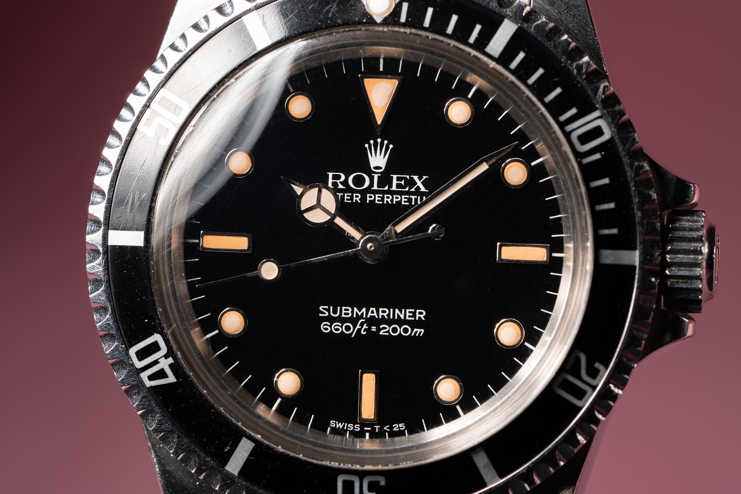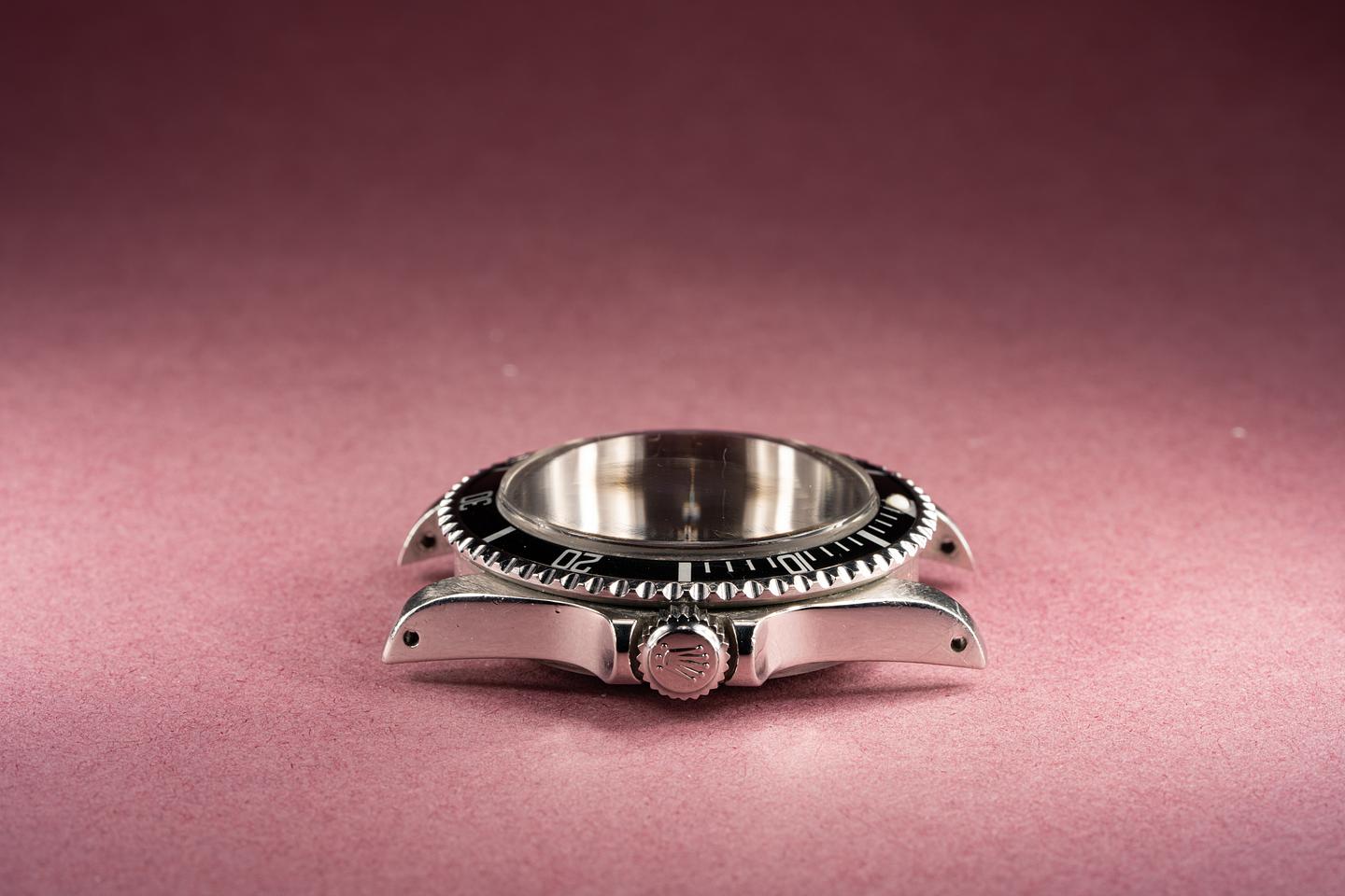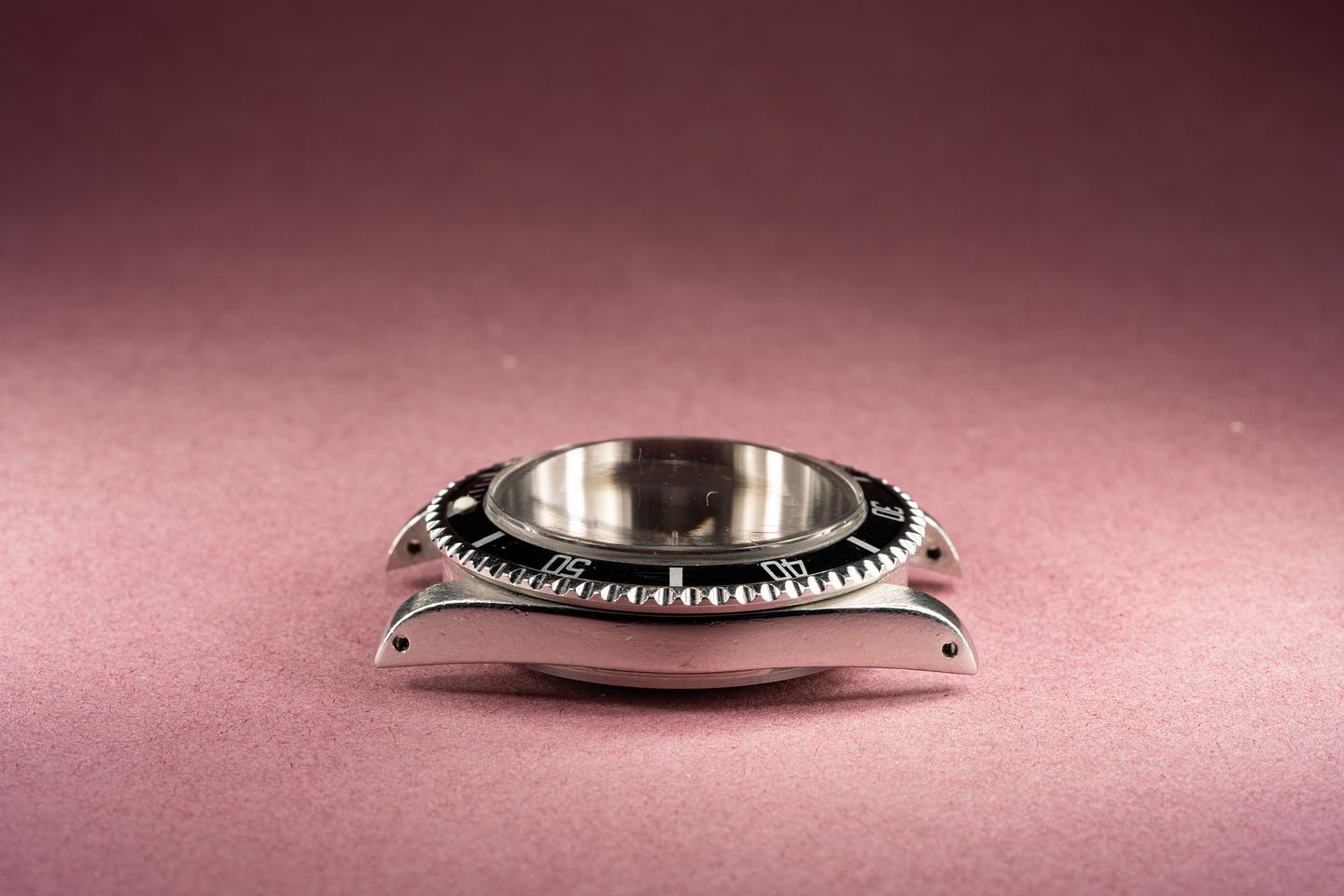 Case: Excellent and thick case that has been polished in the past and shows some moderate wear. The black bezel is also excellent and shows some wear.
