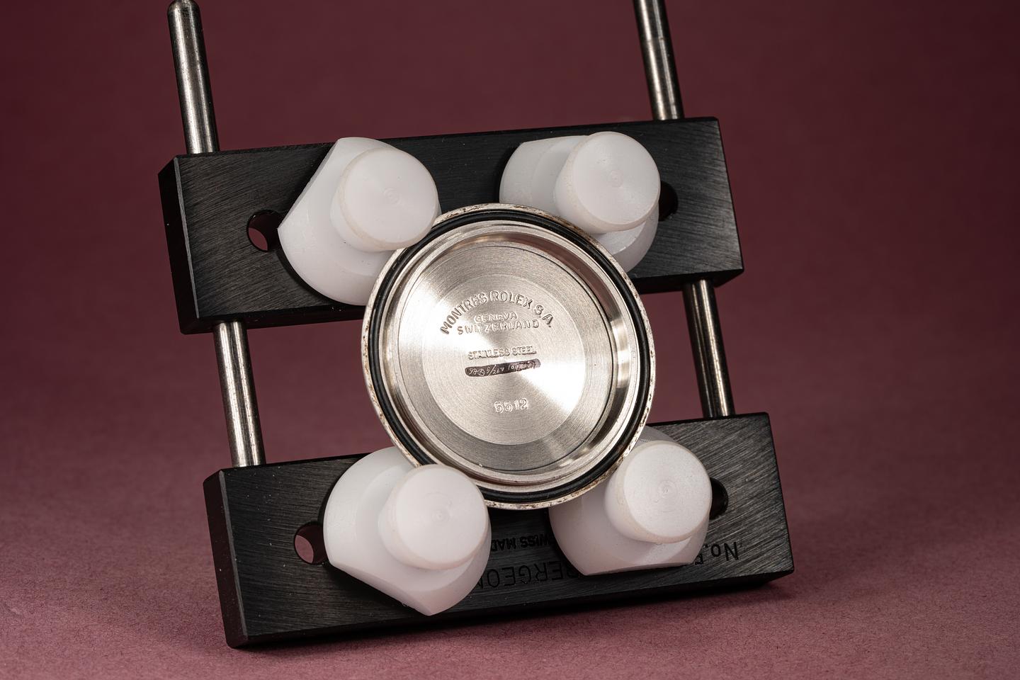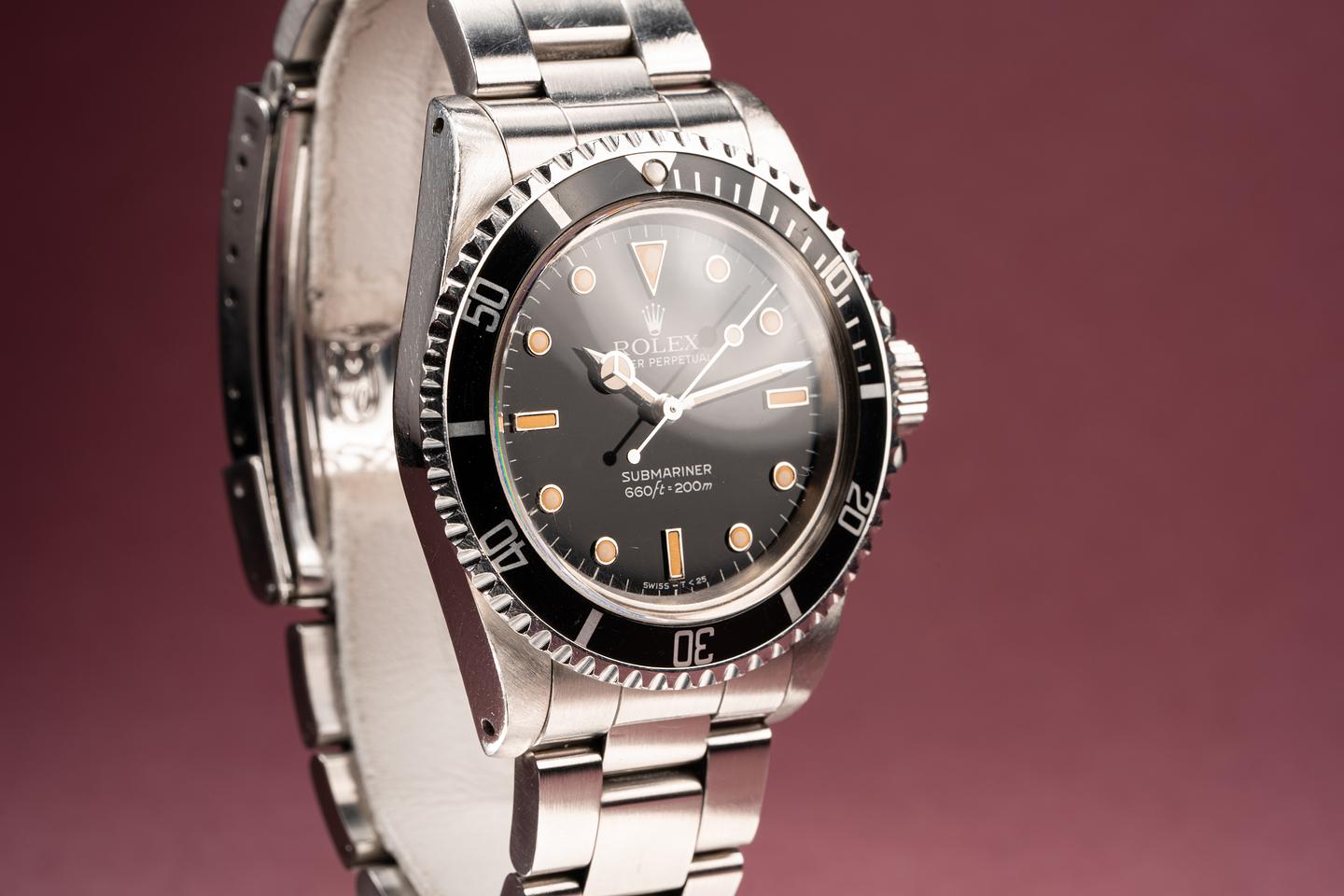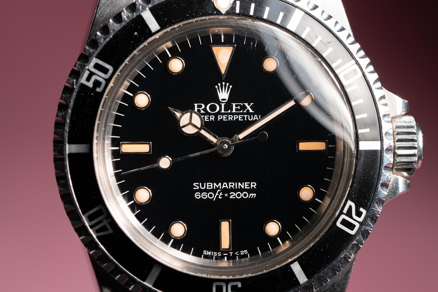 Case: Excellent and thick case that has been polished in the past and shows some moderate wear. The black bezel is also excellent and shows some wear.
