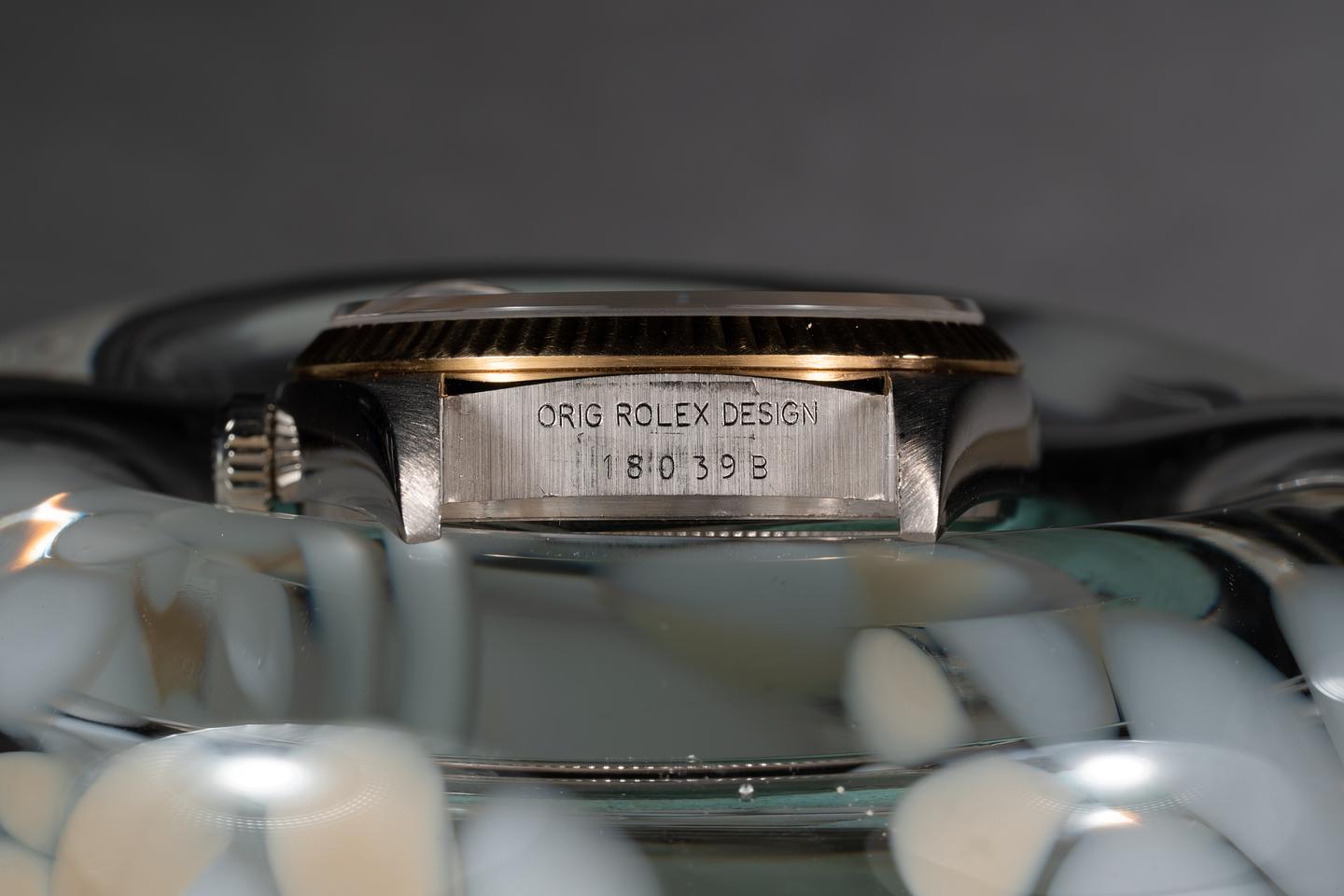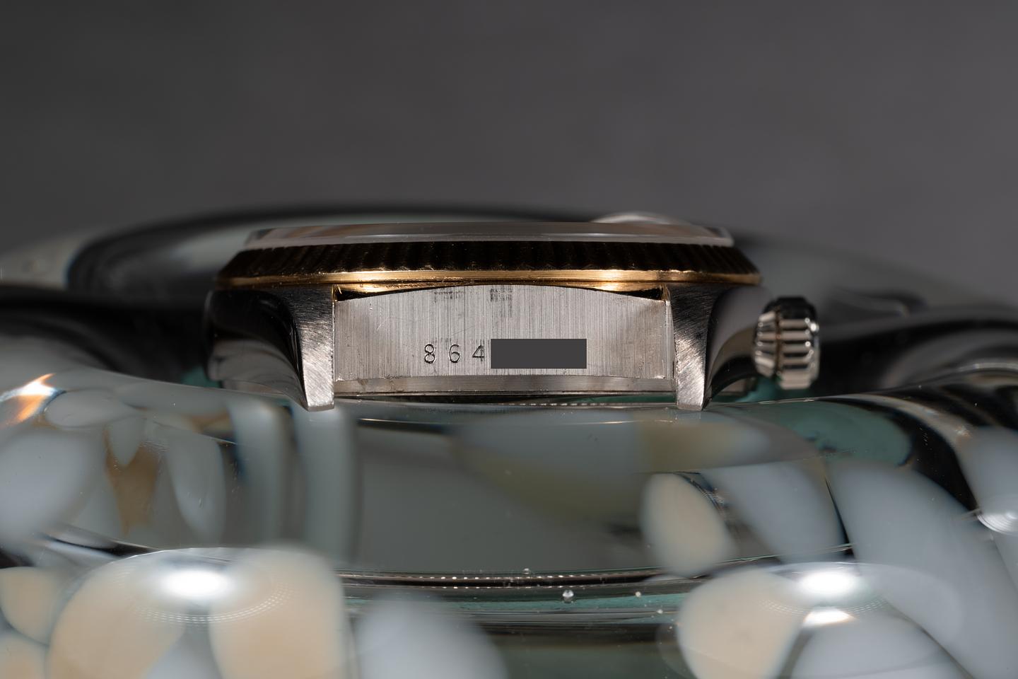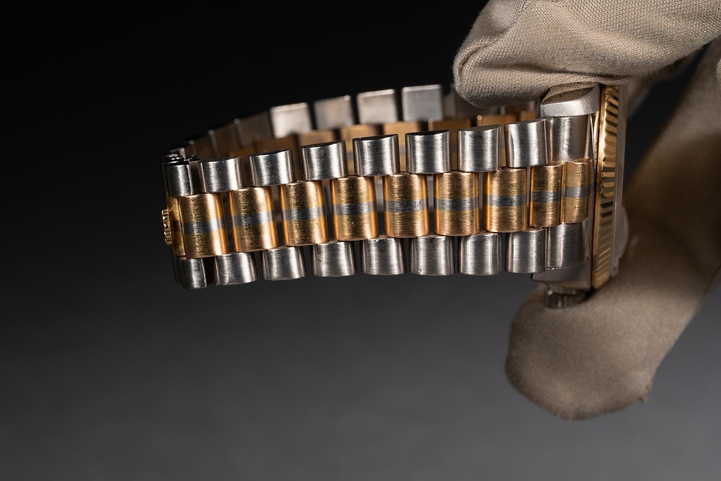 Case: The 18k white gold case is excellent showing only light wear from use. The 18k yellow gold fluted bezel is also in excellent condition showing only light wear from use.