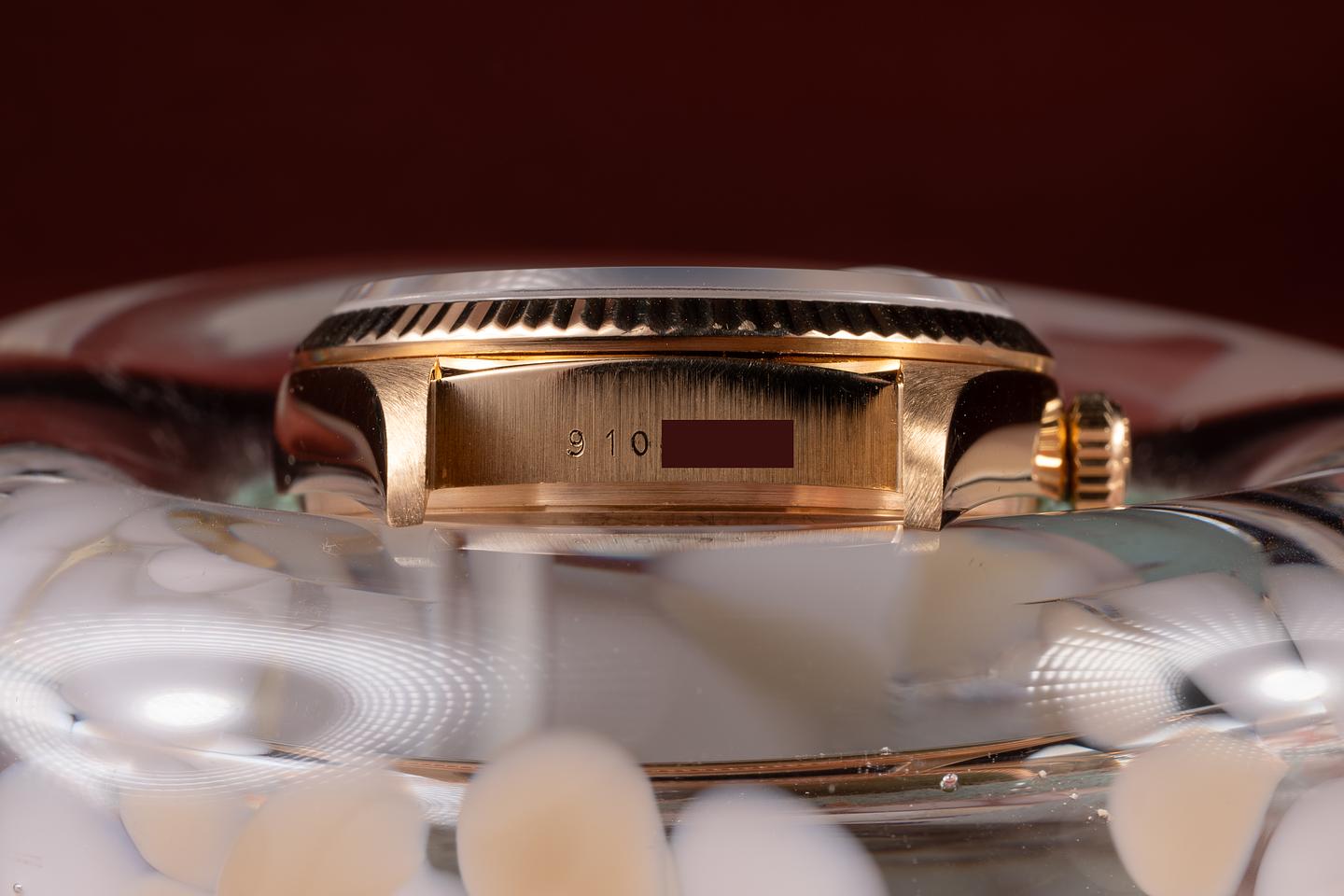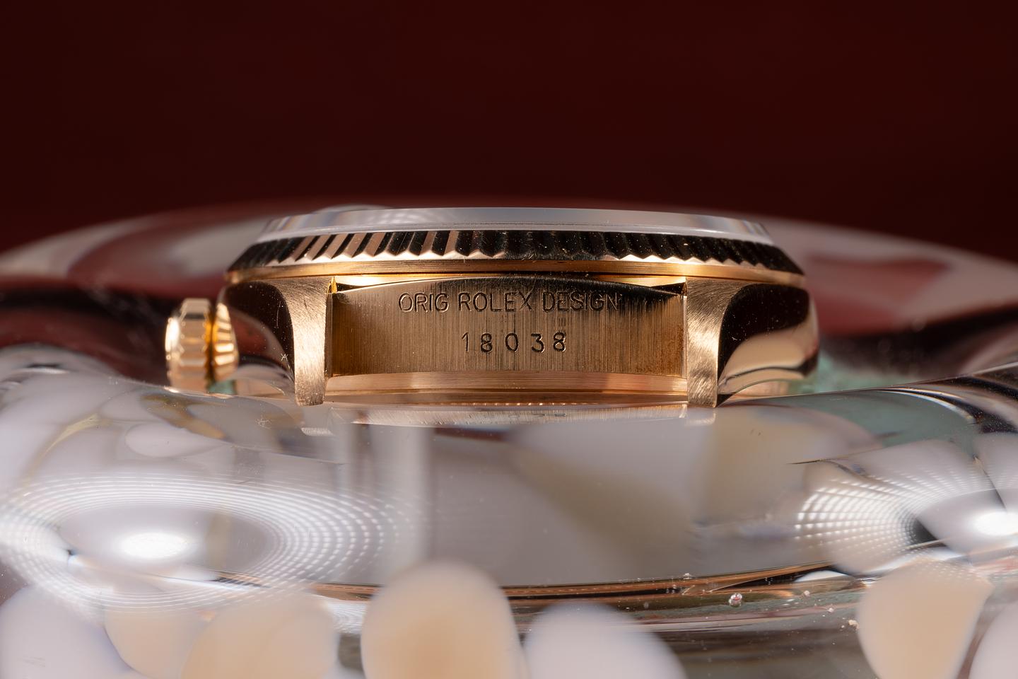 Case: The recently polished 18K yellow gold case is excellent, showing only very light wear. The 18K yellow gold fluted bezel is also in excellent condition, showing only very light wear from use.