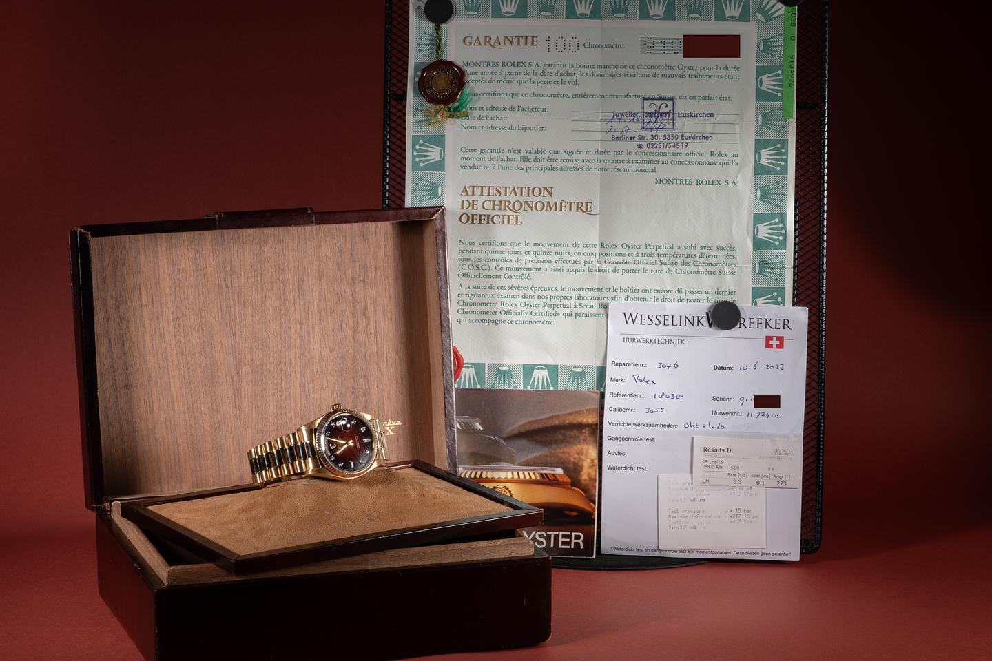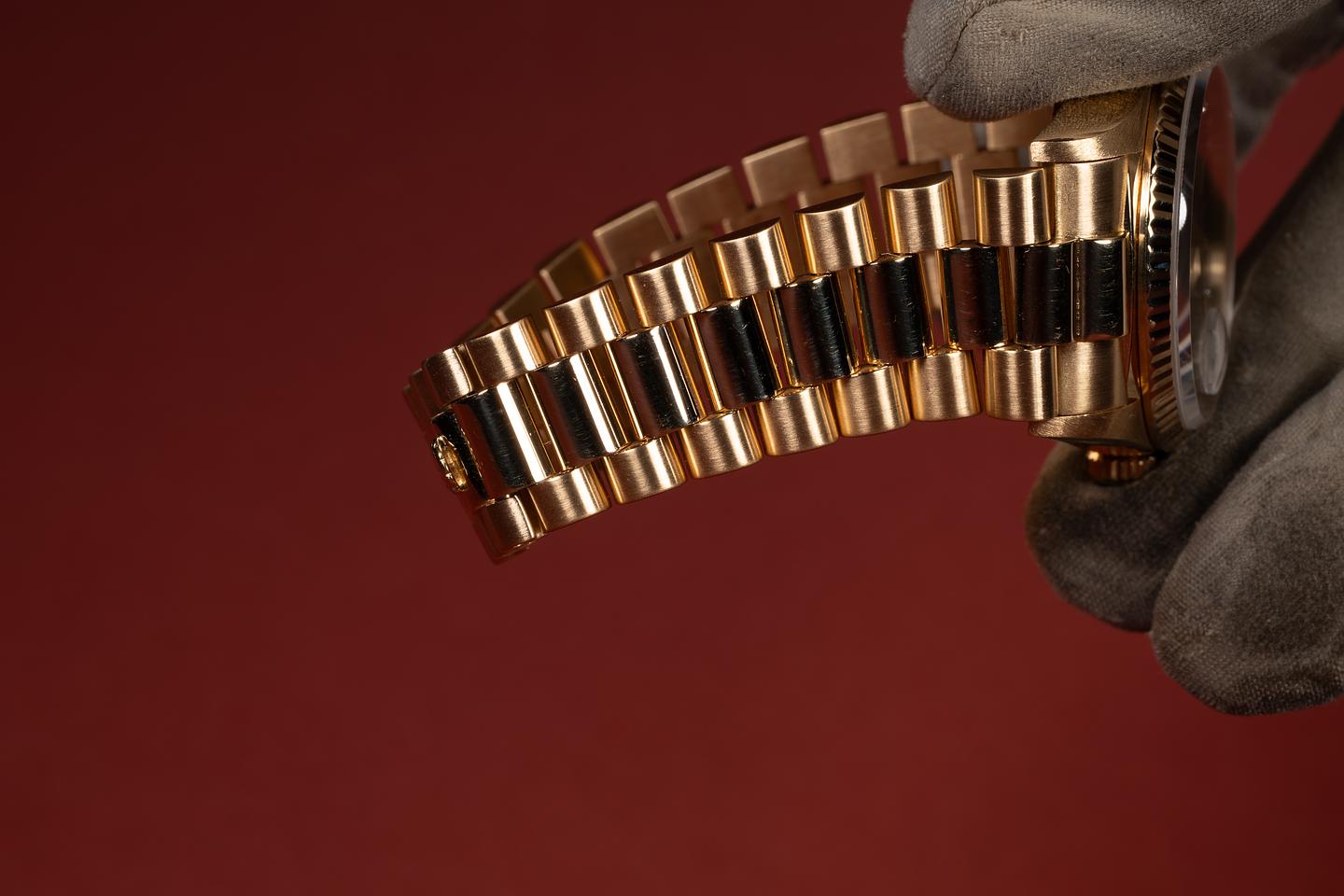 Bracelet: The 21-link 18K yellow gold President bracelet is excellent, showing only very light stretch for its age.