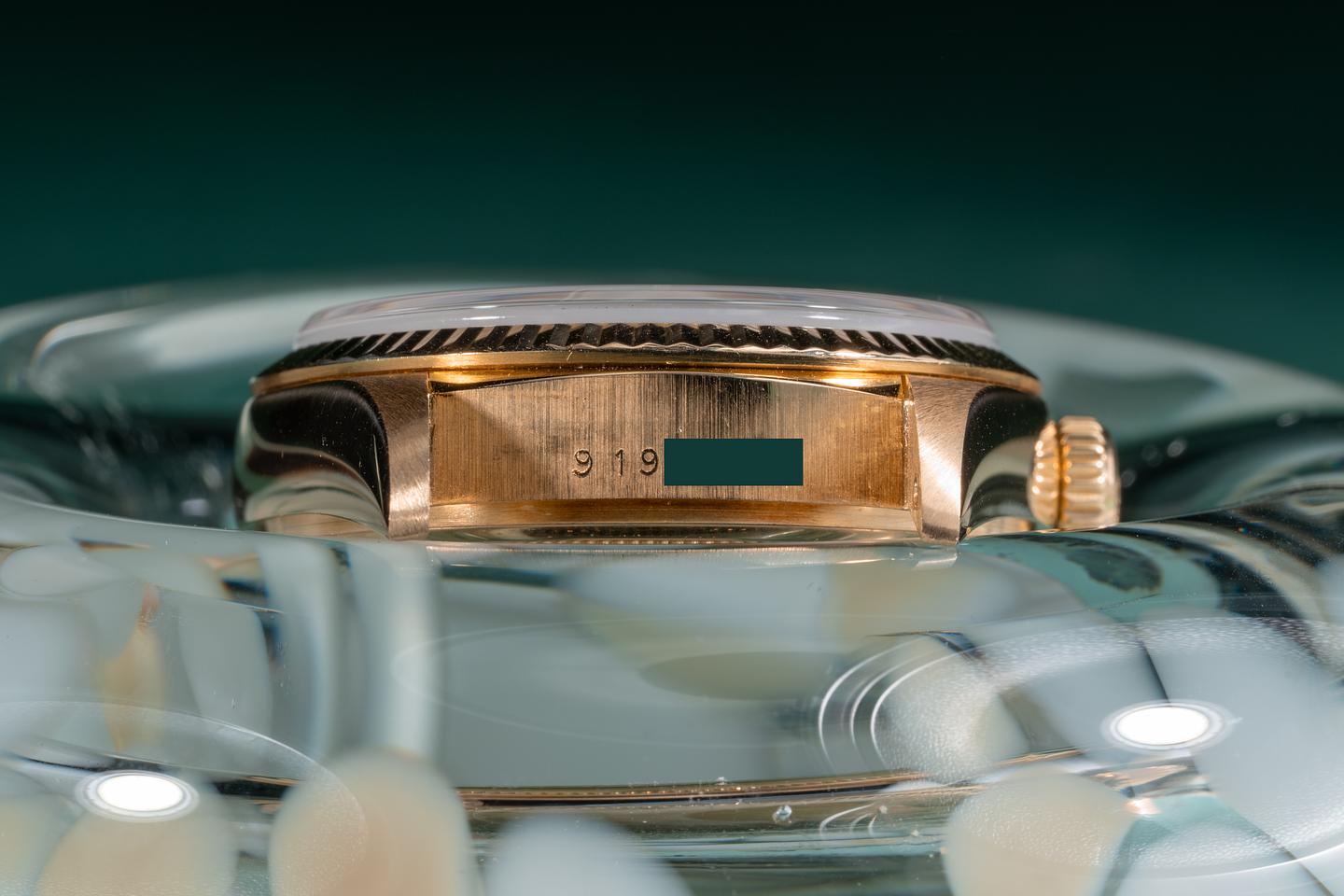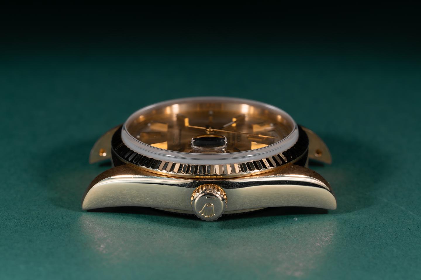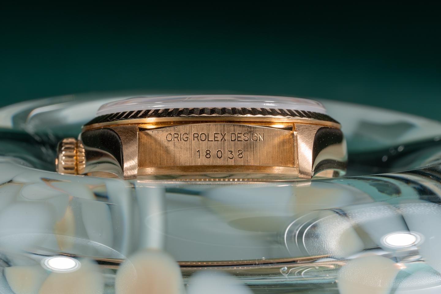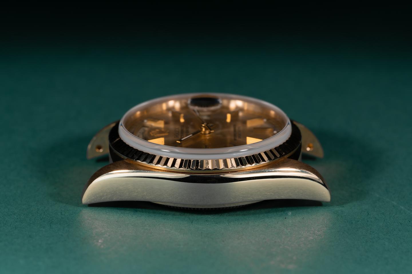 Case: The 18k yellow gold case is excellent showing only very light wear from use. The sharp 18k yellow gold fluted bezel is also in excellent condition showing only very light wear from use.
