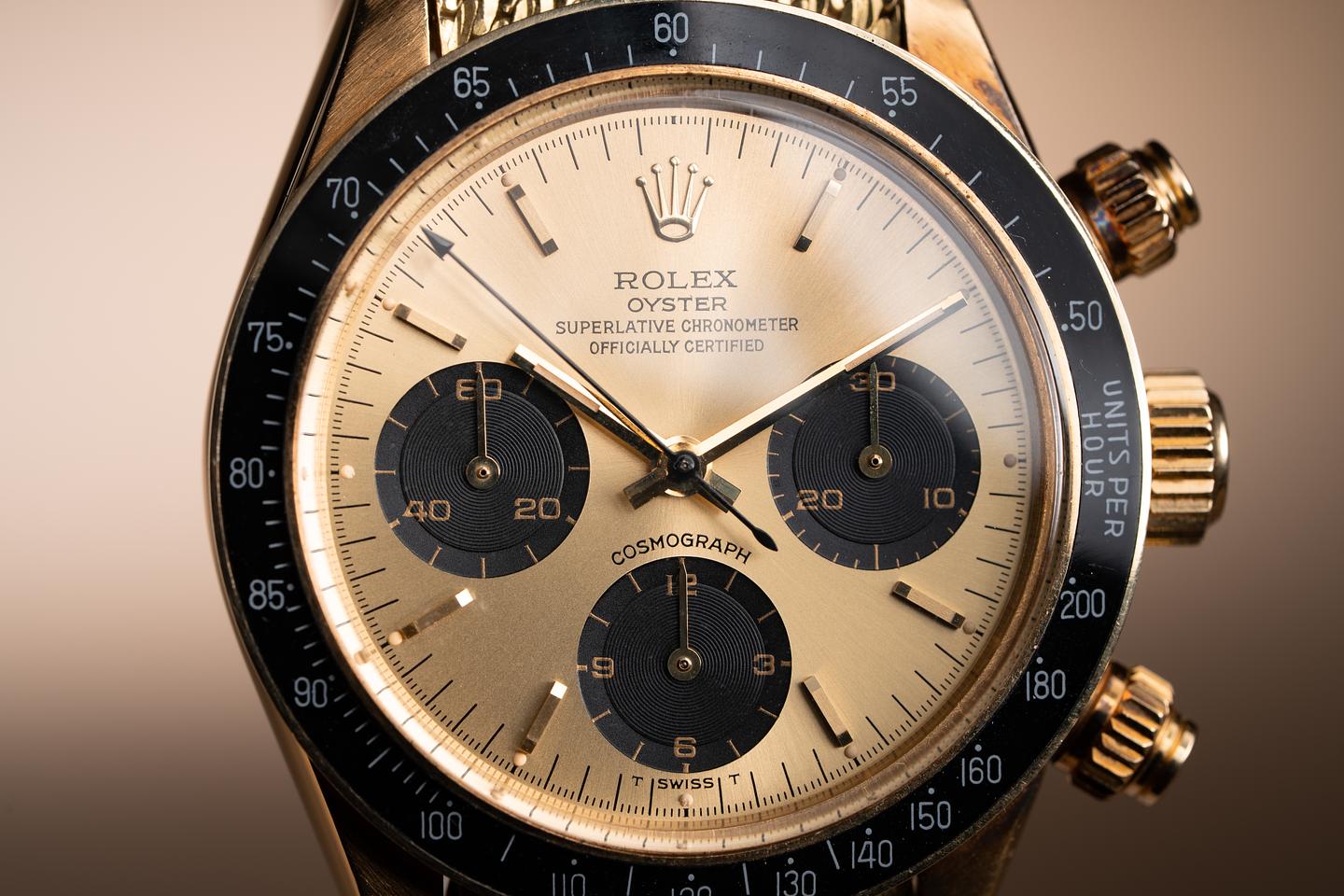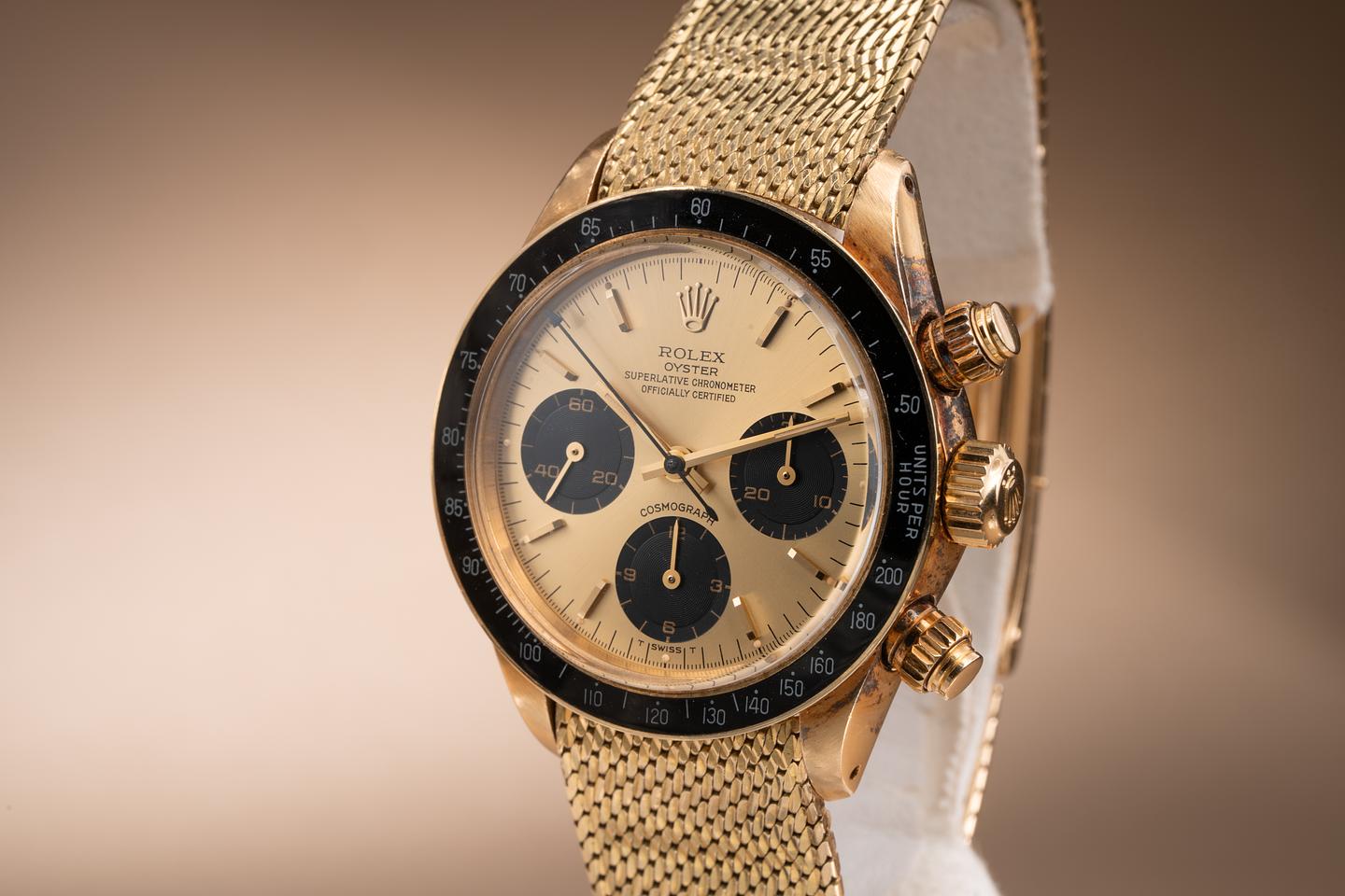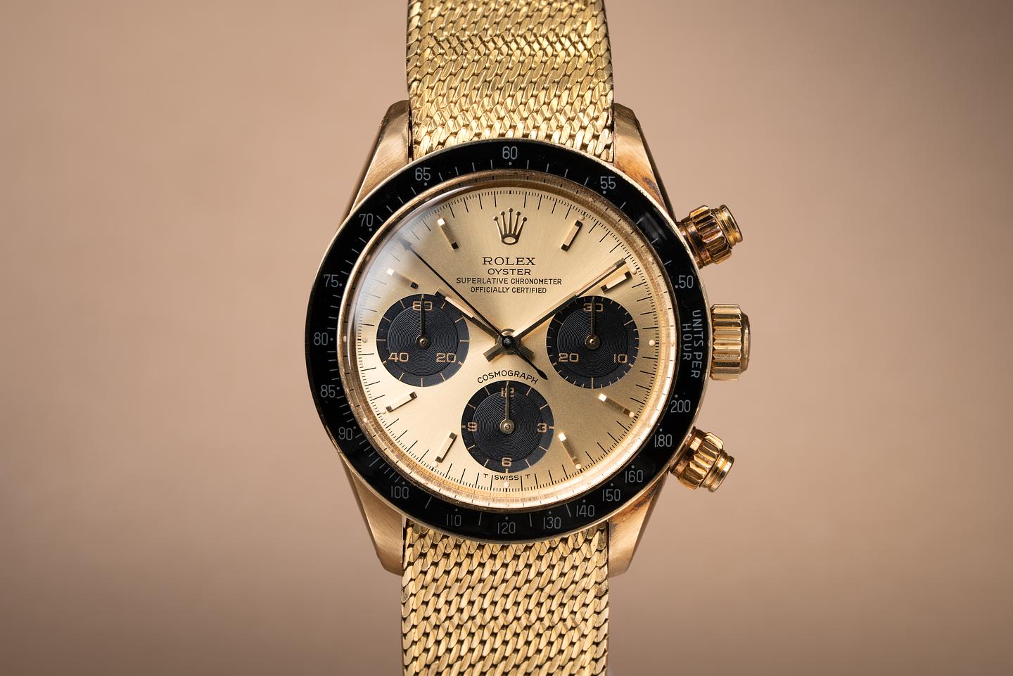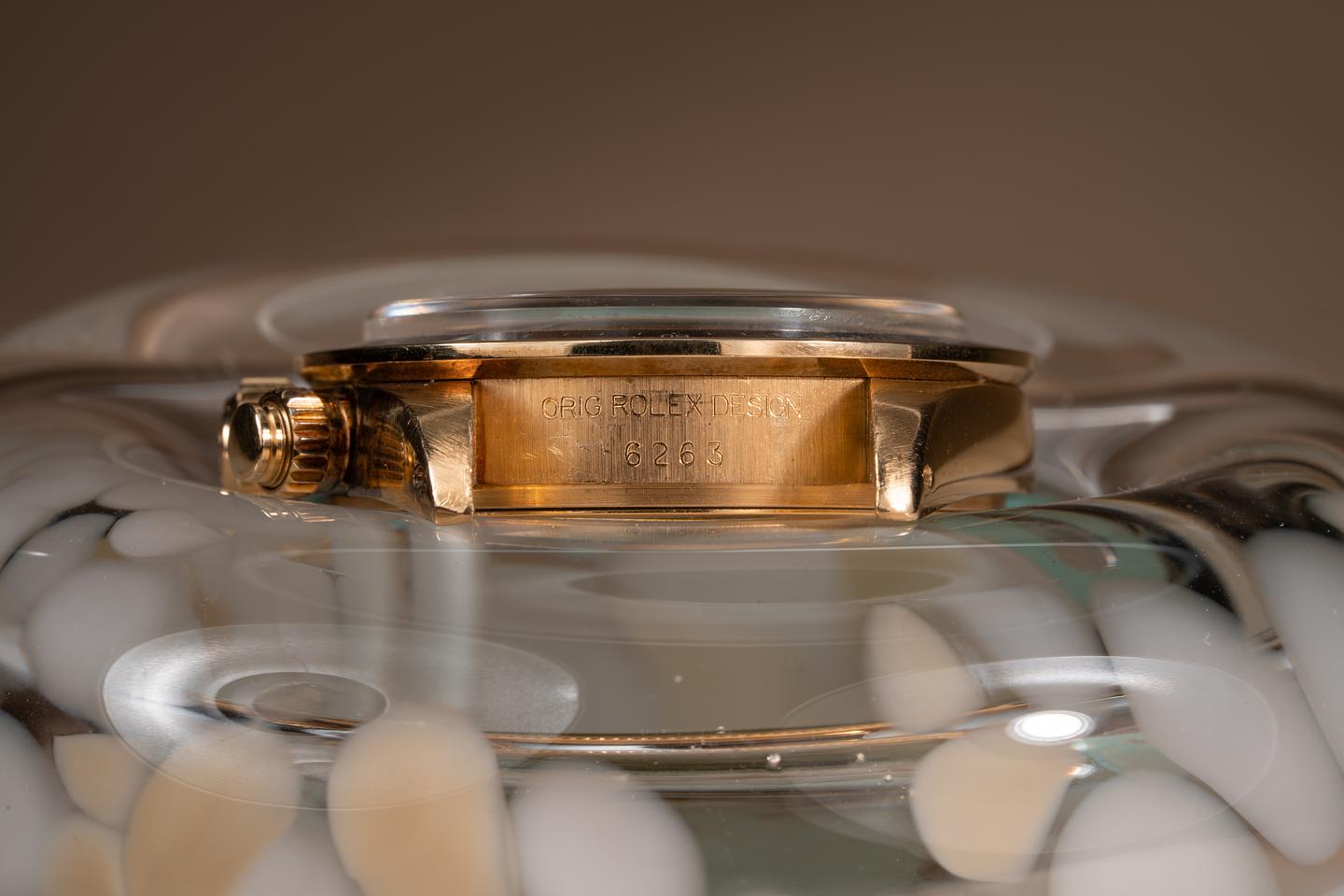 Notes: This 6263 is about as good as it gets. The contrasting black and gold, the near-flawless dial, the creamy intact lume plots, and the phenomenal wavy mesh bracelet.