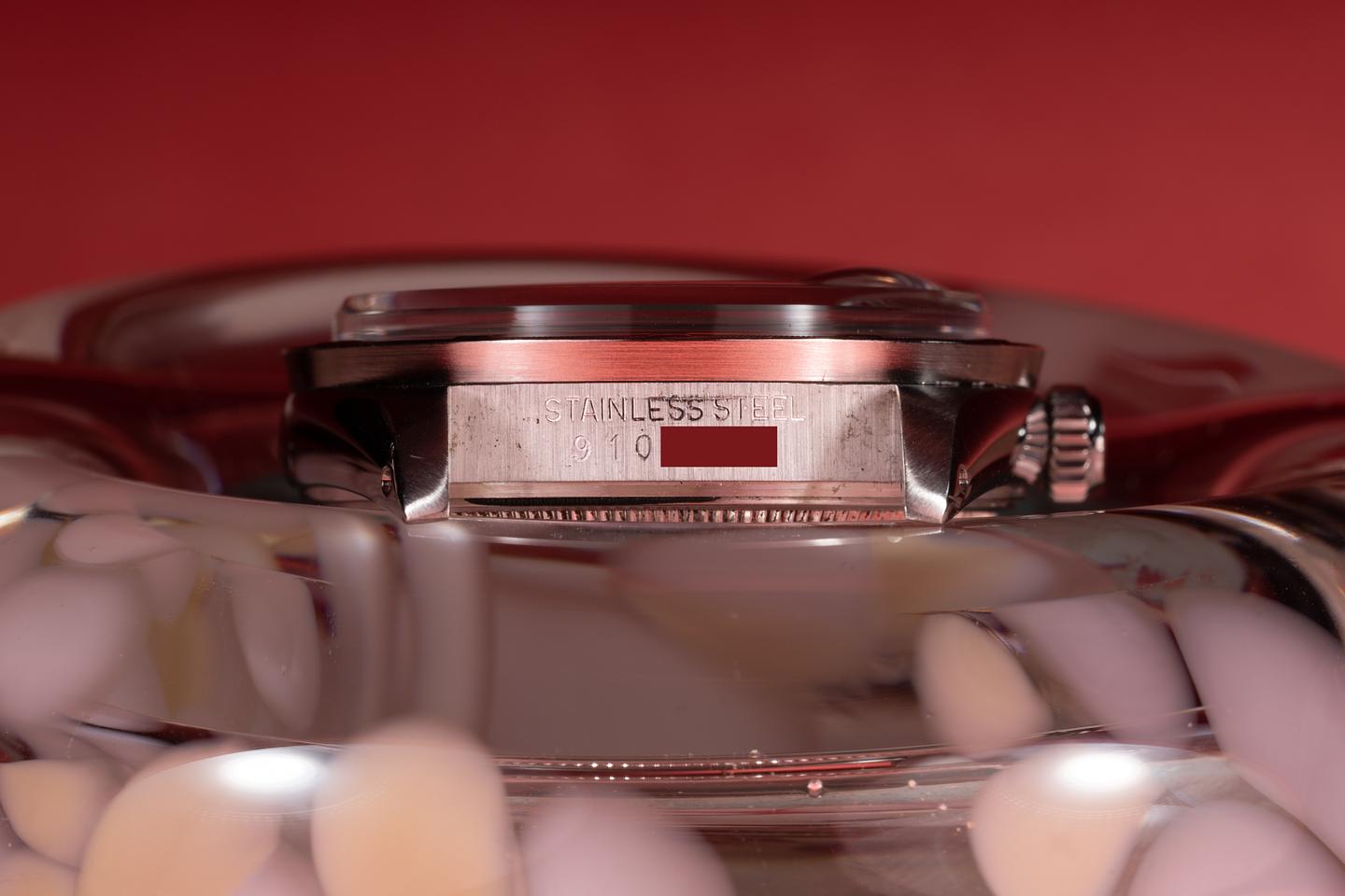 Case: The 34mm case is excellent showing only very light wear from use. The stainless engine turned bezel is also in excellent condition showing only very light wear from use.