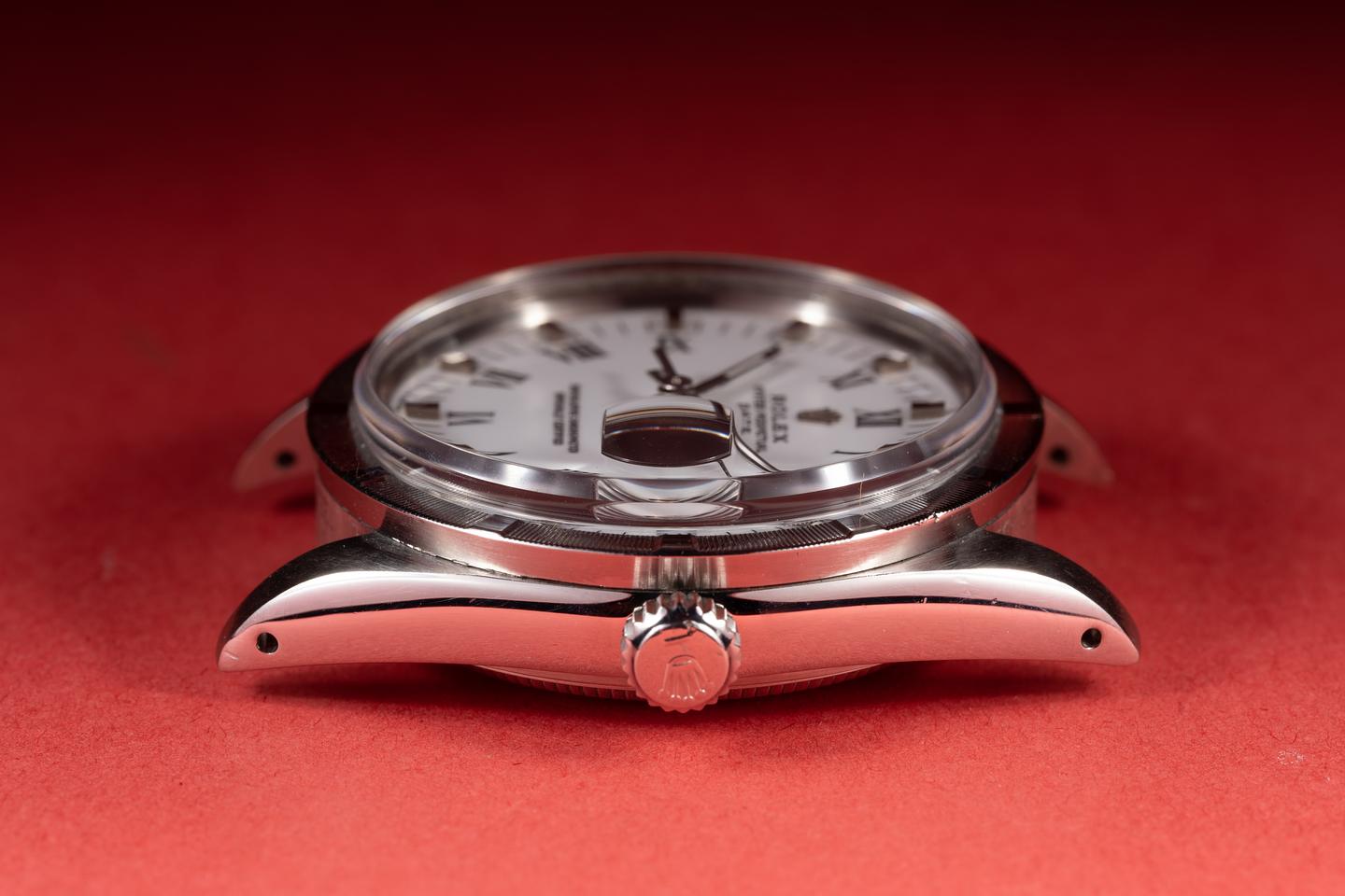 Dial: The white radial Roman numeral dial is excellent showing no visible wear. The lume has aged to a clean creamy hue and the hands match perfectly.