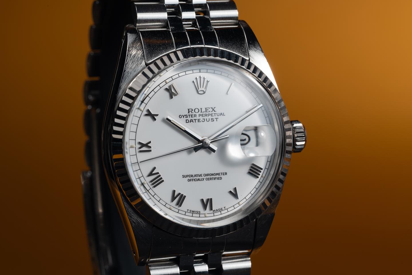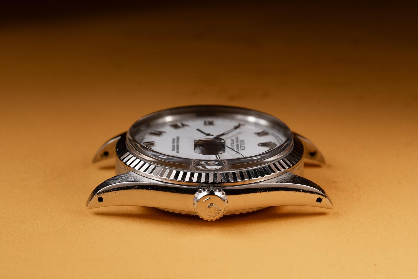 Case: The sharp 36mm case is excellent showing only light wear form use. The sharp 18k white gold case is excellent showing only light wear from use.