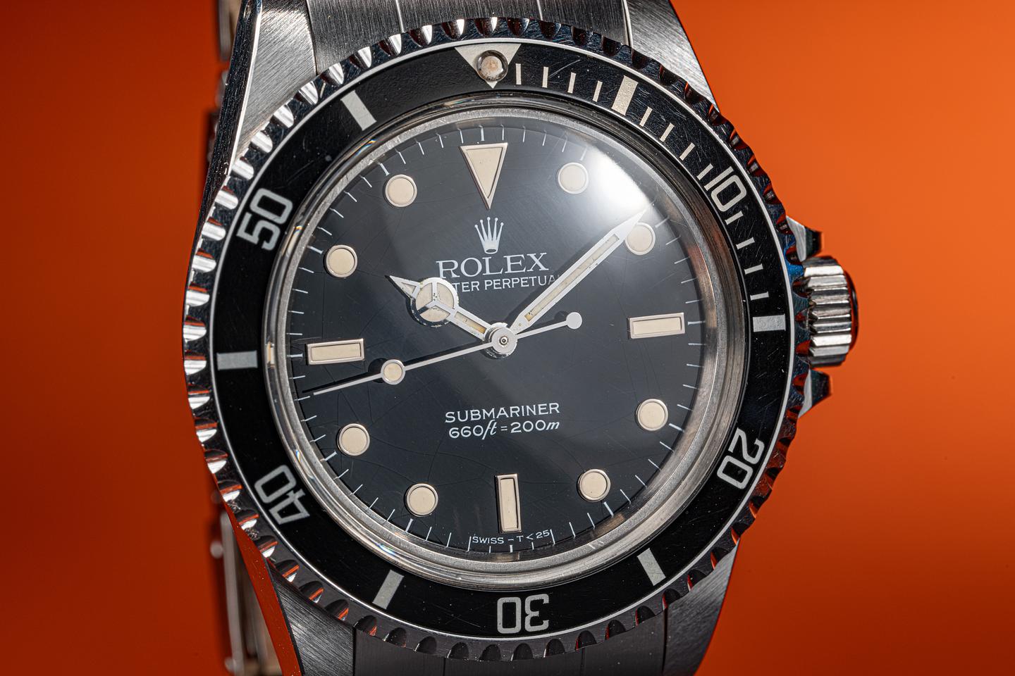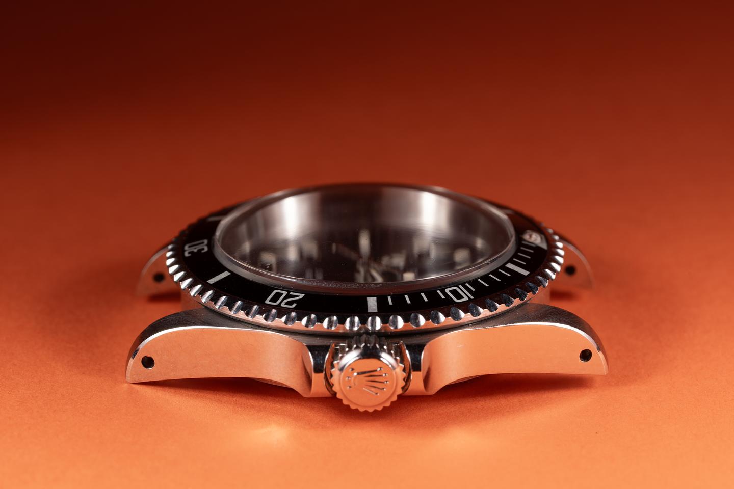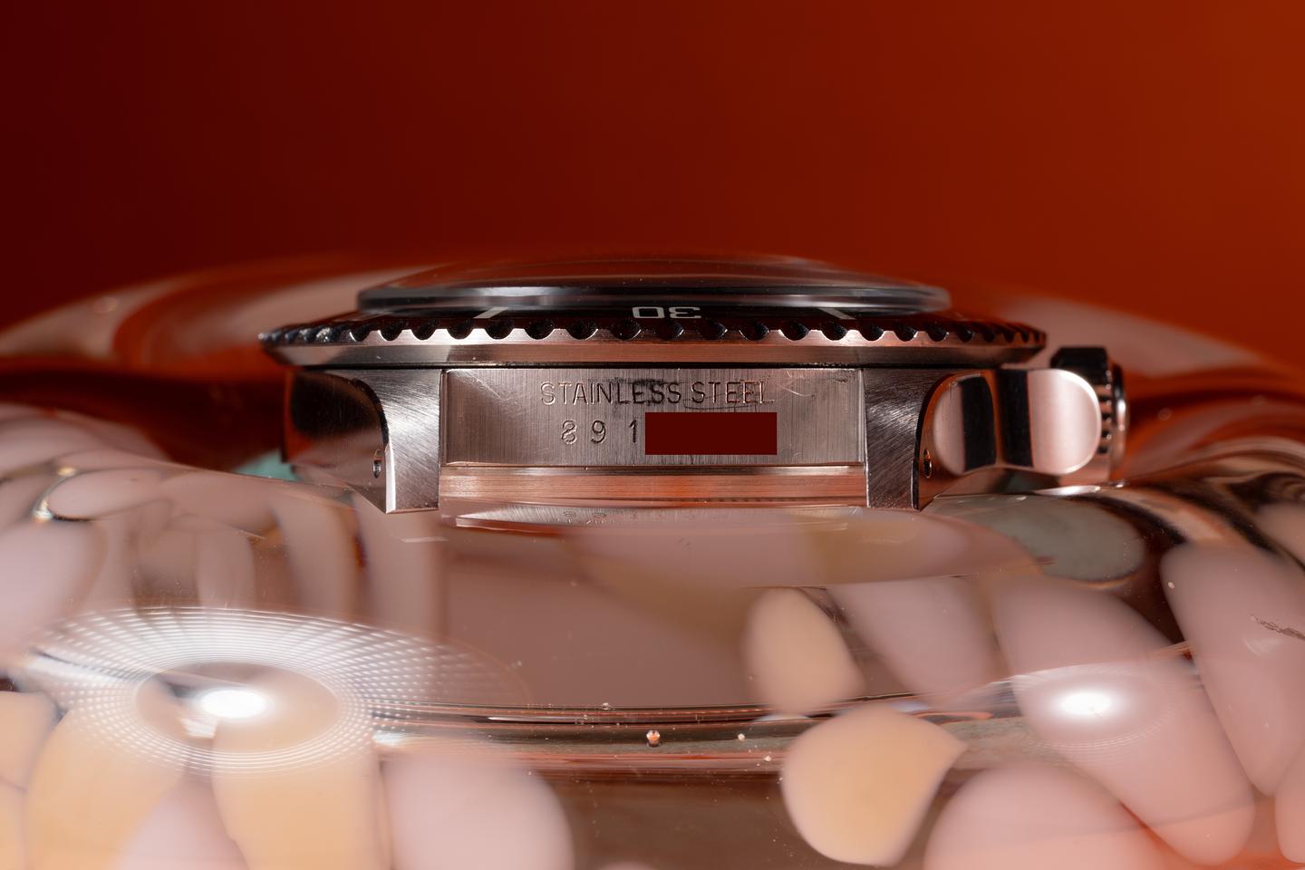 Case: The recently polished case is excellent showing sharp prominent bevels and only very light wear. The black bezel insert is also in excellent condition showing only very light wear from use.