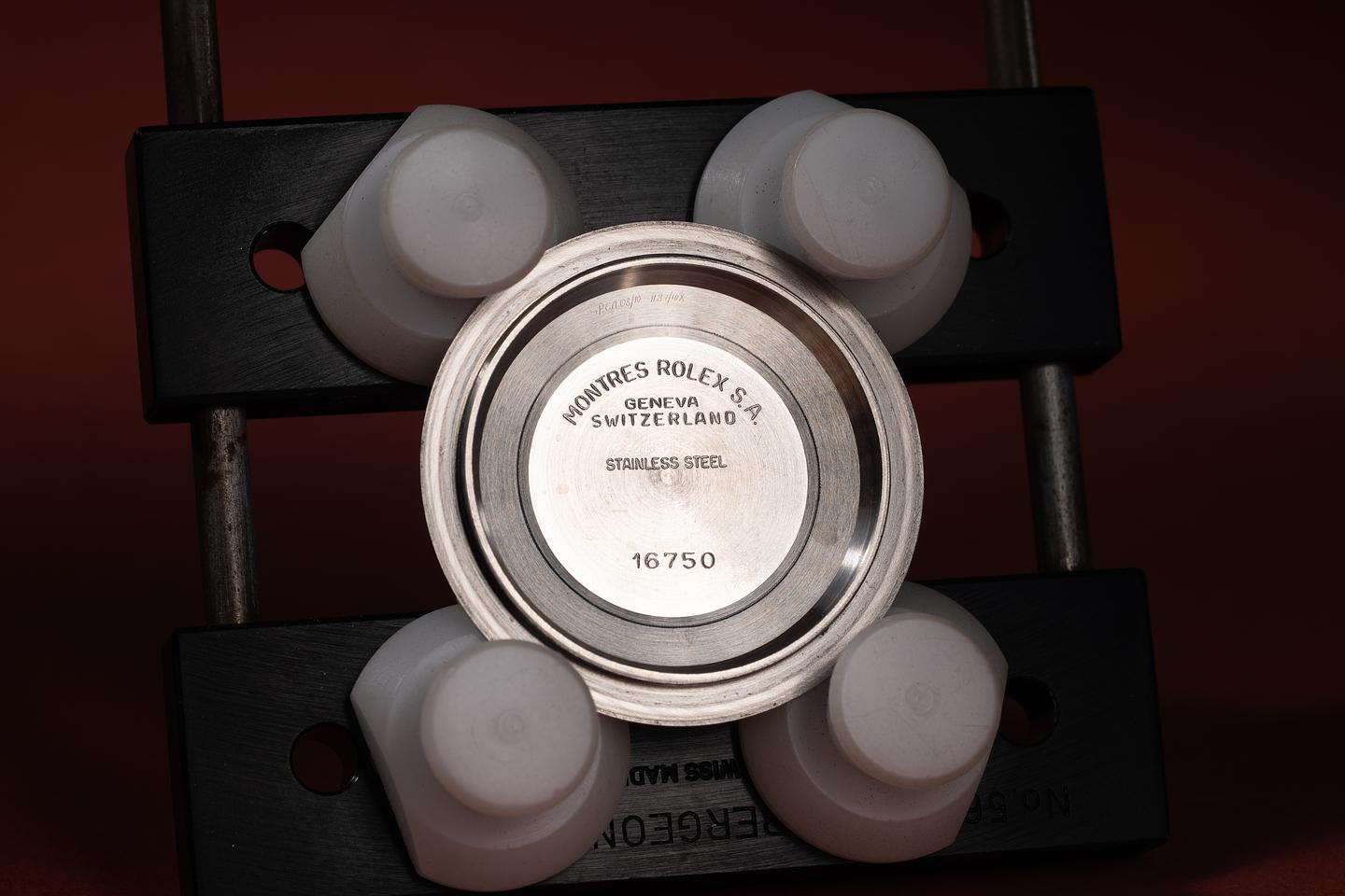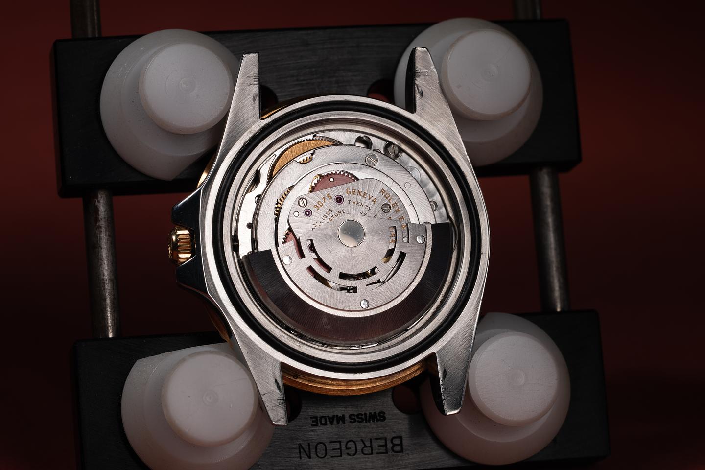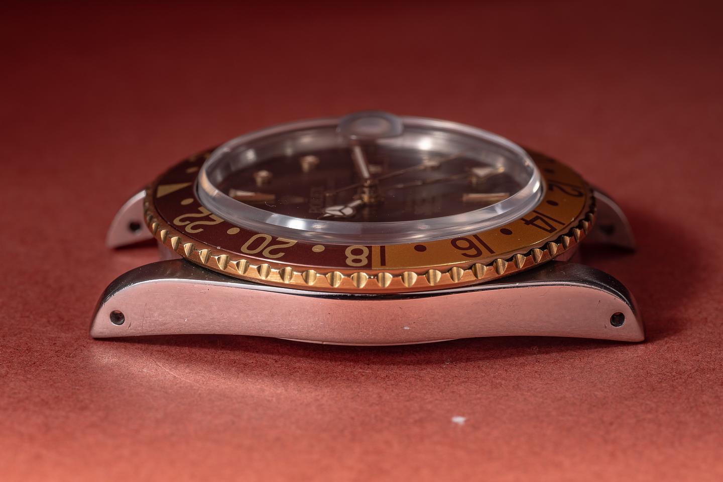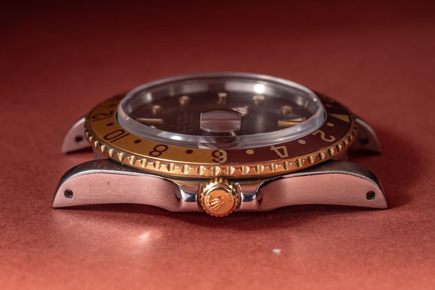 Case: The previously polished case is excellent, showing some light wear from use. The brown & gold bezel insert is also in excellent condition, showing only very light wear from use.