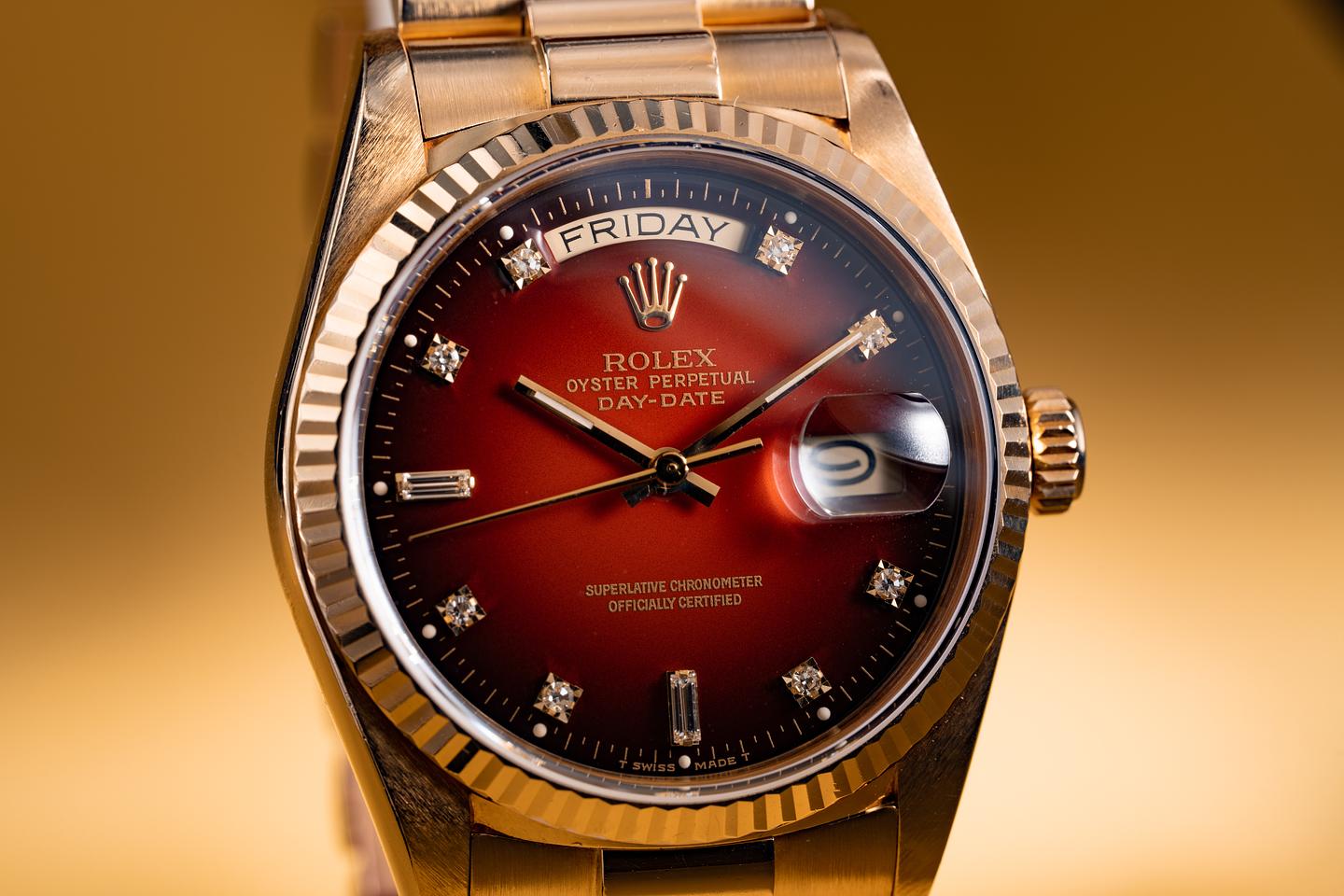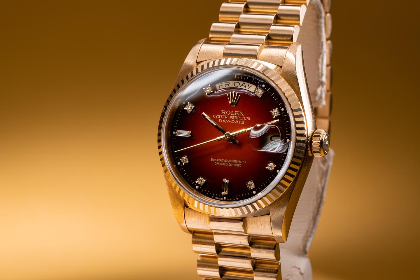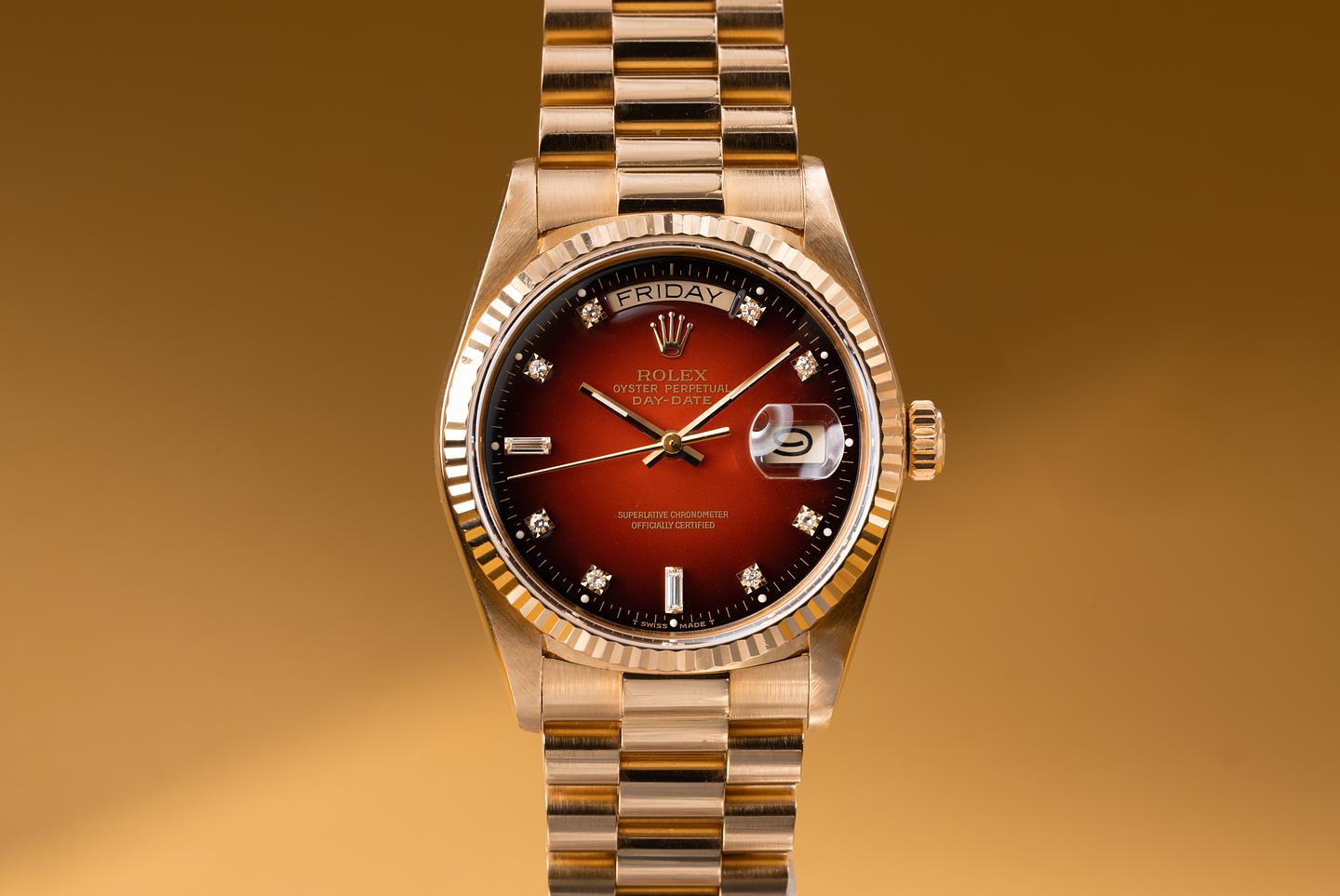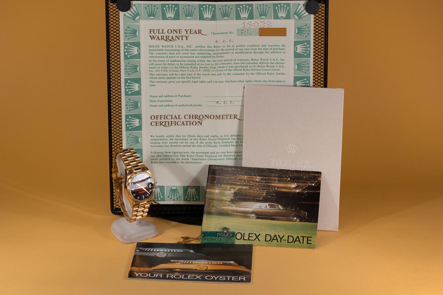 Bracelet: The 22 link 18k yellow gold president bracelet is excellent showing only light stretch for its age.