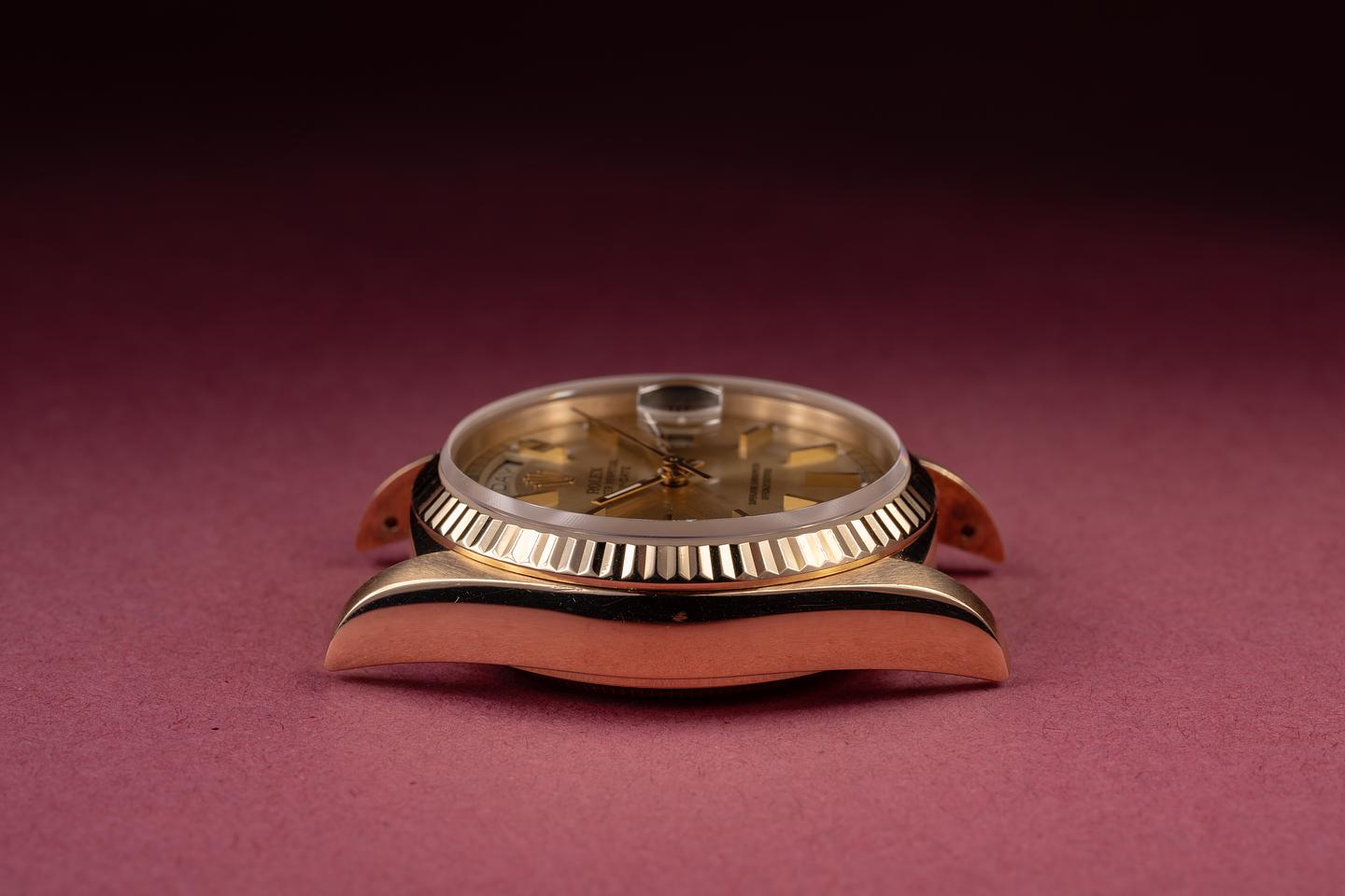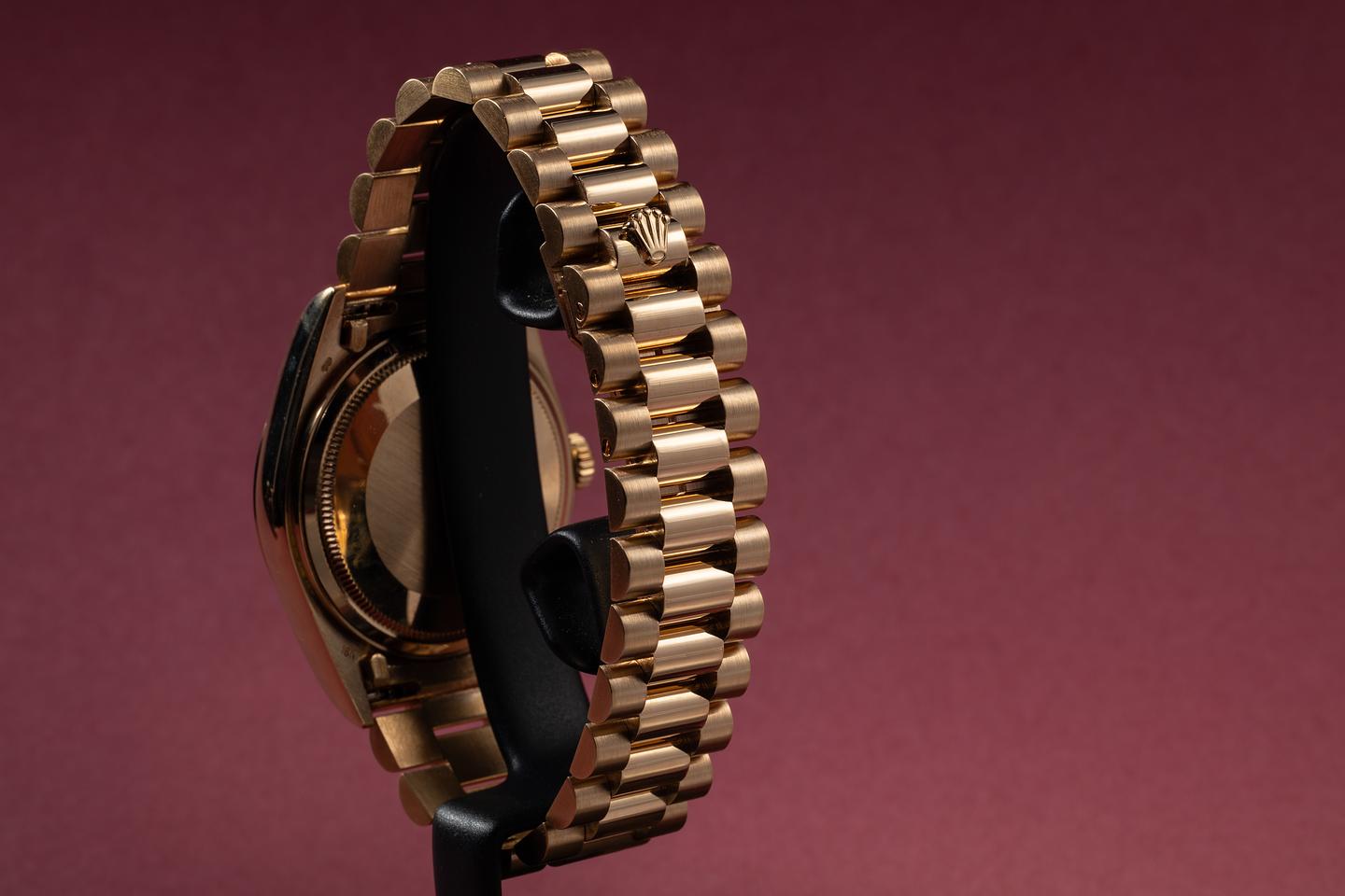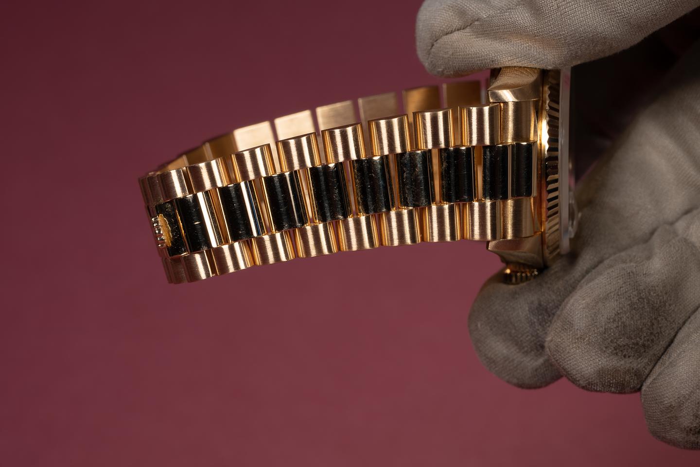 Bracelet: The 22-link 18K yellow gold President bracelet is excellent, showing only very light stretch for its age.