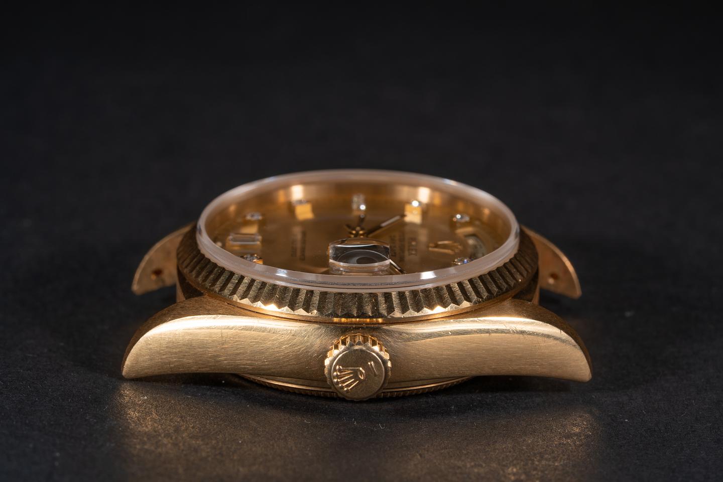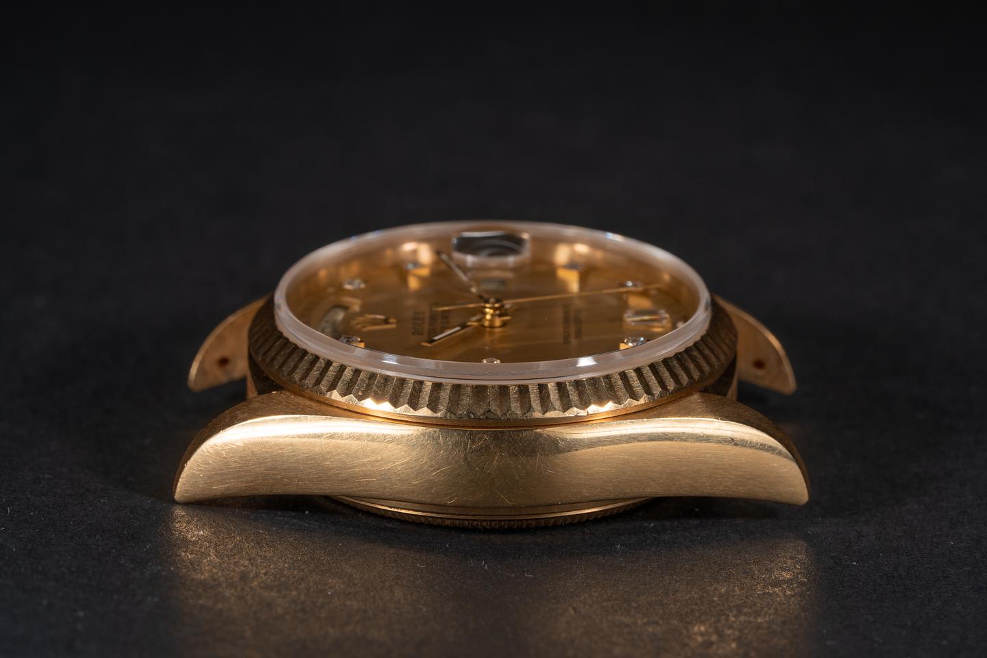 Case: The 18k yellow gold case is excellent showing only light wear from use. The 18k yellow gold fluted bezel is also in excellent condition showing only light wear from use.