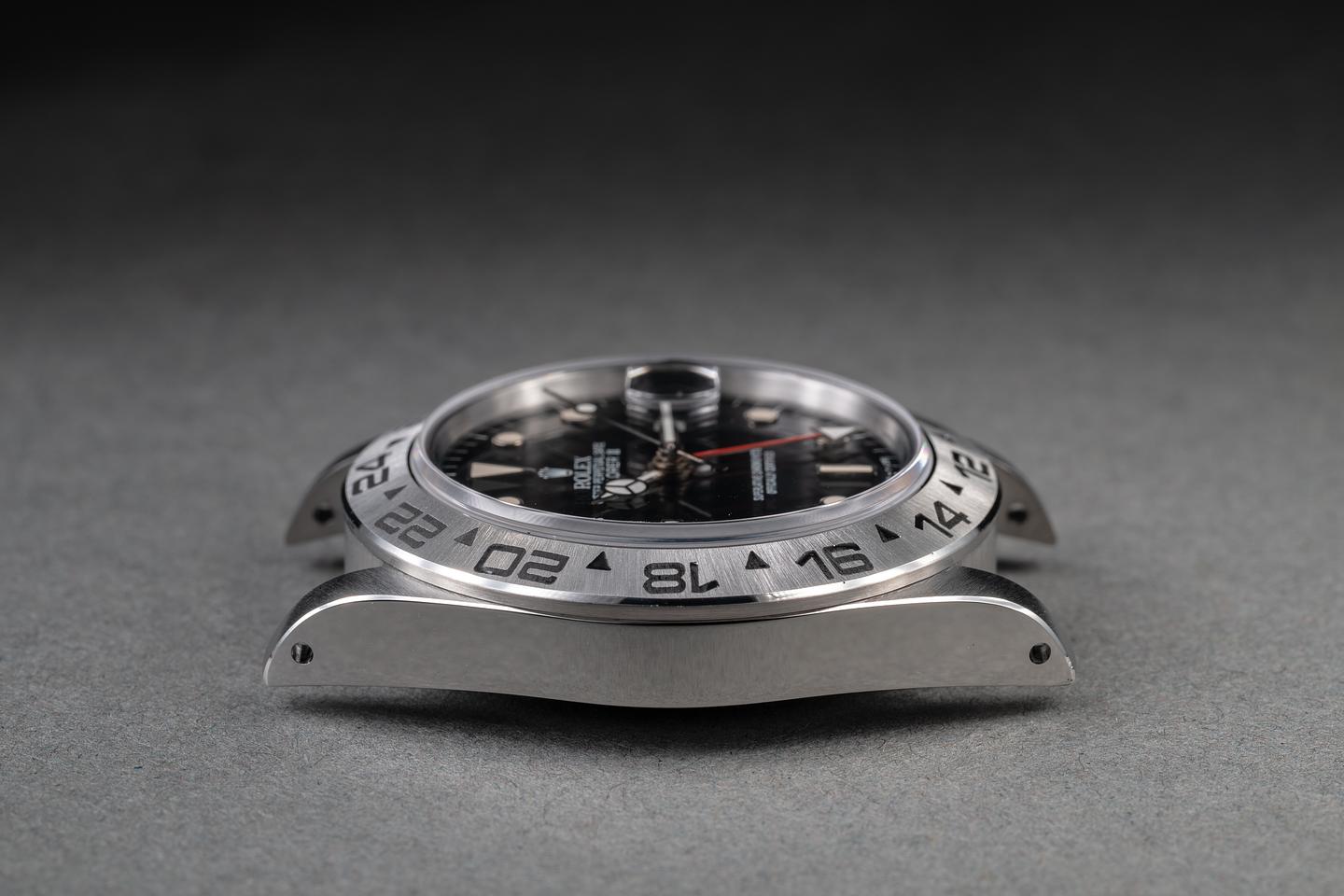 Case: The recently polished case is excellent, showing sharp, prominent bevels and only extremely light wear. The stainless bezel is also freshly polished, showing only extremely light wear.