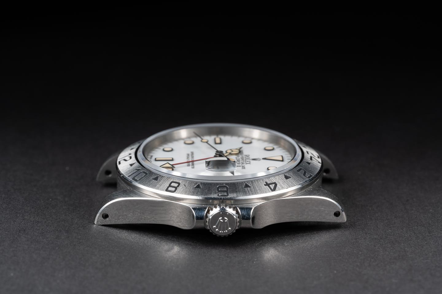 Case: The thick and even case is excellent showing sharp prominent bevels and only very light wear. The stainless bezel is also in excellent condition showing a sharp well defined sunburst finish and only very light wear.