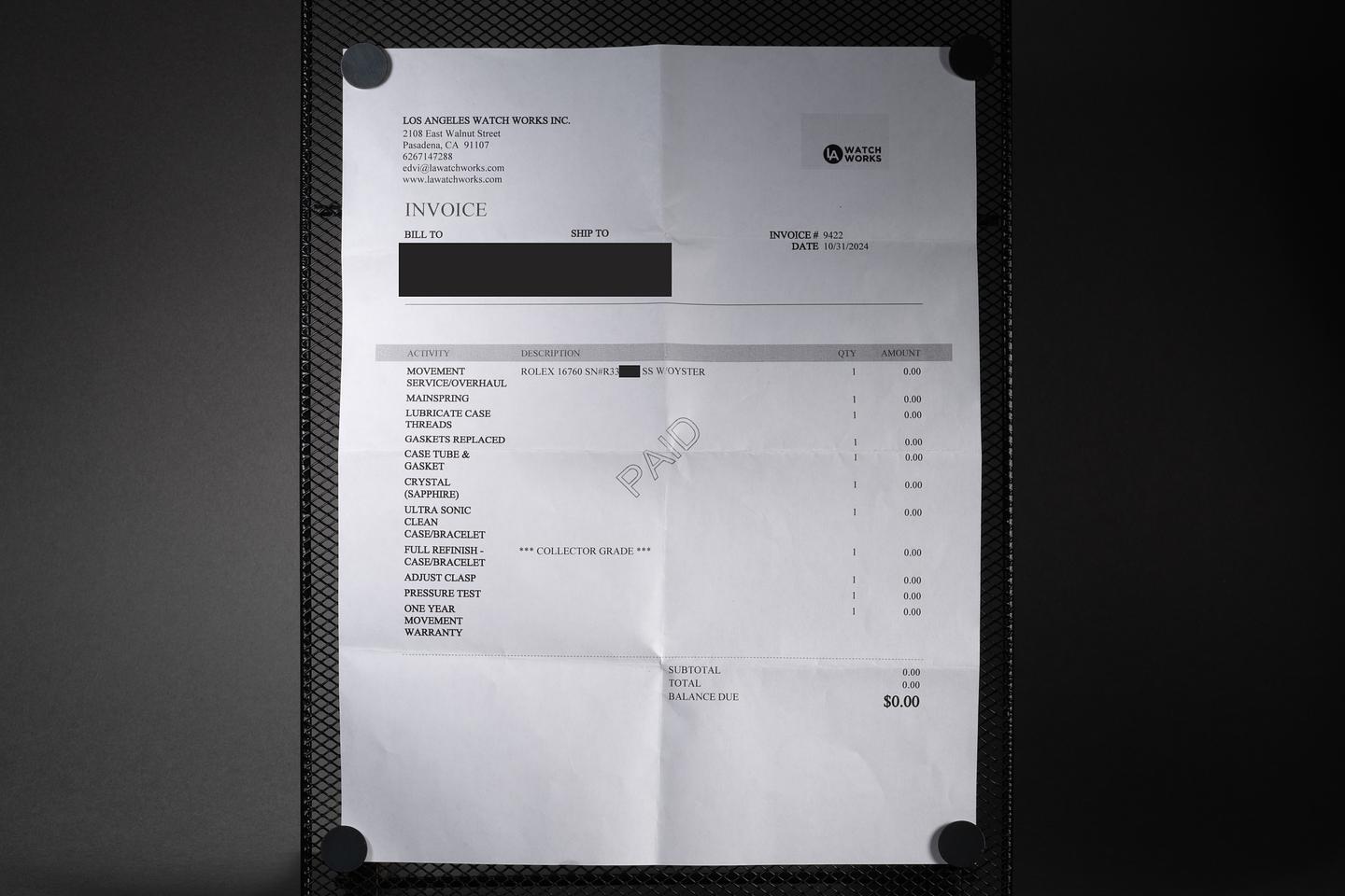 Accessories: Service papers.