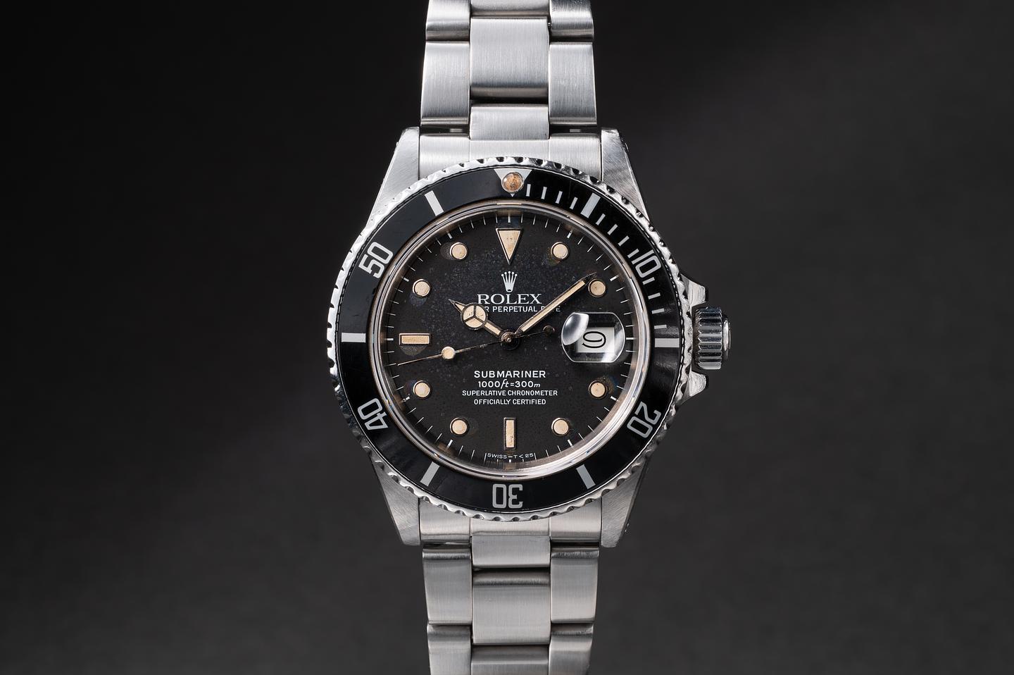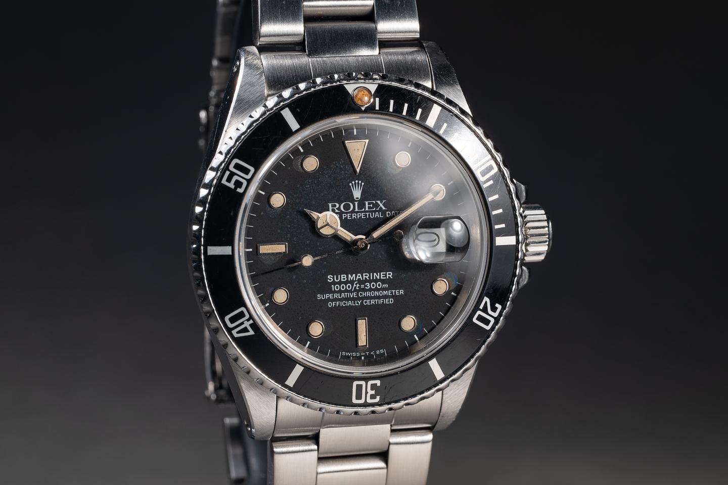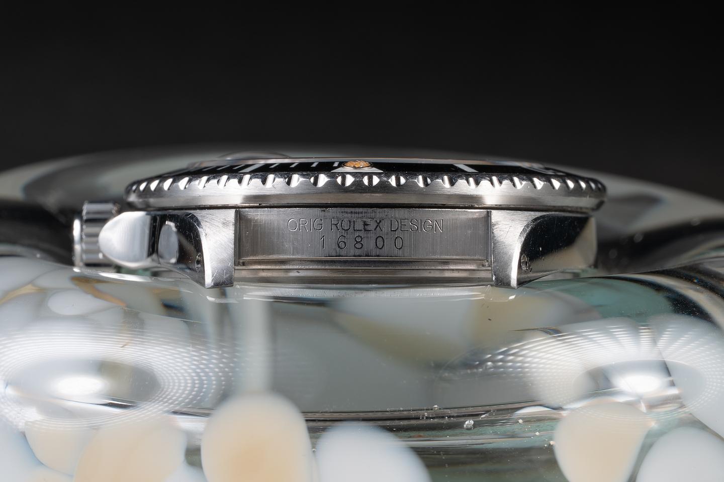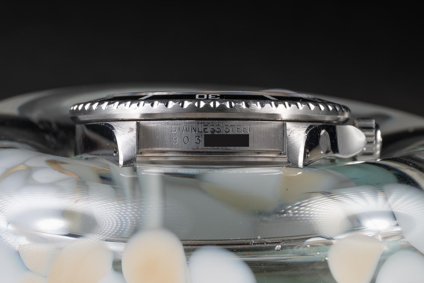 Case: The previously polished case is very good, showing wide, sharp, prominent bevels and some light wear from use. The black bezel insert is also in excellent condition, showing only light wear from use.