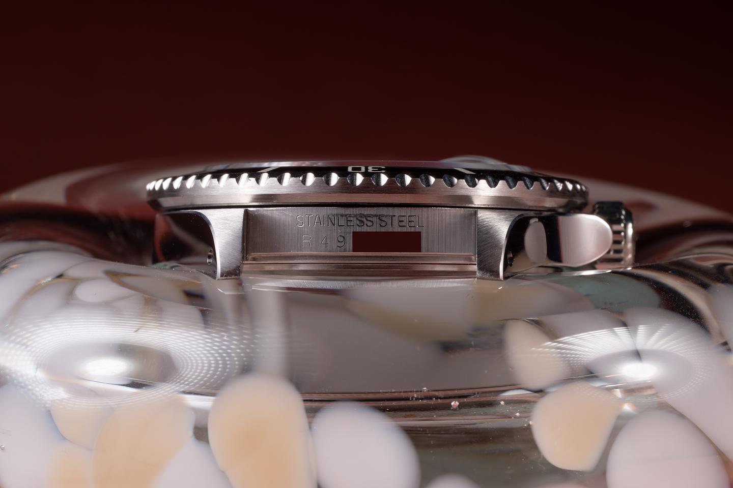 Case: The recently polished case is excellent, showing sharp bevels and only very light wear. The Black bezel insert is also in excellent condition, showing only light wear from use.