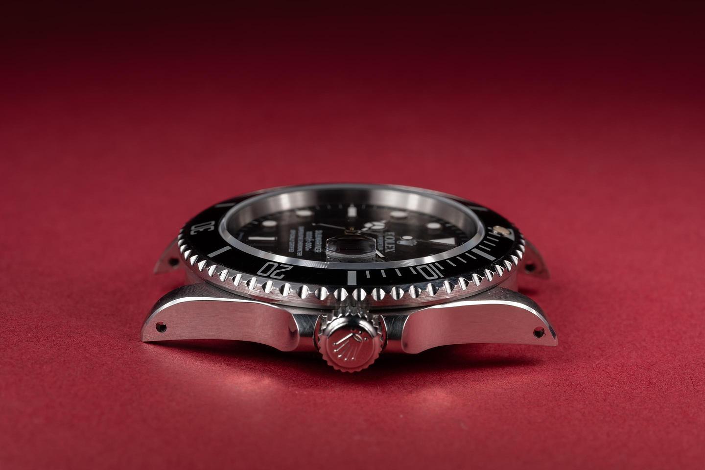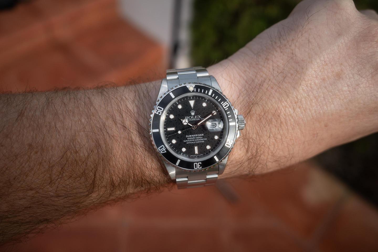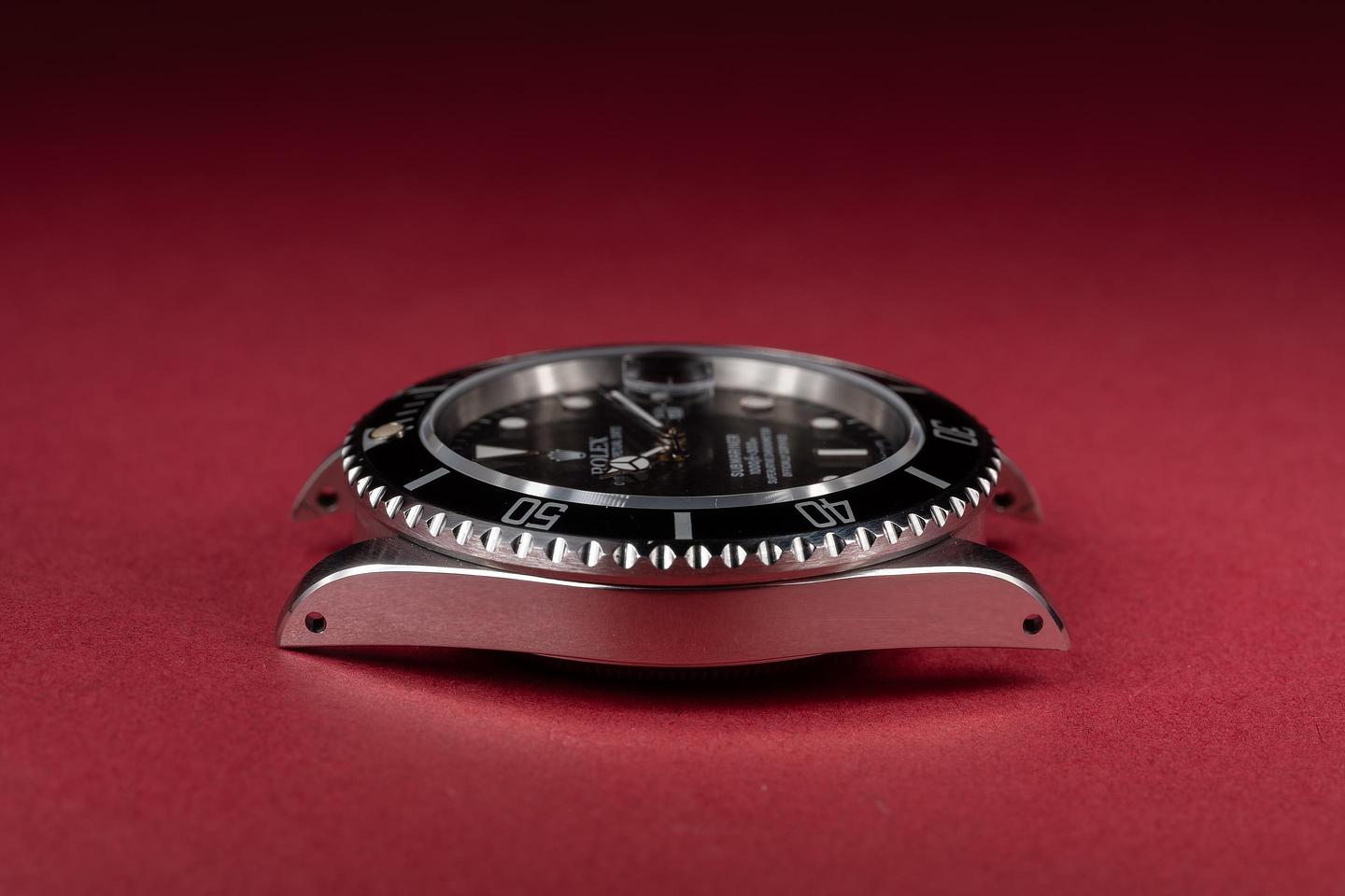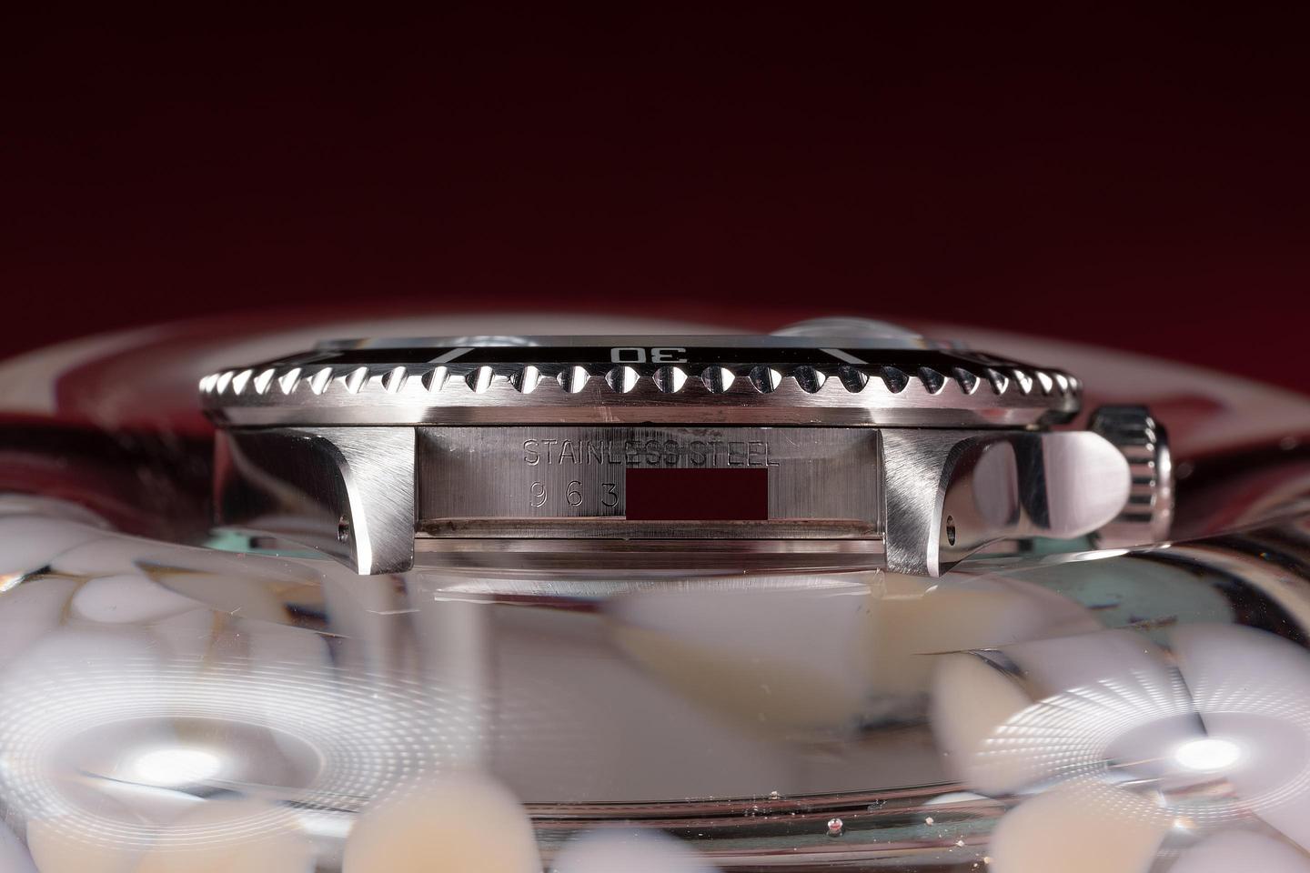 Case: The recently polished case is excellent, showing sharp, prominent bevels and only very light wear from use. The black bezel insert is also in excellent condition, showing only light wear.