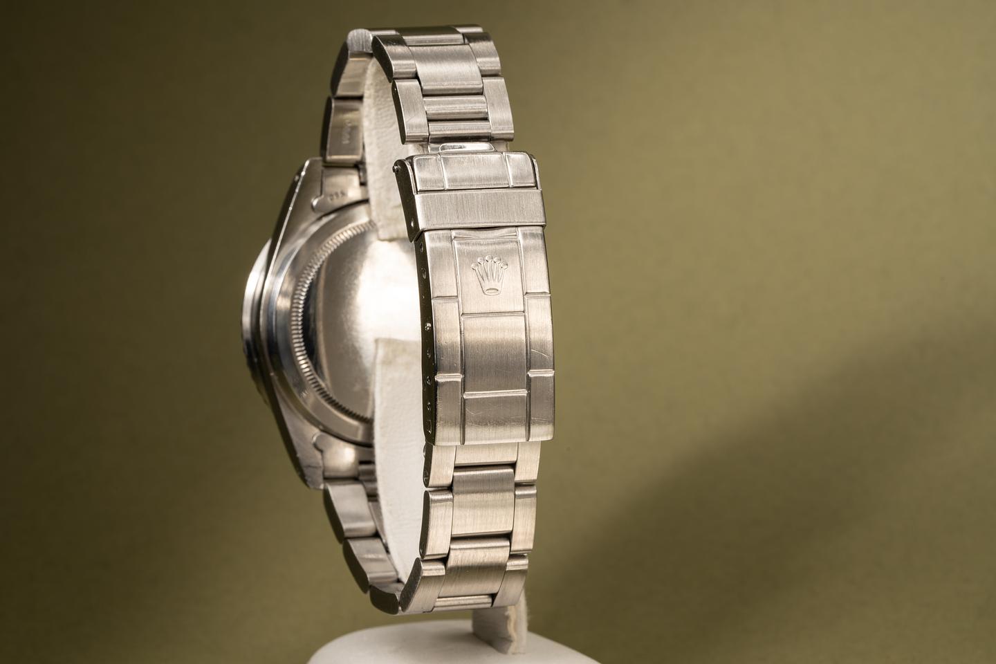 Bracelet: The 11 link 93150 oyster bracelet is in excellent condition and has light stretch for its age. The clasp is stamped with a 1985 date code.