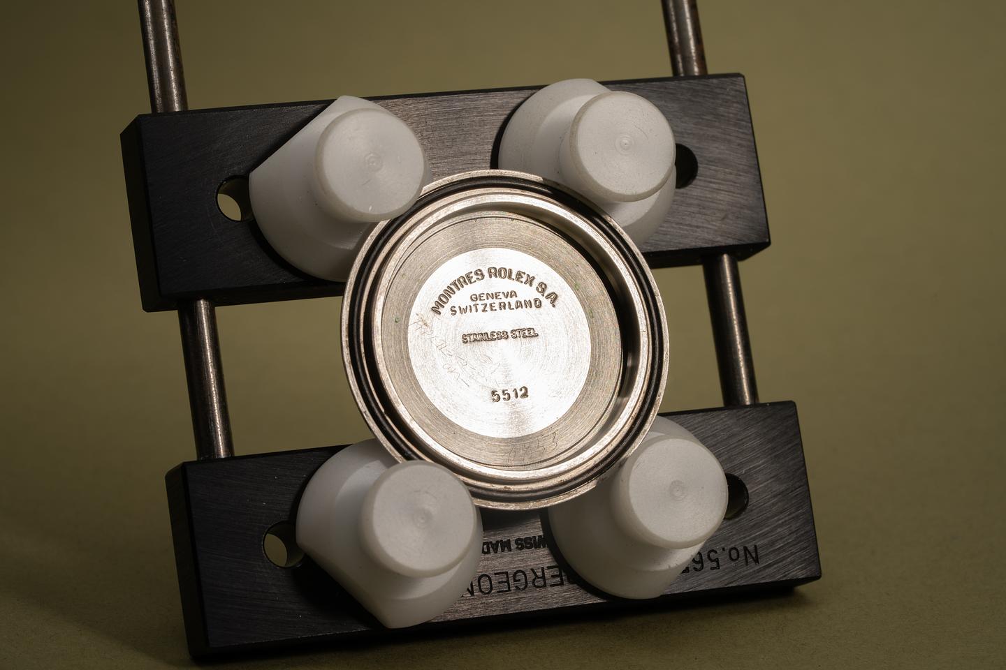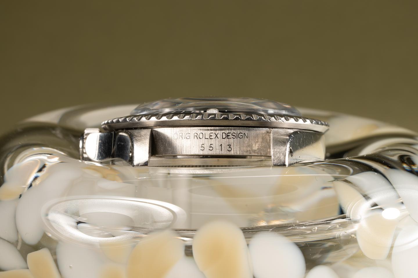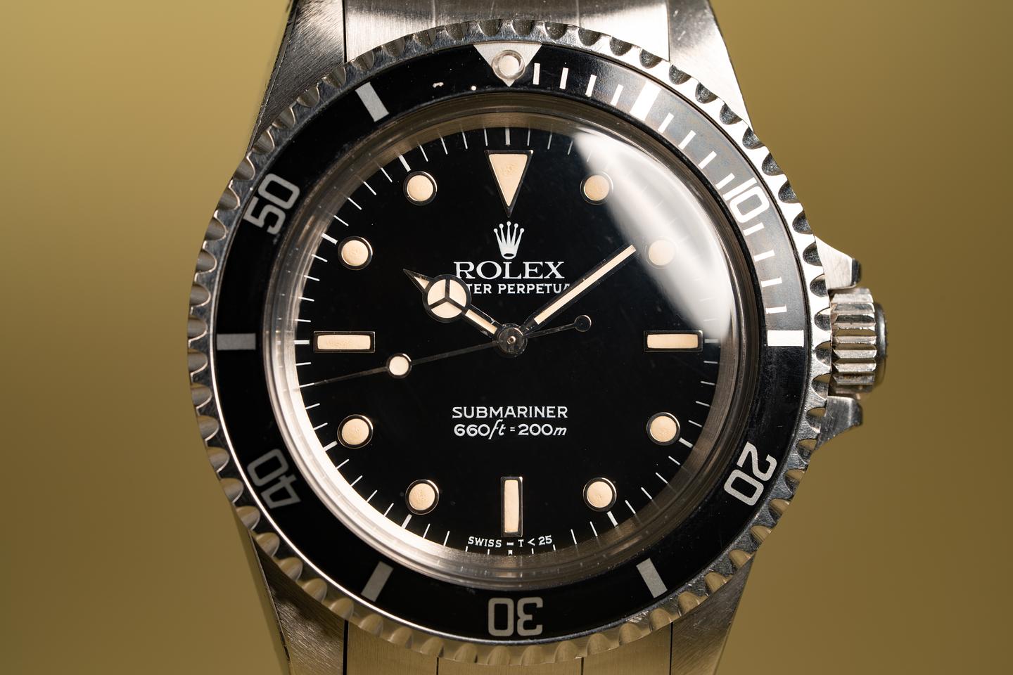 Case: Excellent case with sharp prominent bevels. The black bezel insert is also in excellent condition and shows light wear from use.