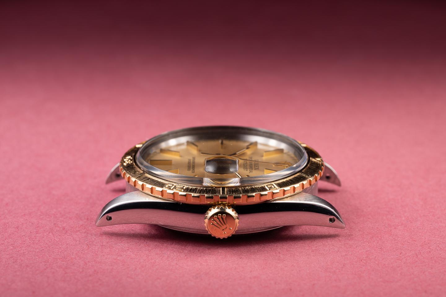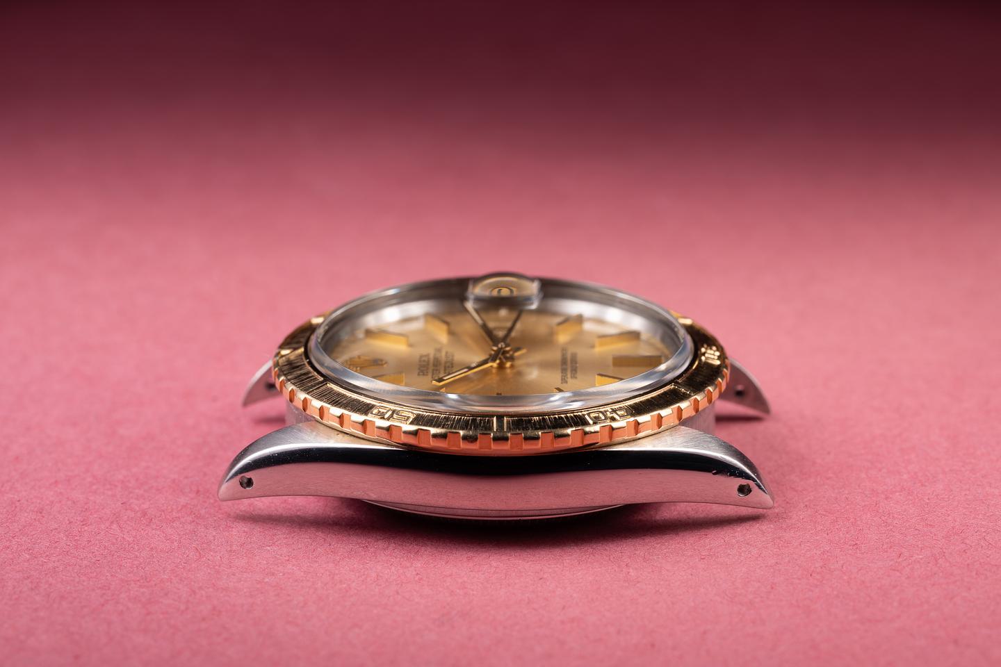 Case: The previously polished case is very good, showing some light wear from use. The 18K yellow gold bezel is also in very good condition, showing some light wear from use.