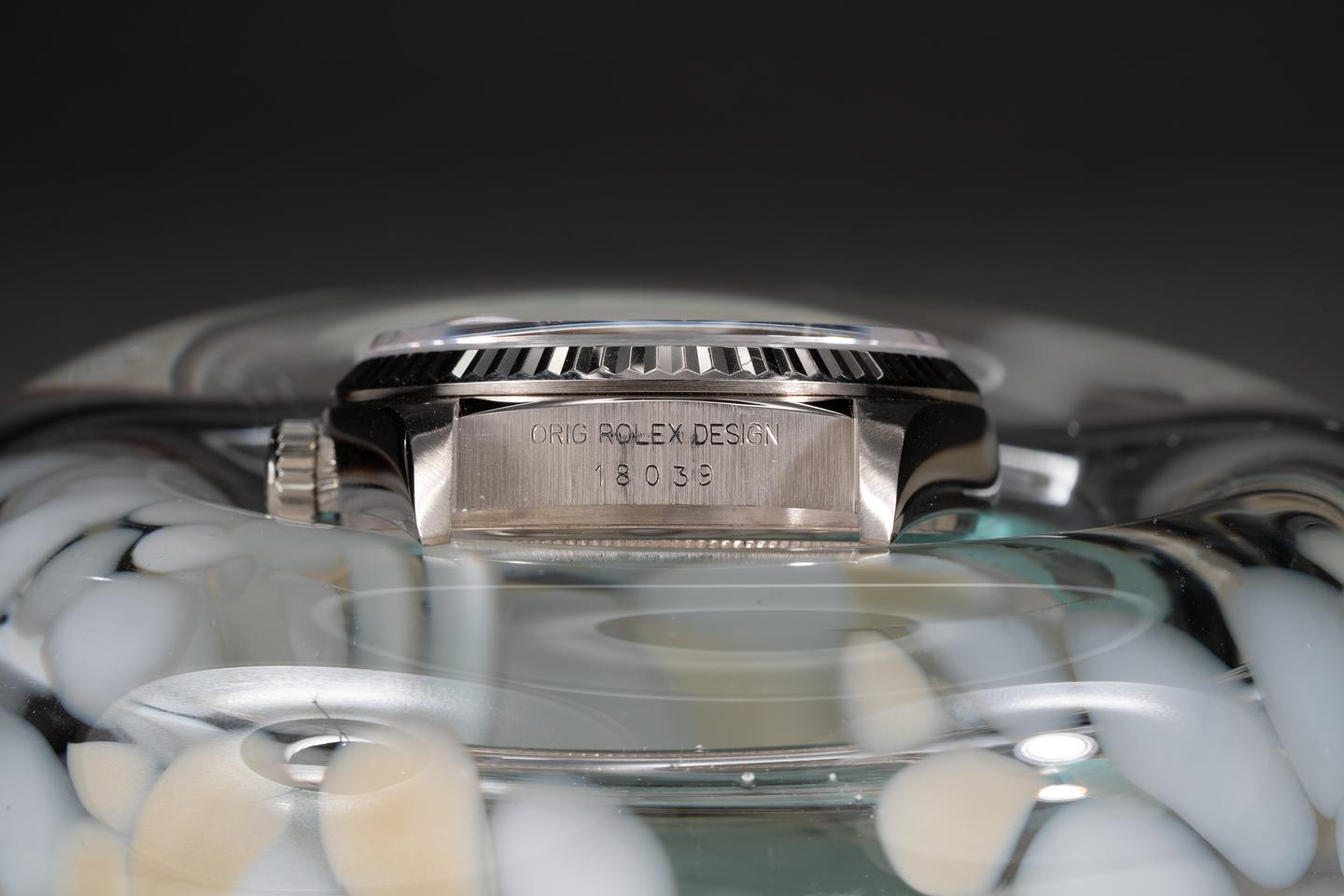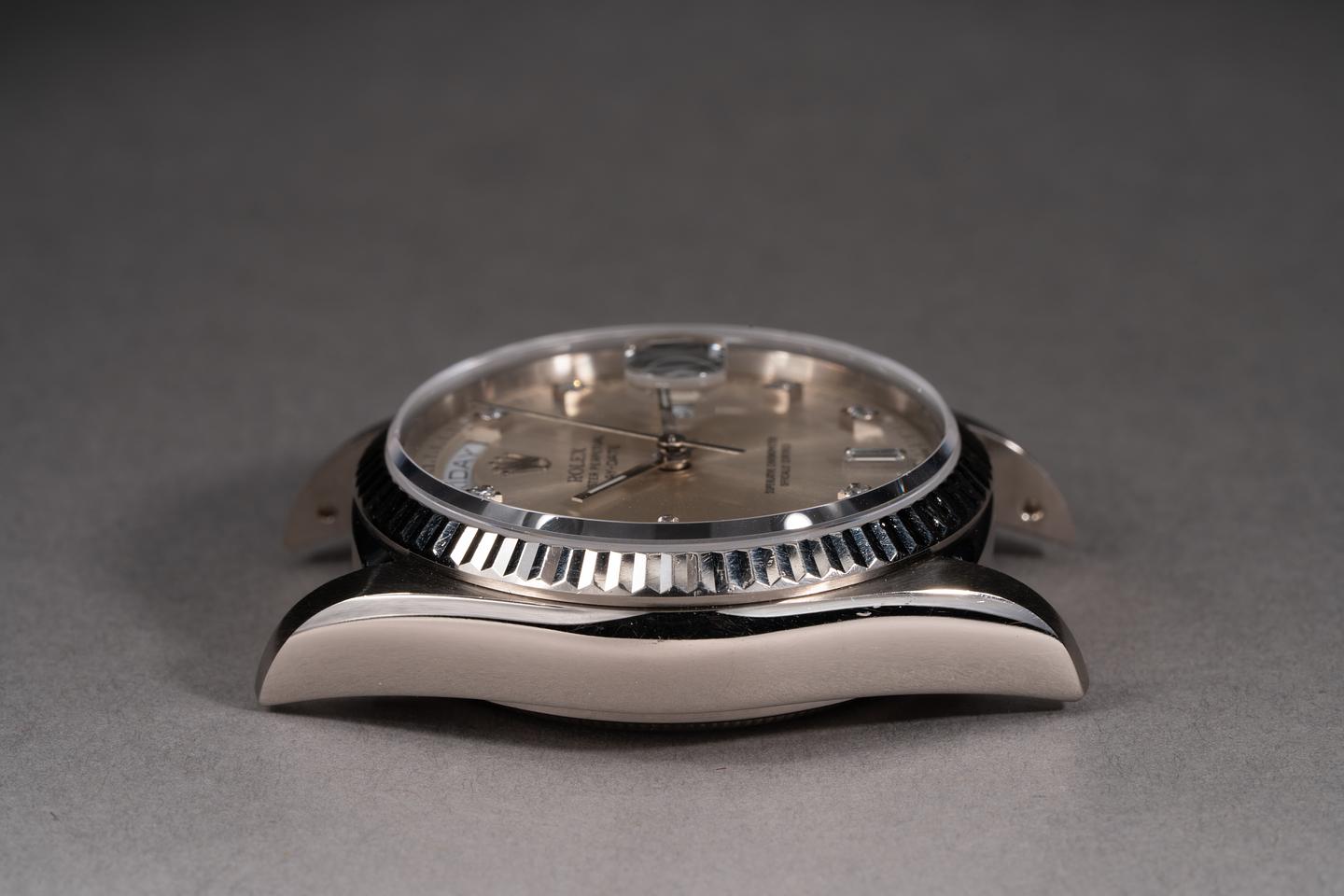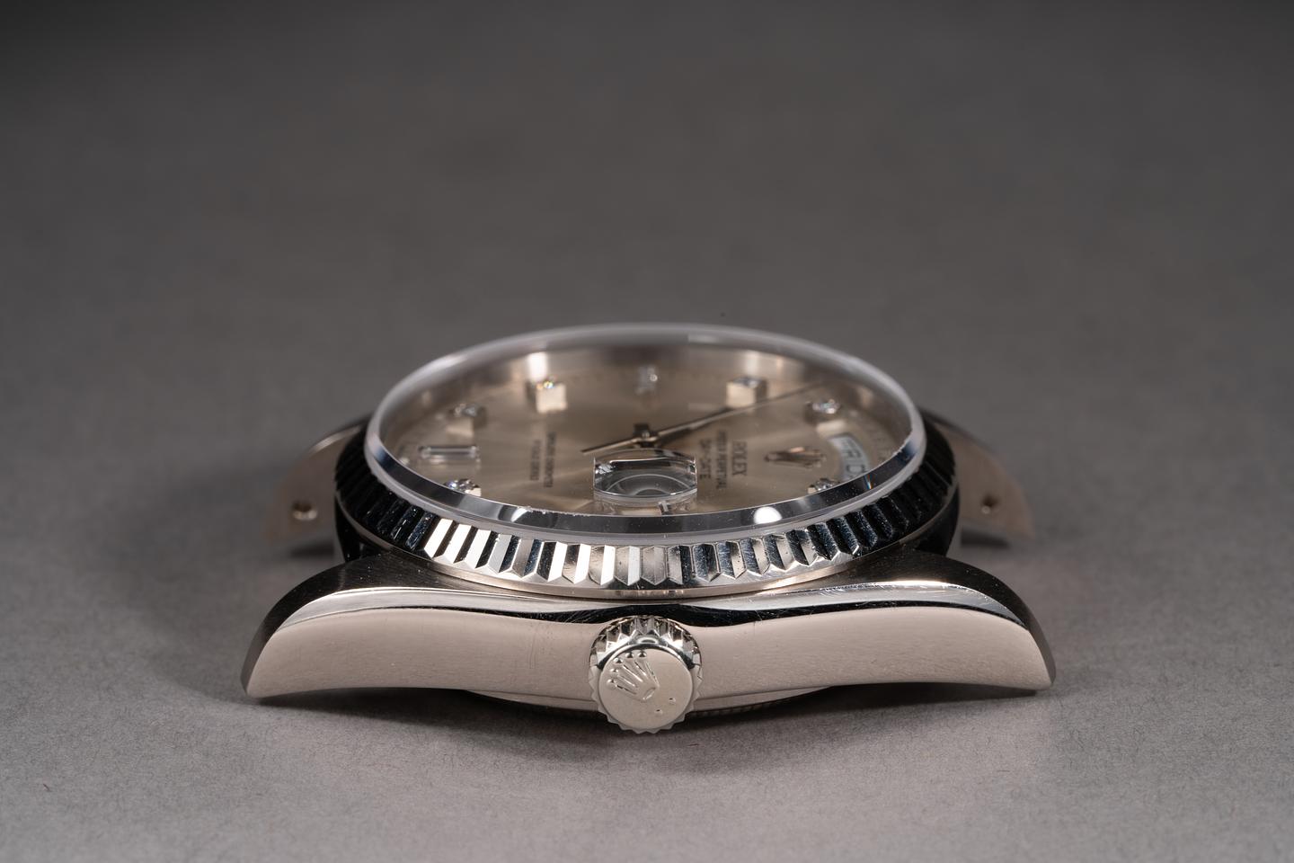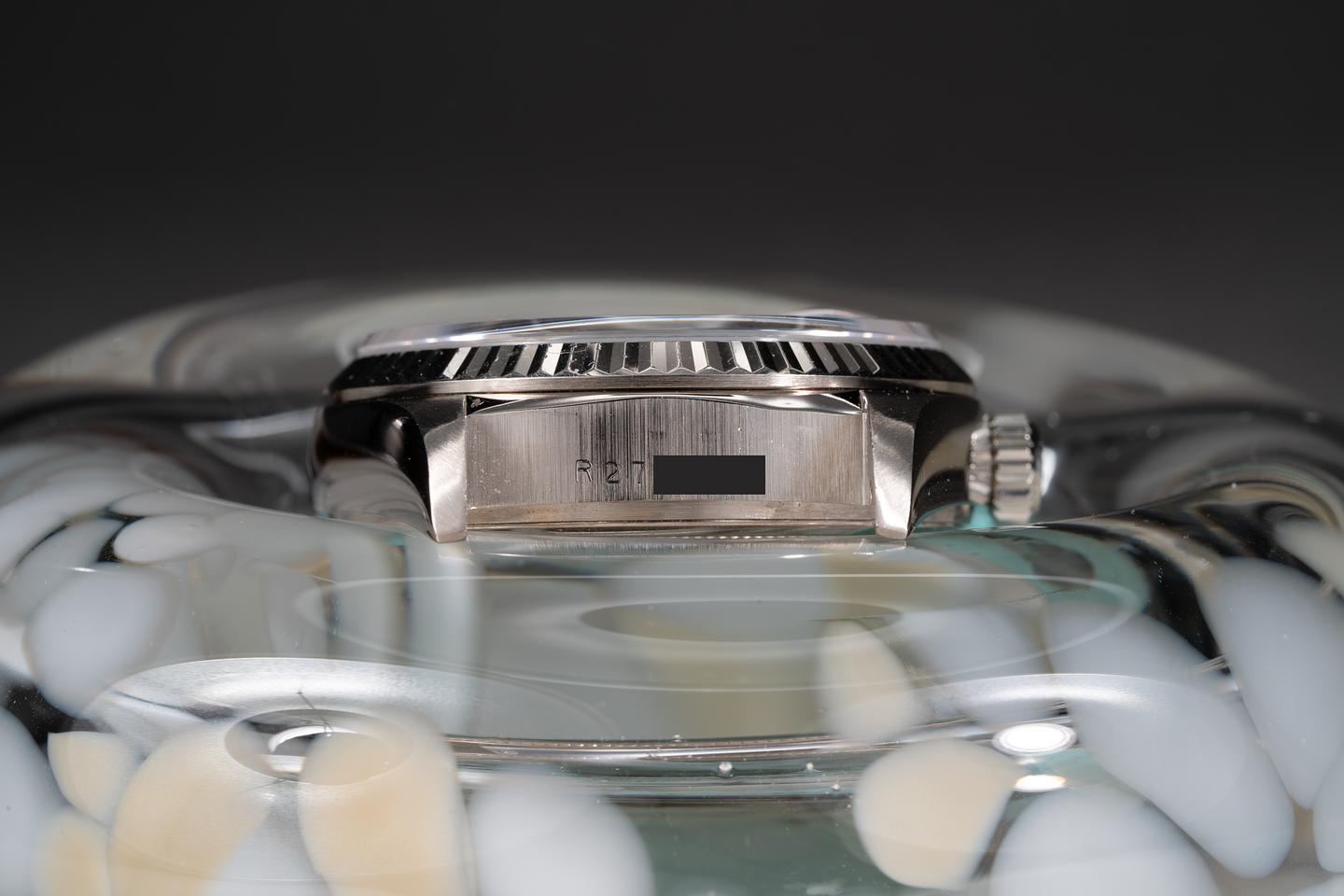 Case: The 18k white gold case is excellent showing only very light wear from use. The sharp 18k white gold fluted bezel is also in excellent condition showing only light wear.