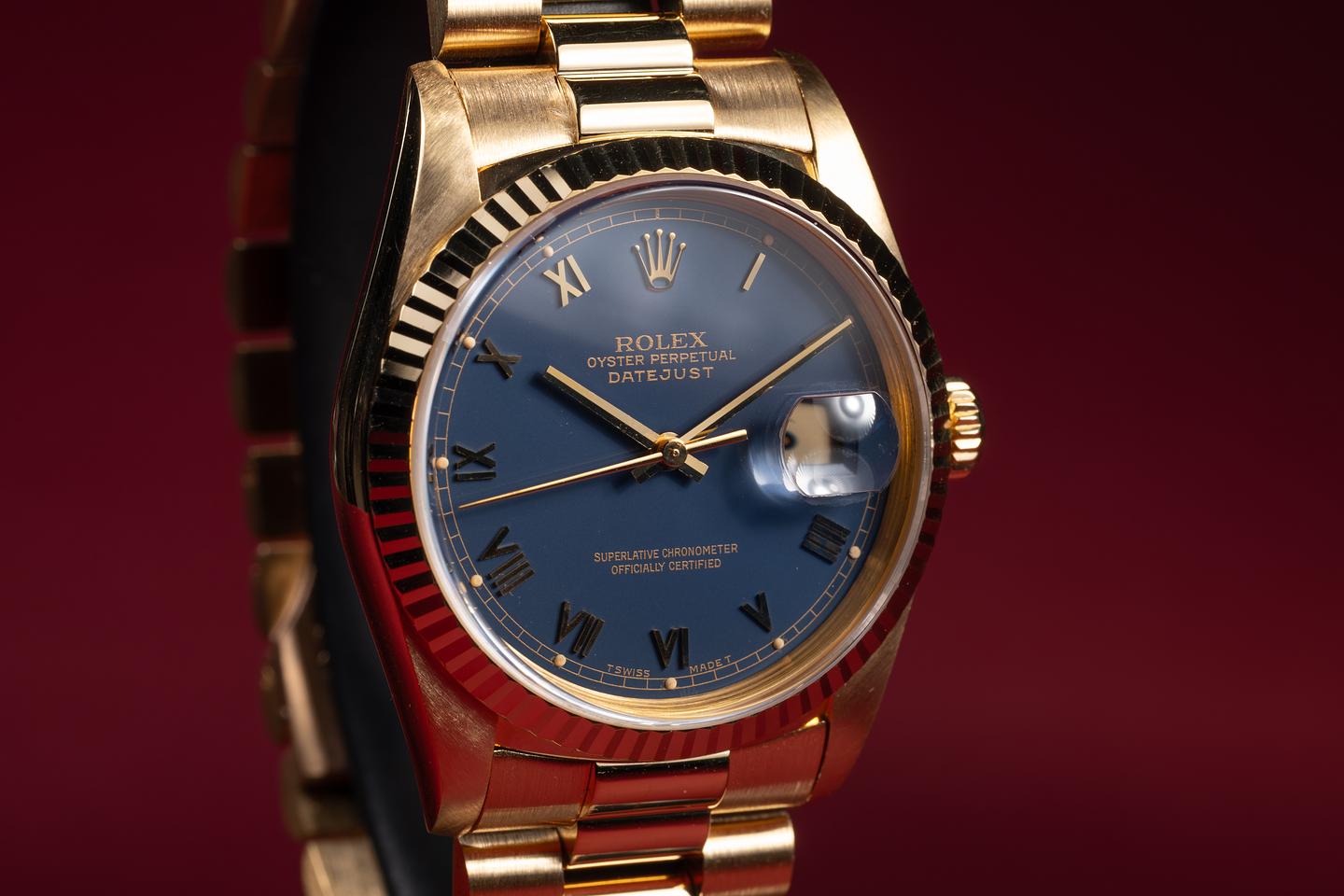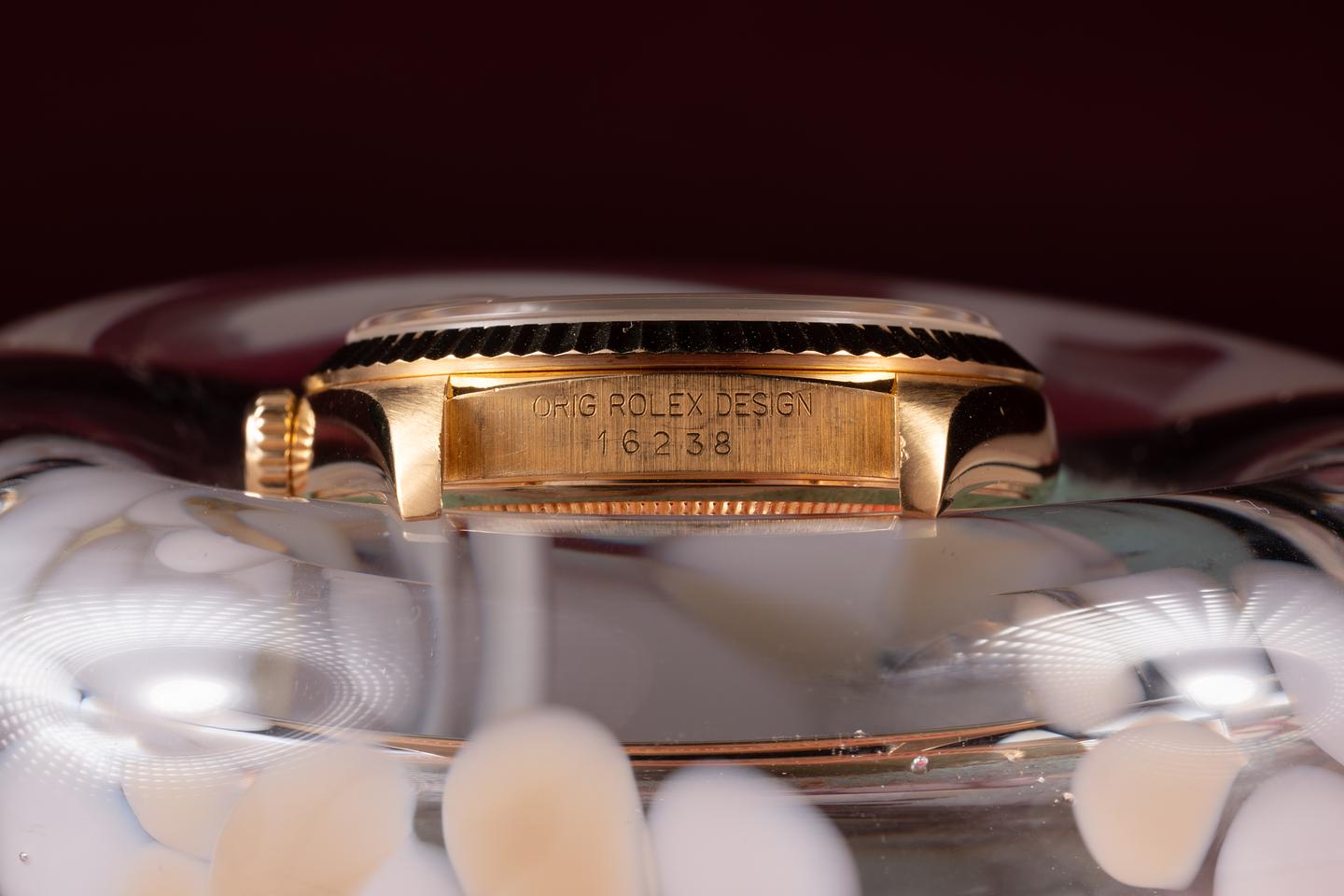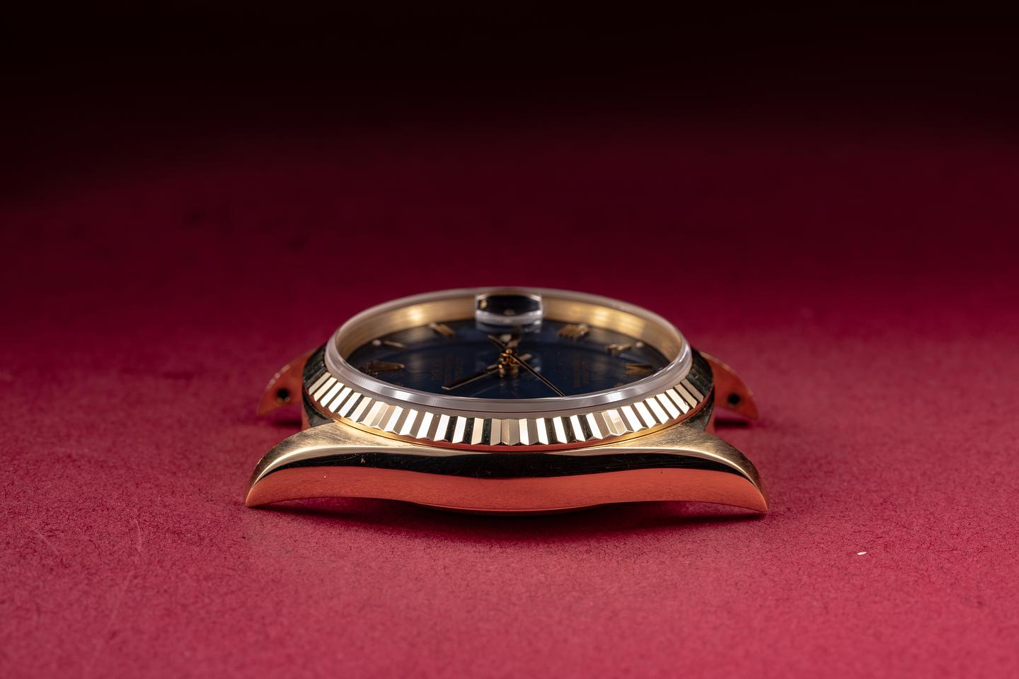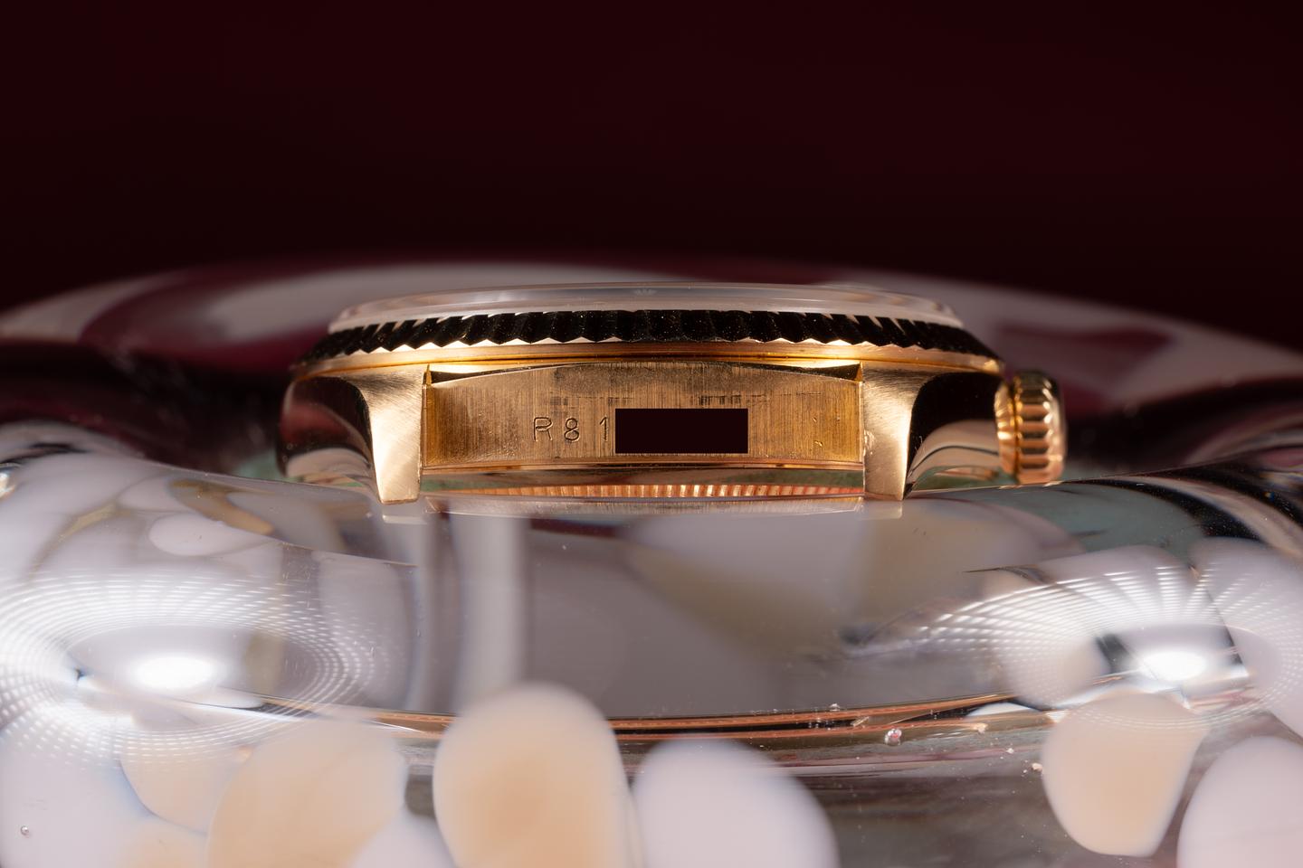 Case: The sharp 18K yellow gold case is excellent showing only very light wear from use. The sharp 18K yellow gold fluted bezel is also in excellent condition showing only very light wear from use.