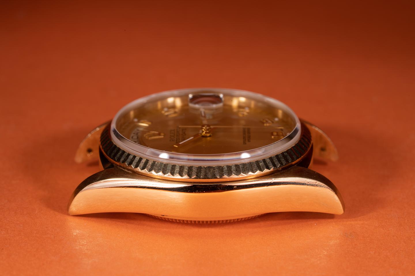 Case: The previously polished 18k yellow gold case is excellent showing only light wear from use. The 18k yellow gold fluted bezel is sharp and in excellent condition showing only light wear from use.