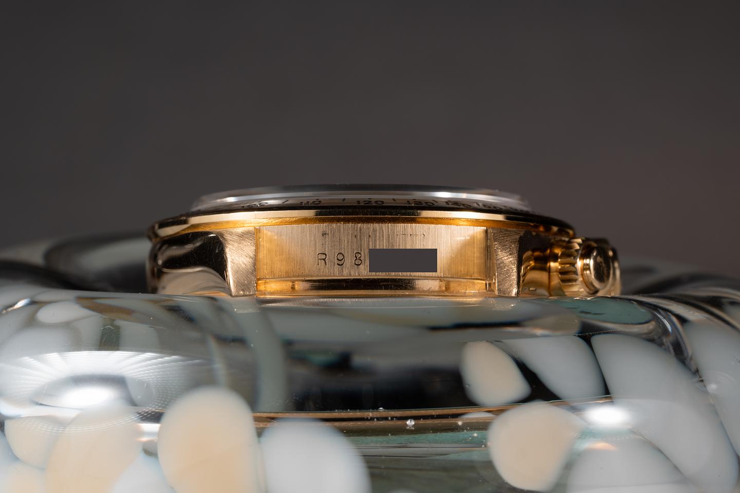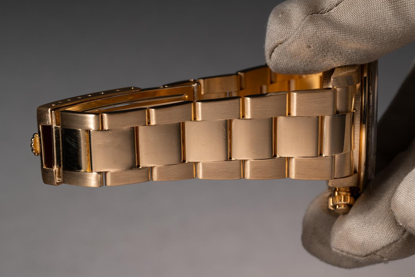 Bracelet: The 12 link 18K yellow gold Oyster bracelet is excellent showing only very light stretch for its age. The clasp is stamped with a matching 1988 date code.